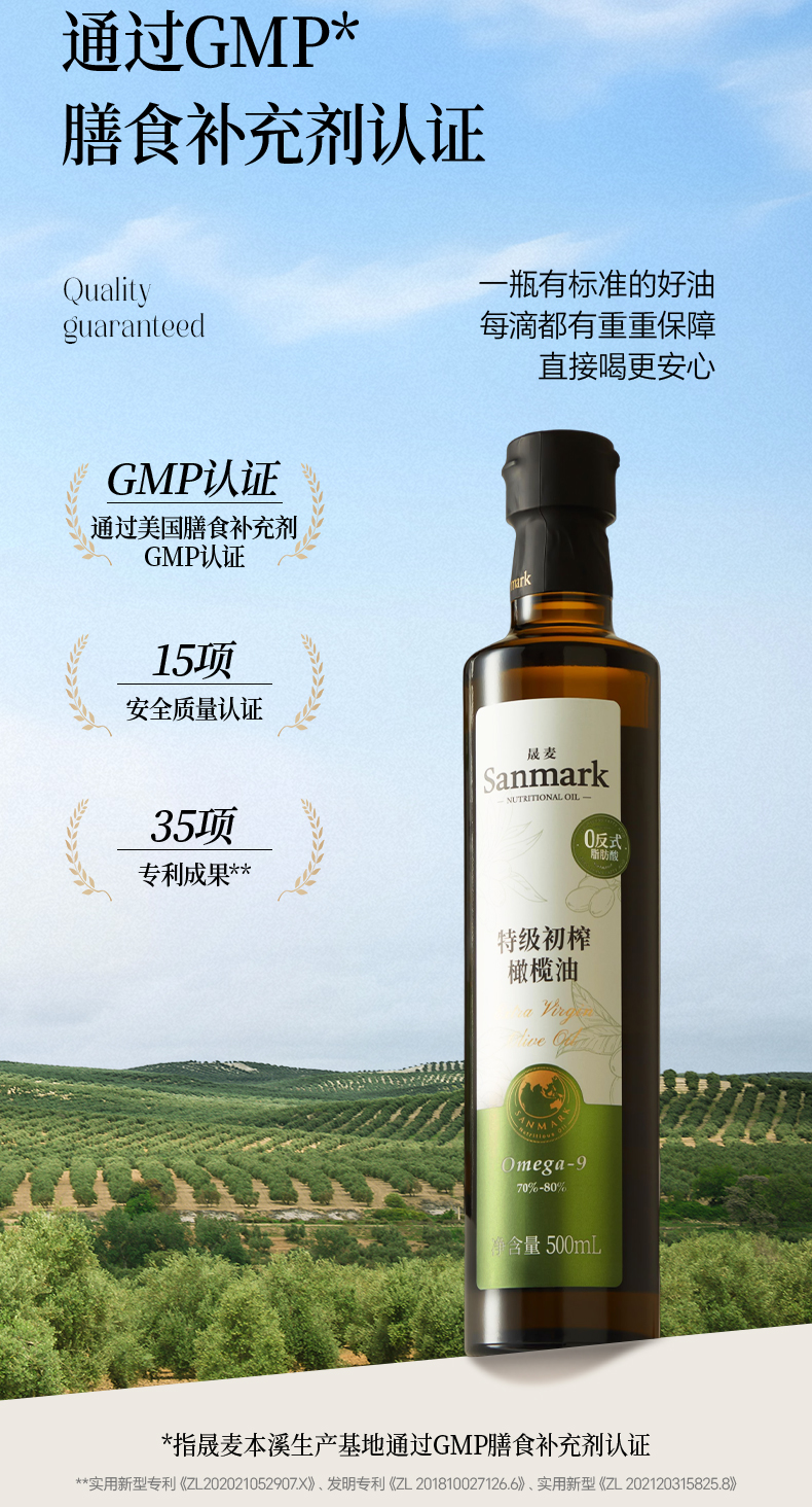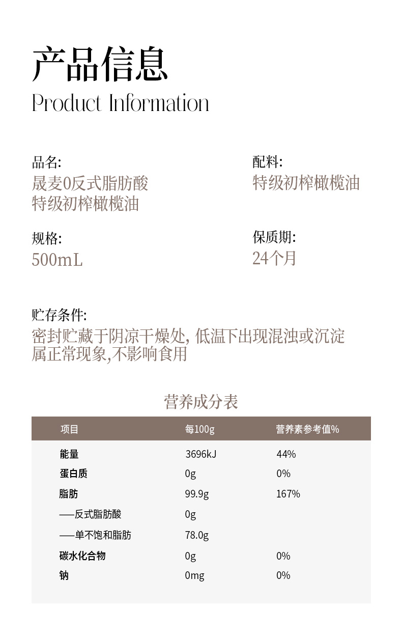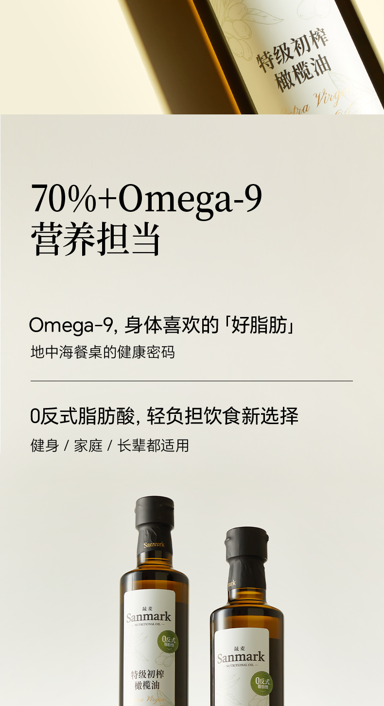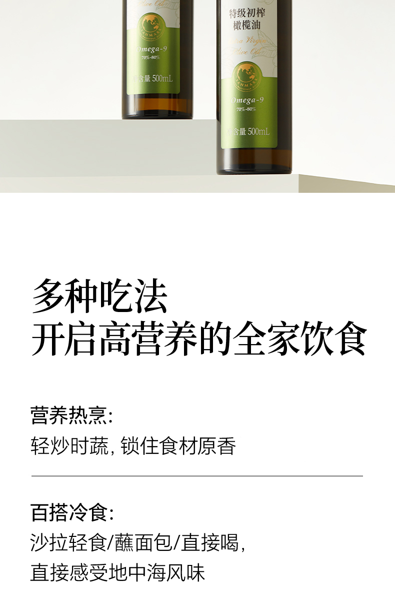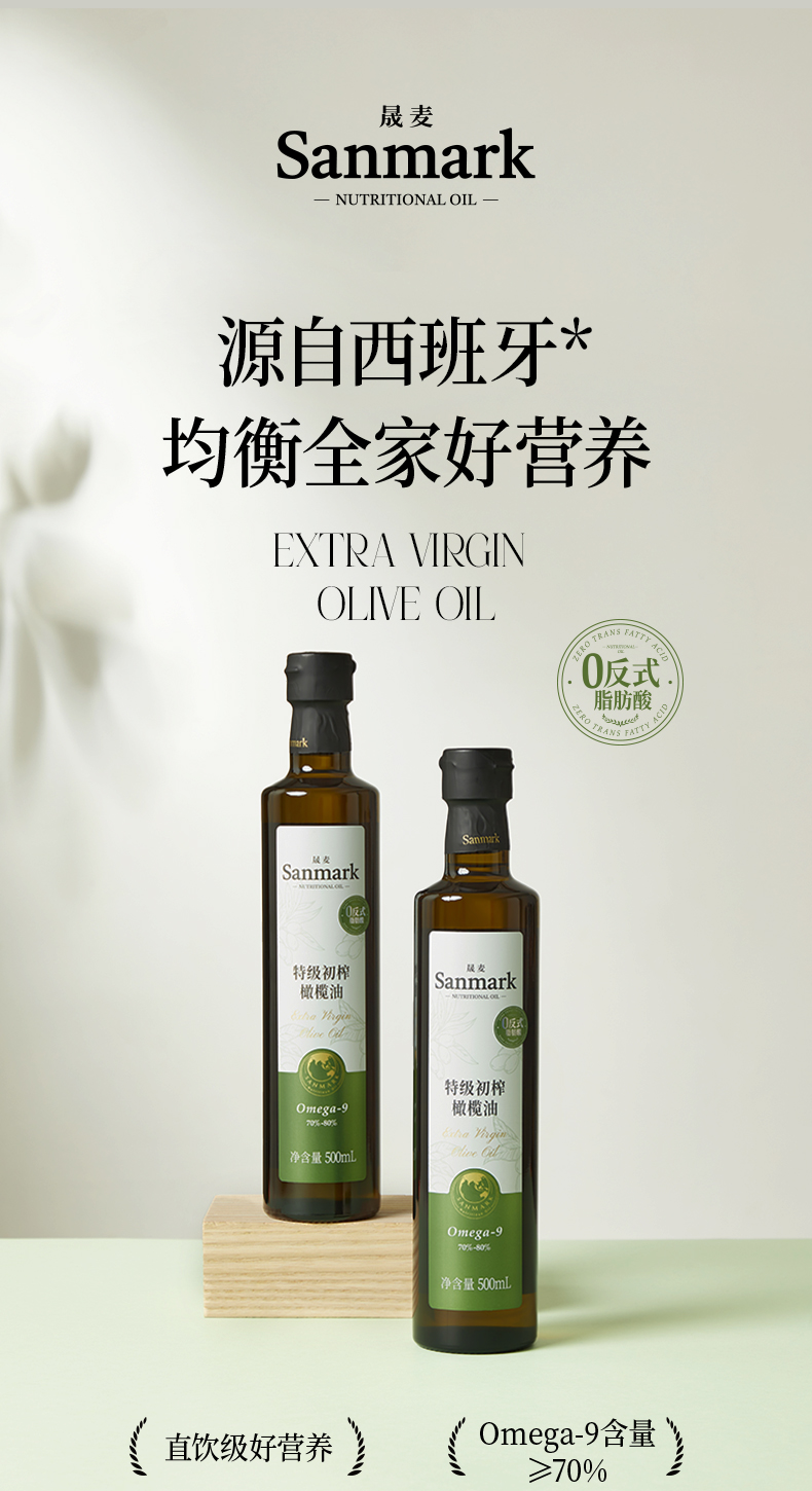 特级初榨橄榄油 | 500ml/瓶 0反式脂肪酸 西班牙进口 拌沙拉热炒生饮 低温冷榨一级 晟麦
