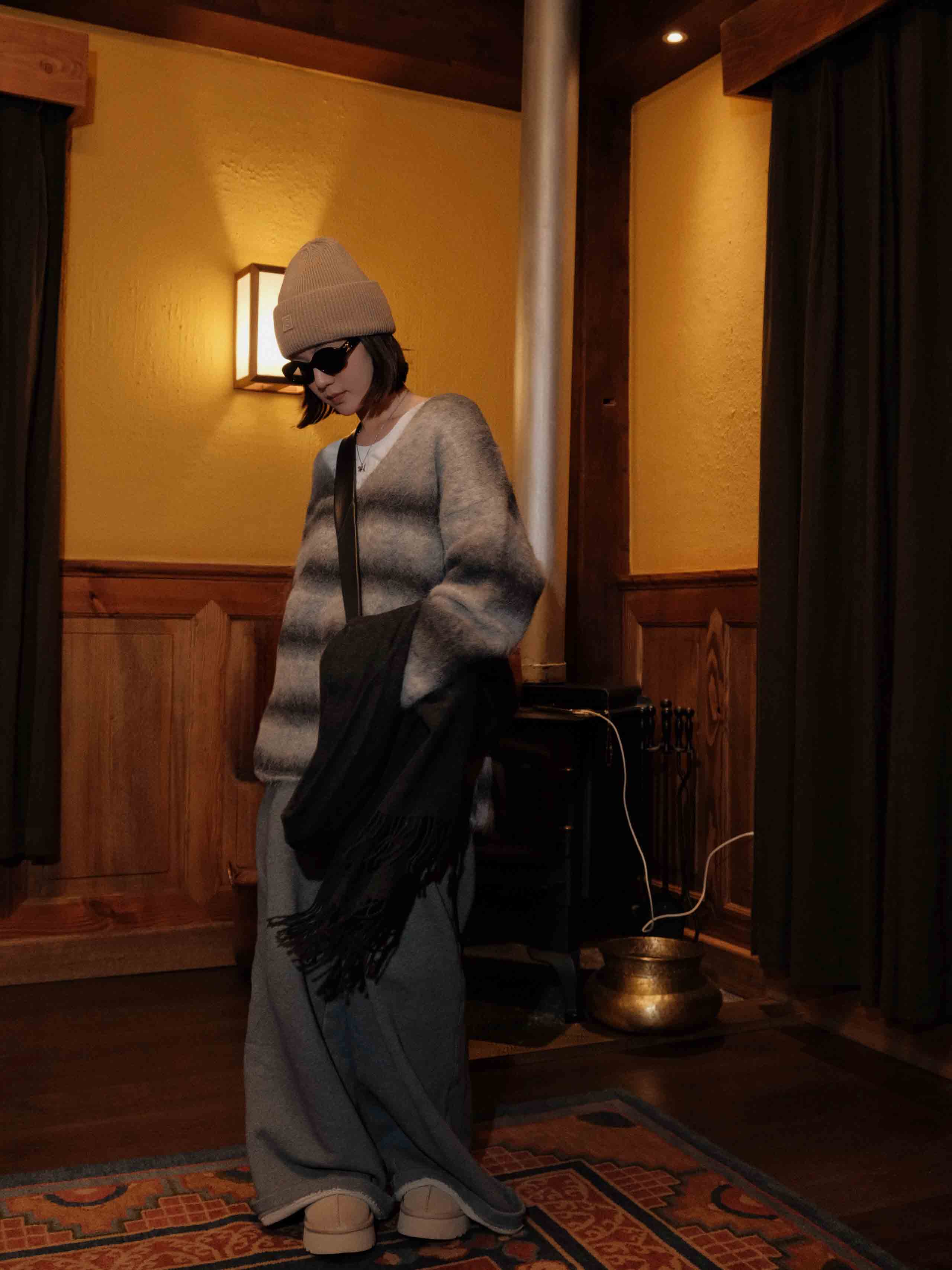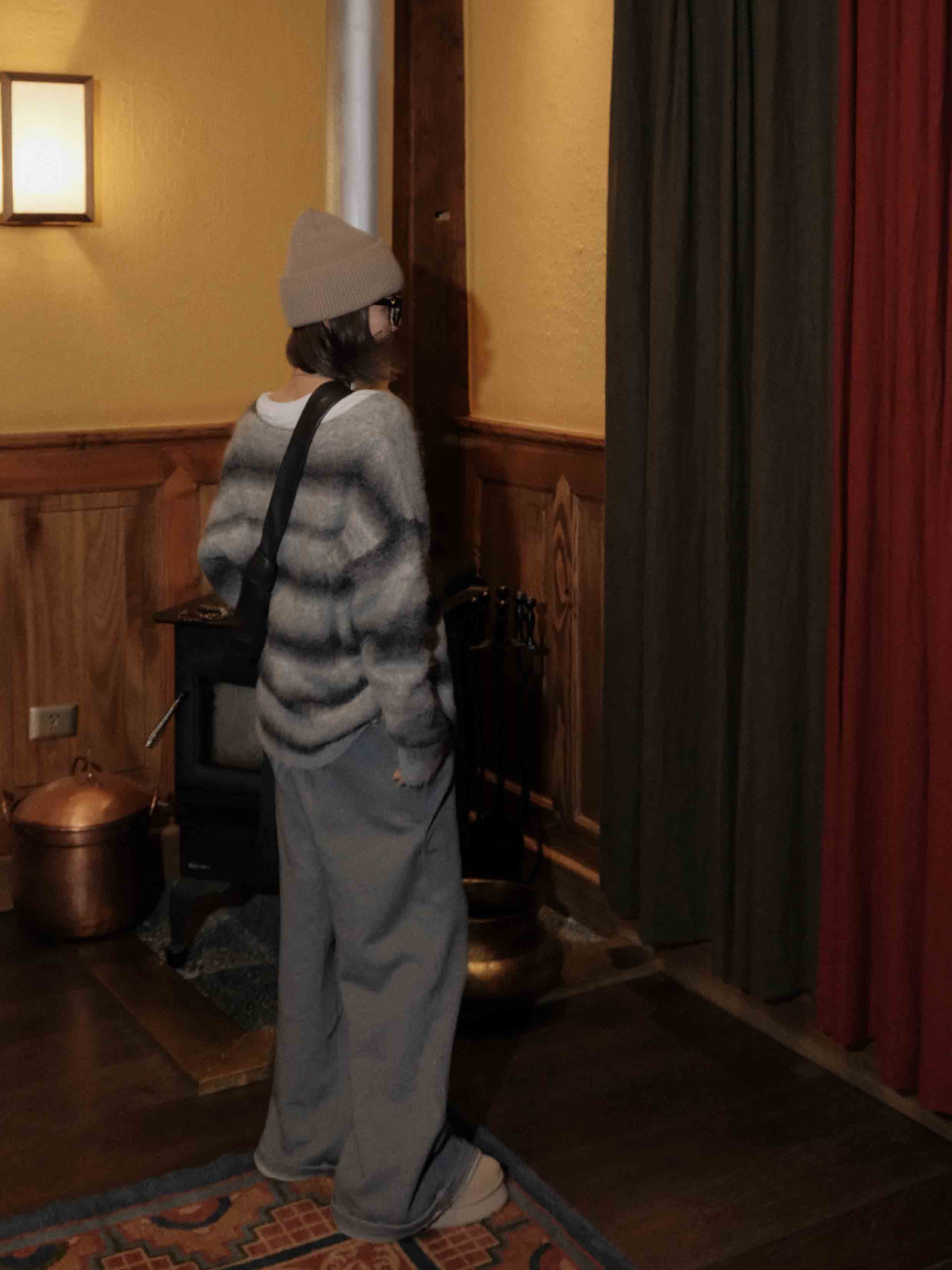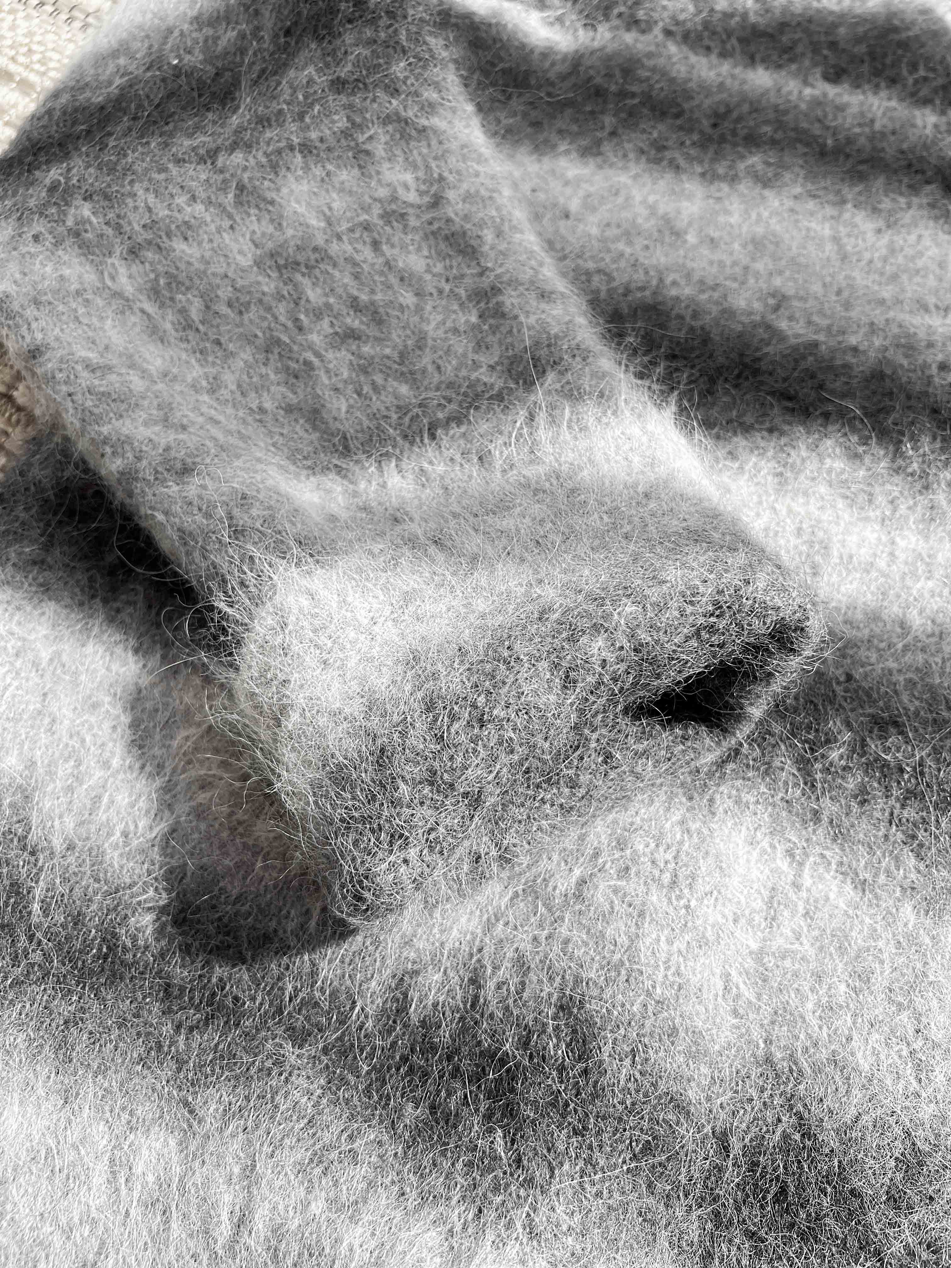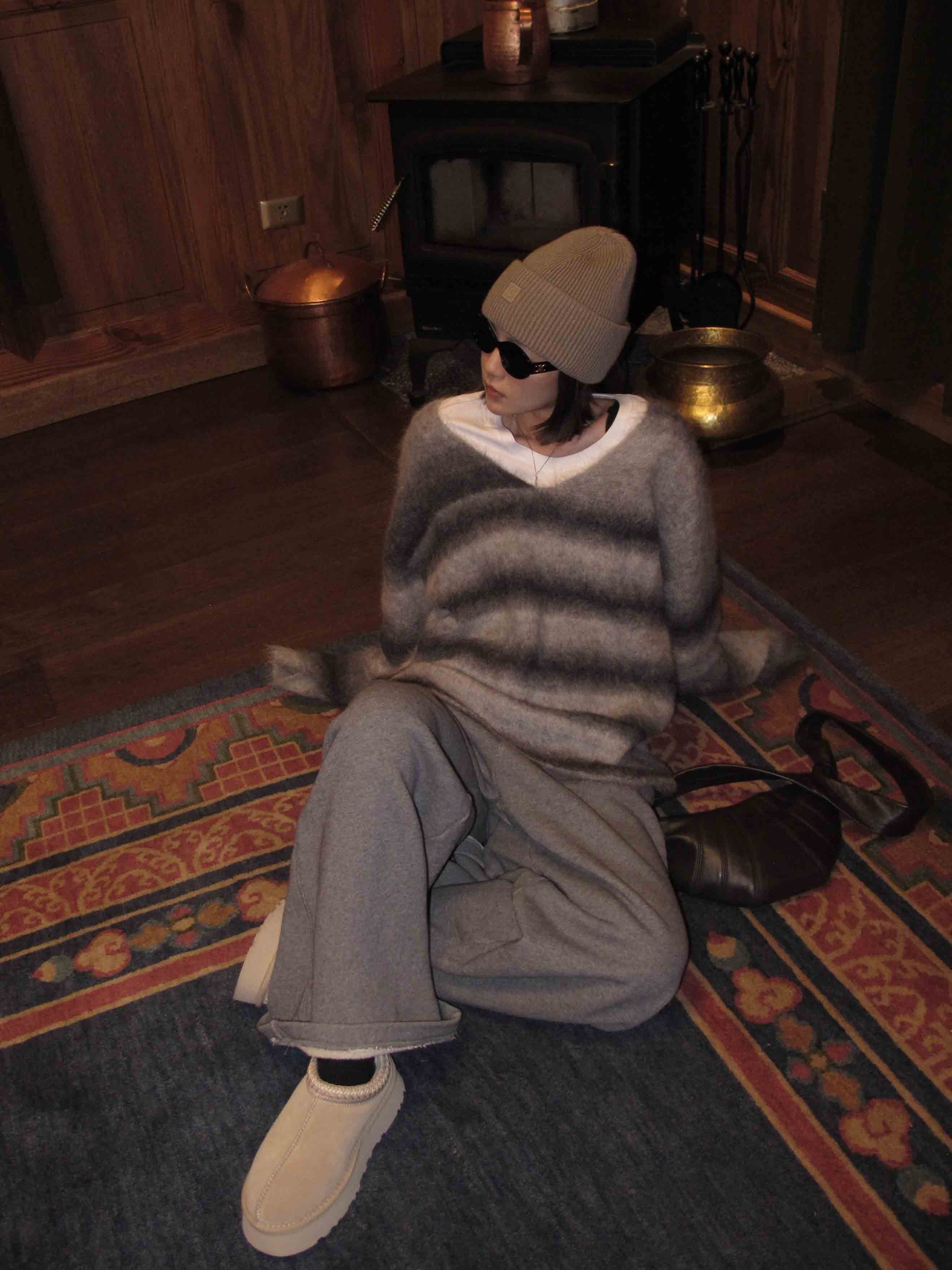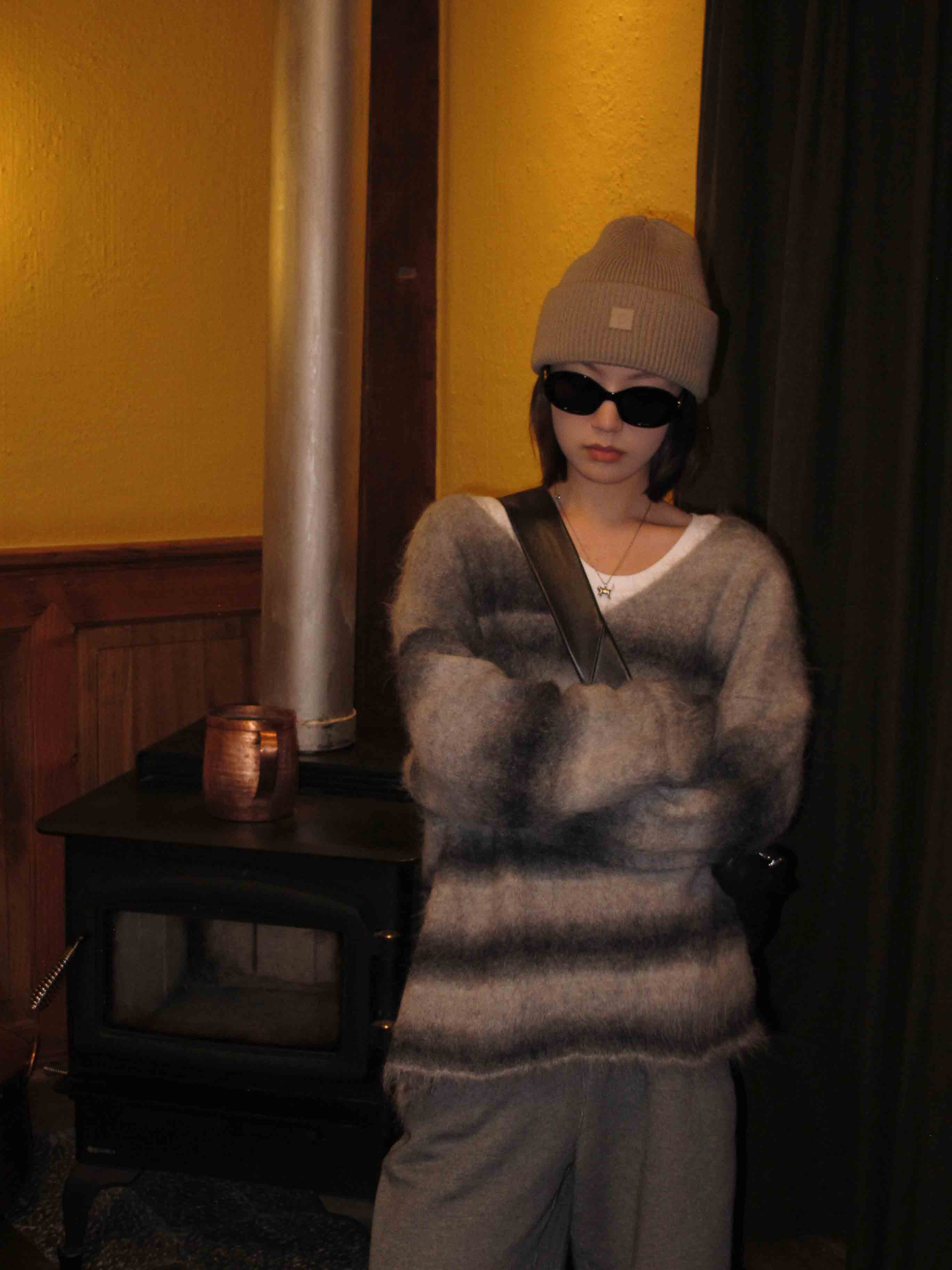 羊驼混纺渐变灰色条纹V领毛衣,绒感丰满✔️蓬松轻盈