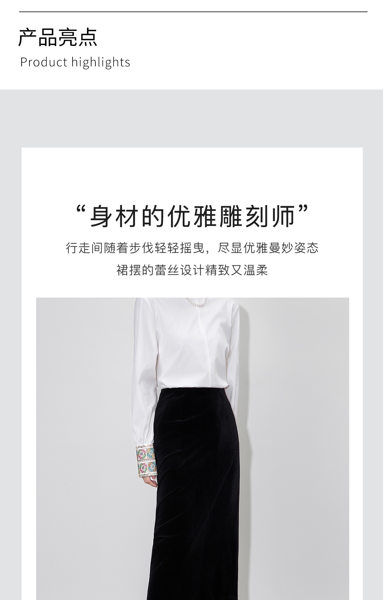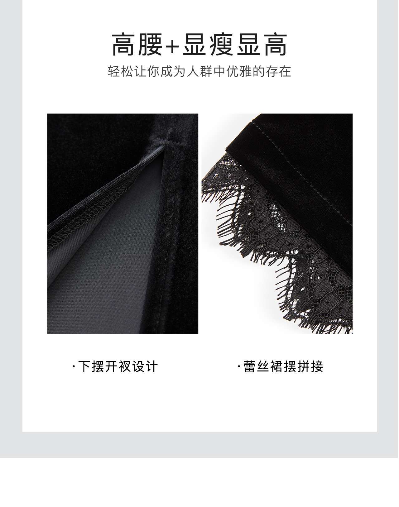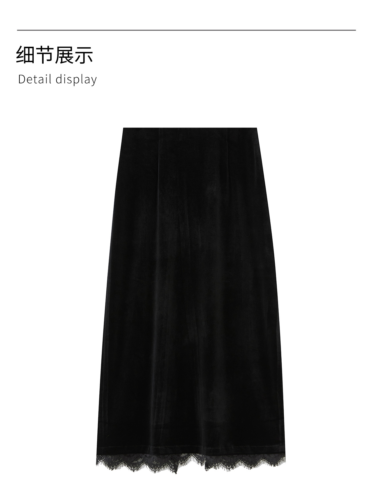 「高货wl」全新升级【铂金会员201/天猫269/差价68】(95217)洛诗琳通勤优雅蕾丝拼接半身裙2025秋季显瘦直筒丝绒裙