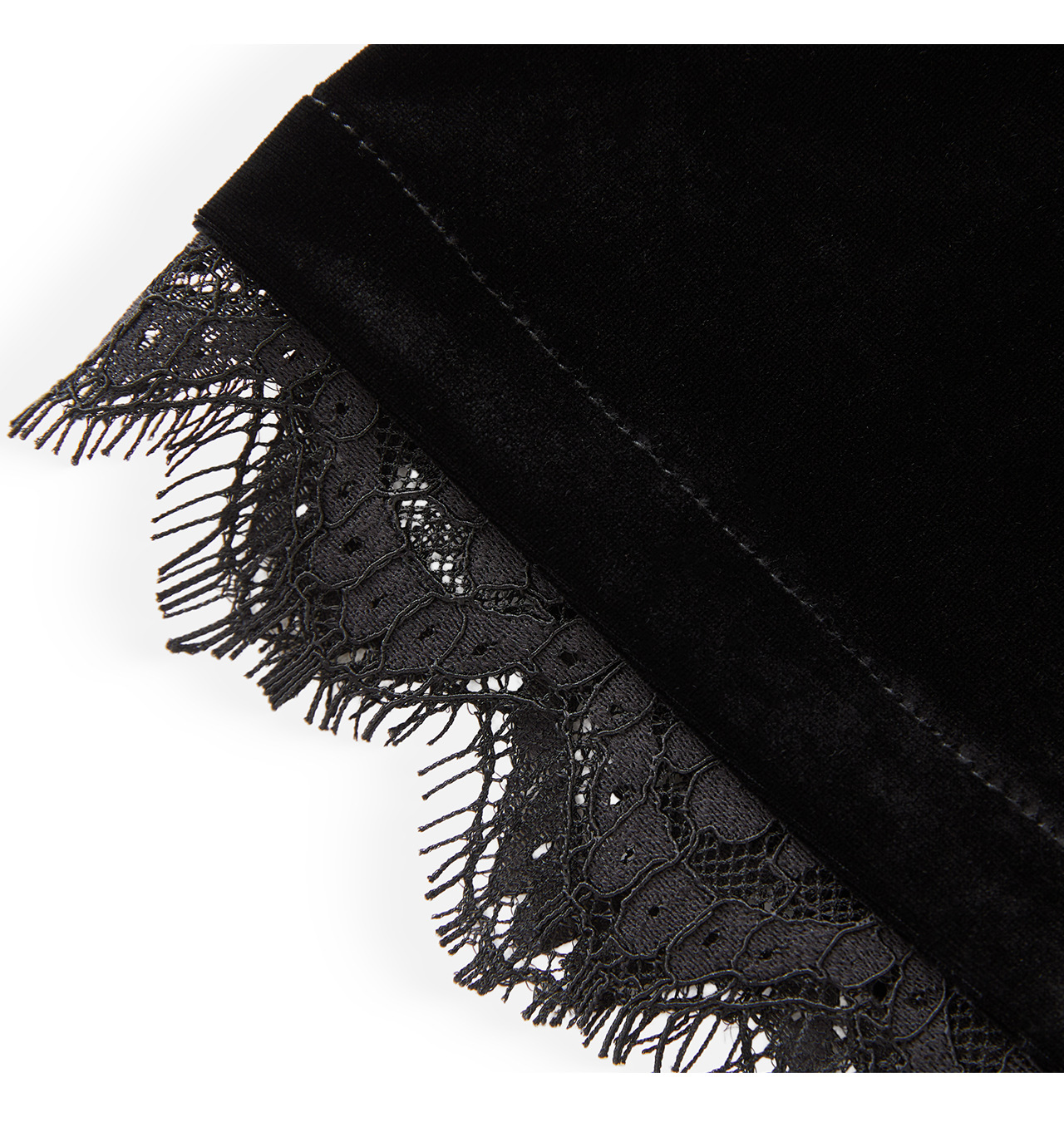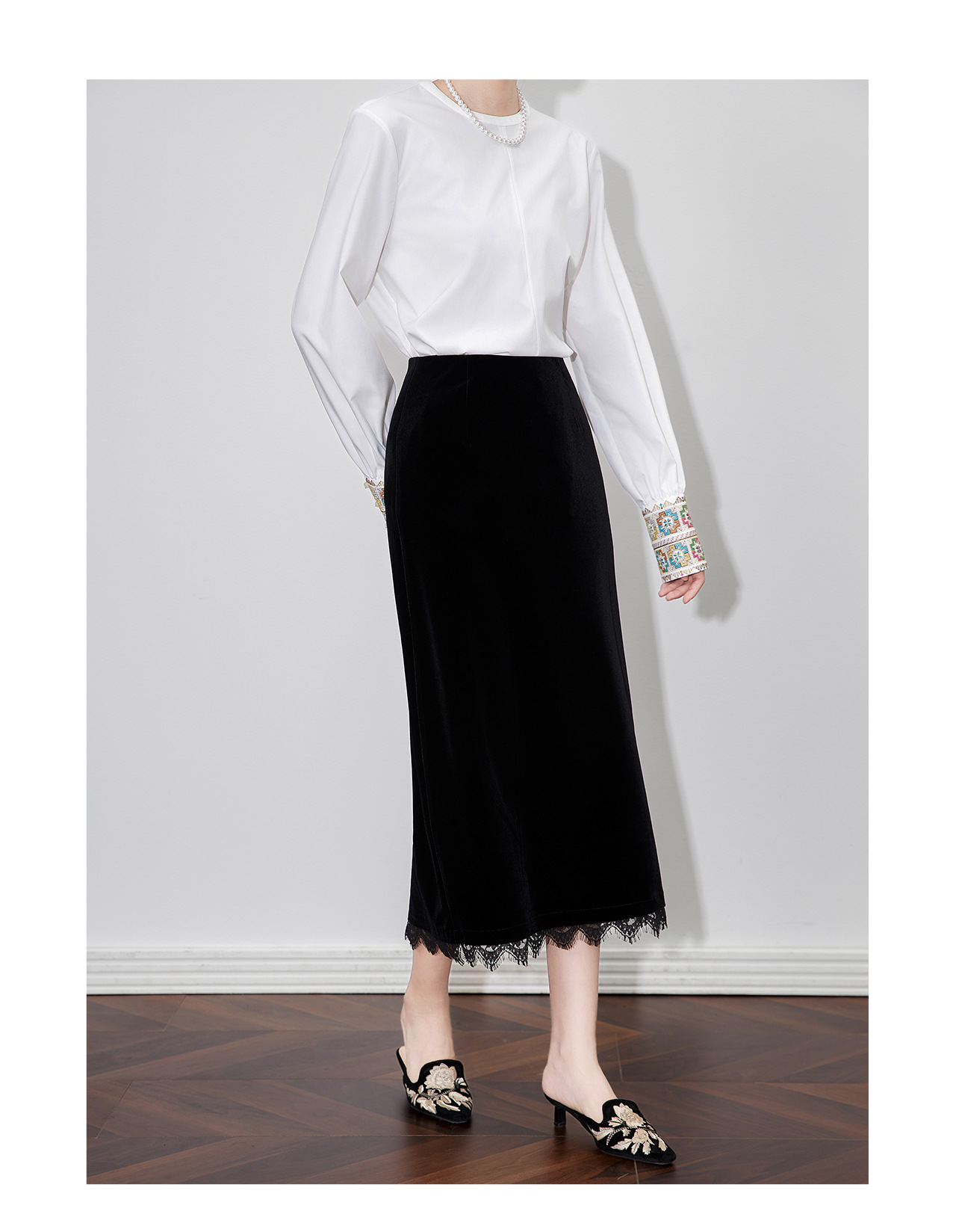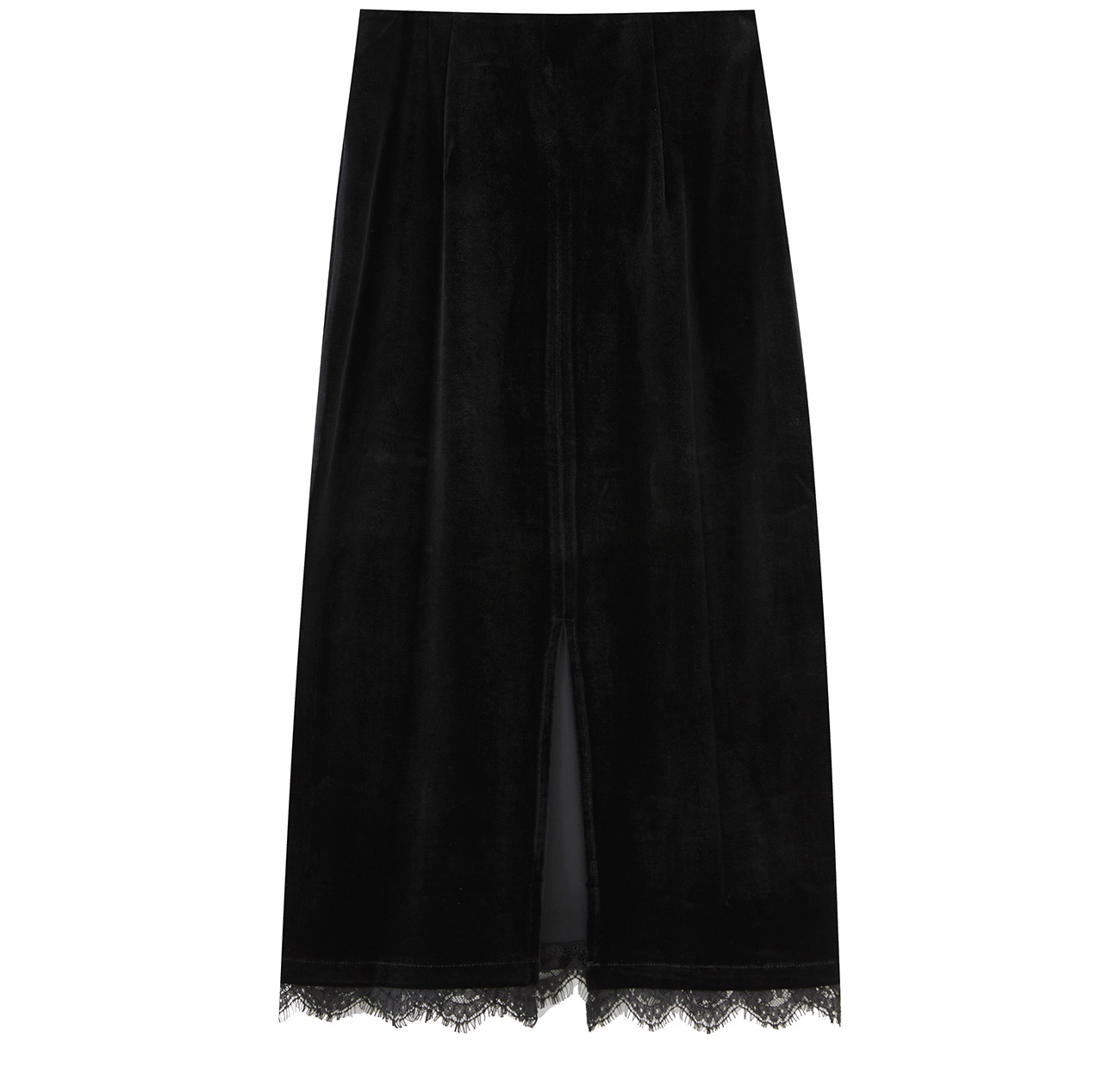 「高货wl」全新升级【铂金会员201/天猫269/差价68】(95217)洛诗琳通勤优雅蕾丝拼接半身裙2025秋季显瘦直筒丝绒裙