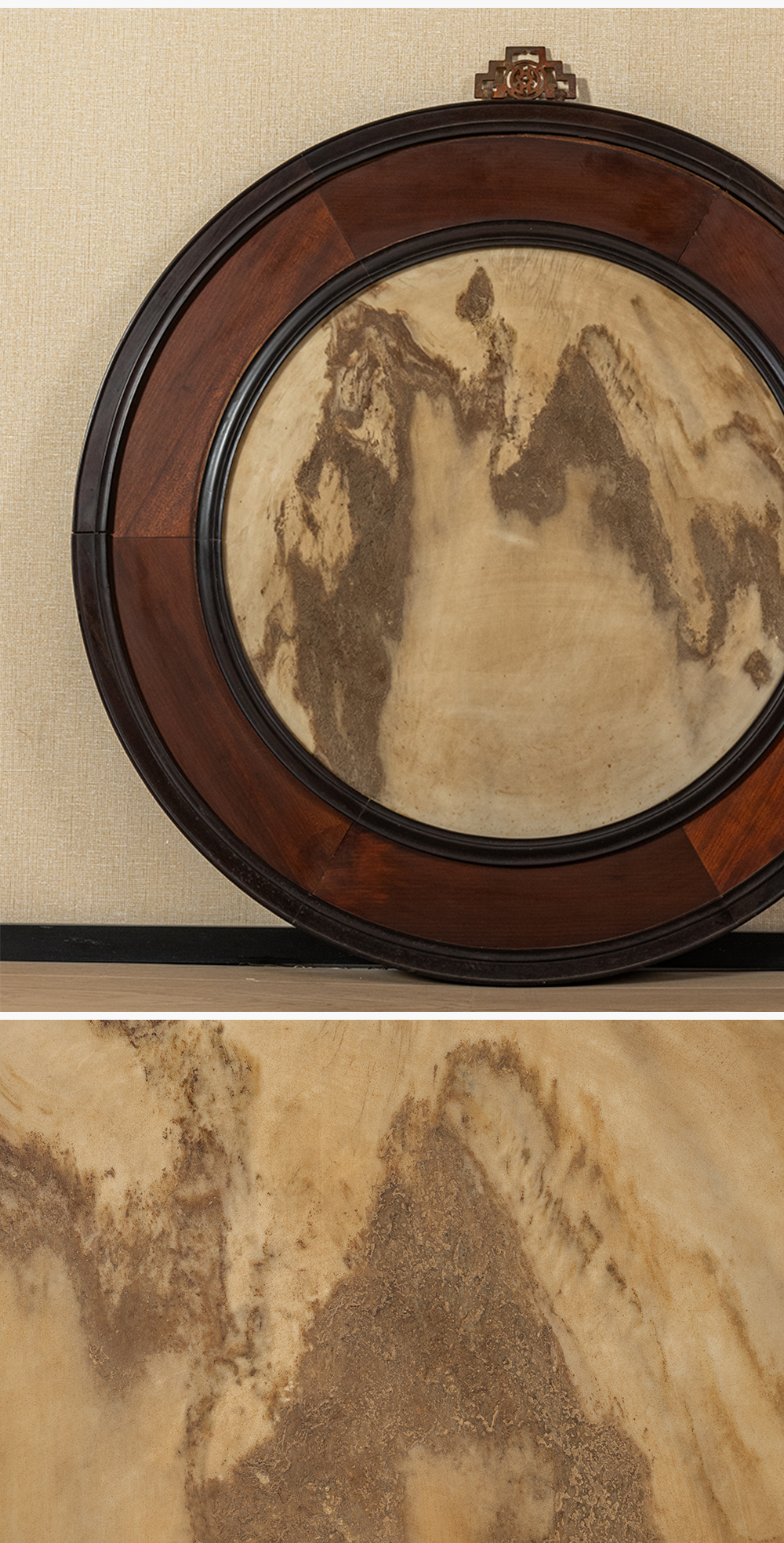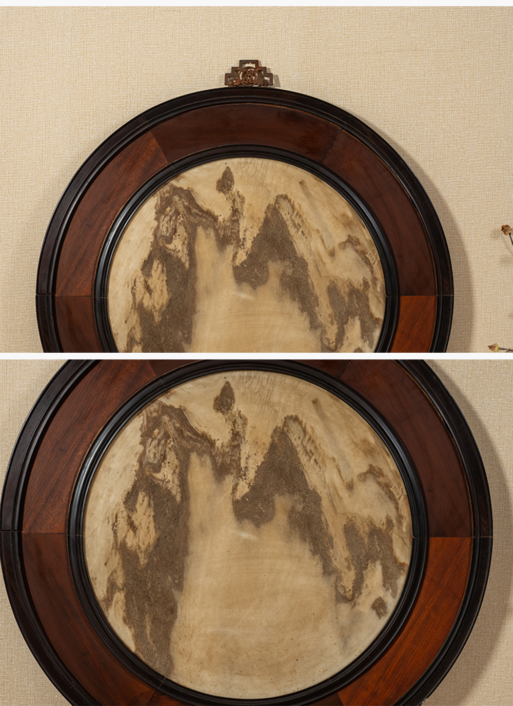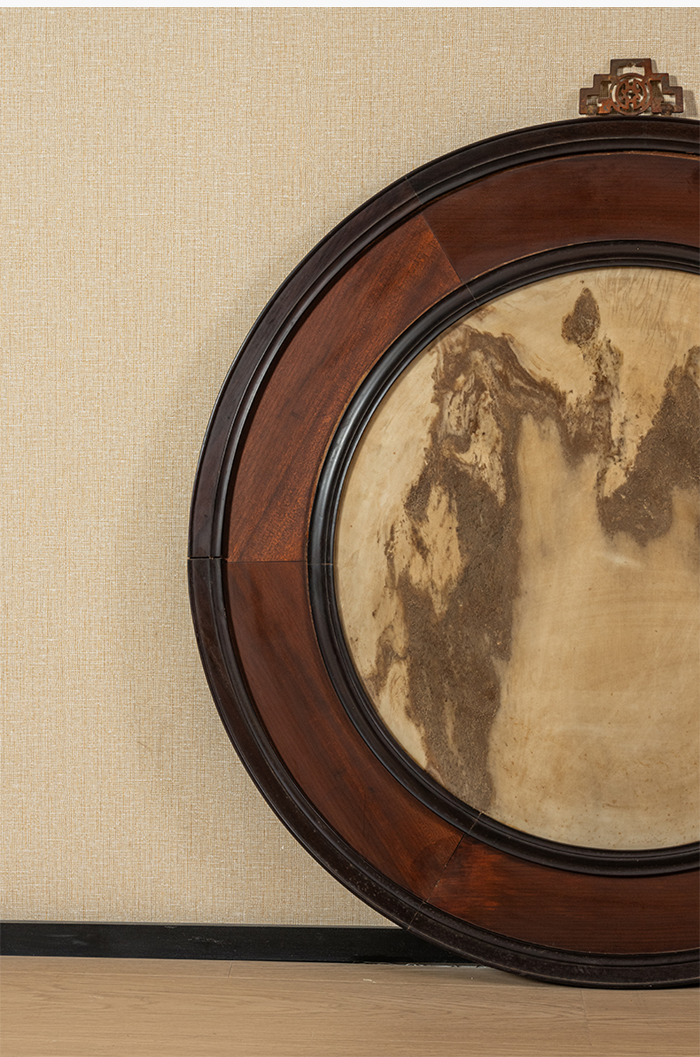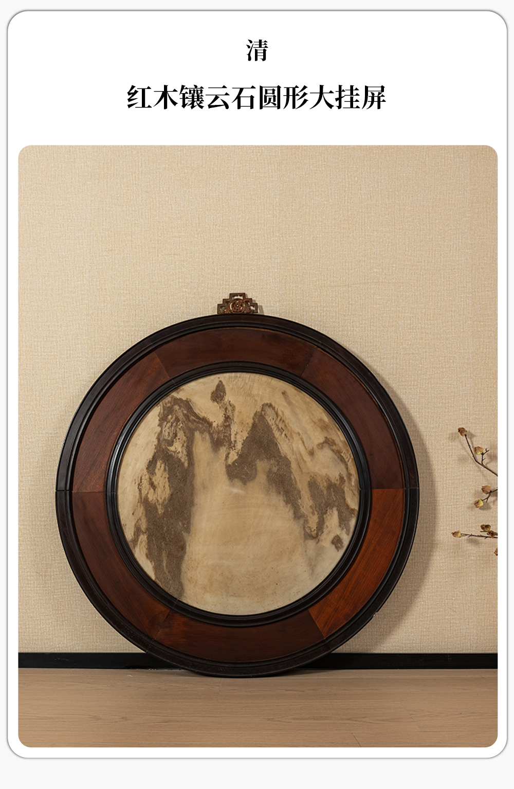 清 红木镶云石圆形大挂屏