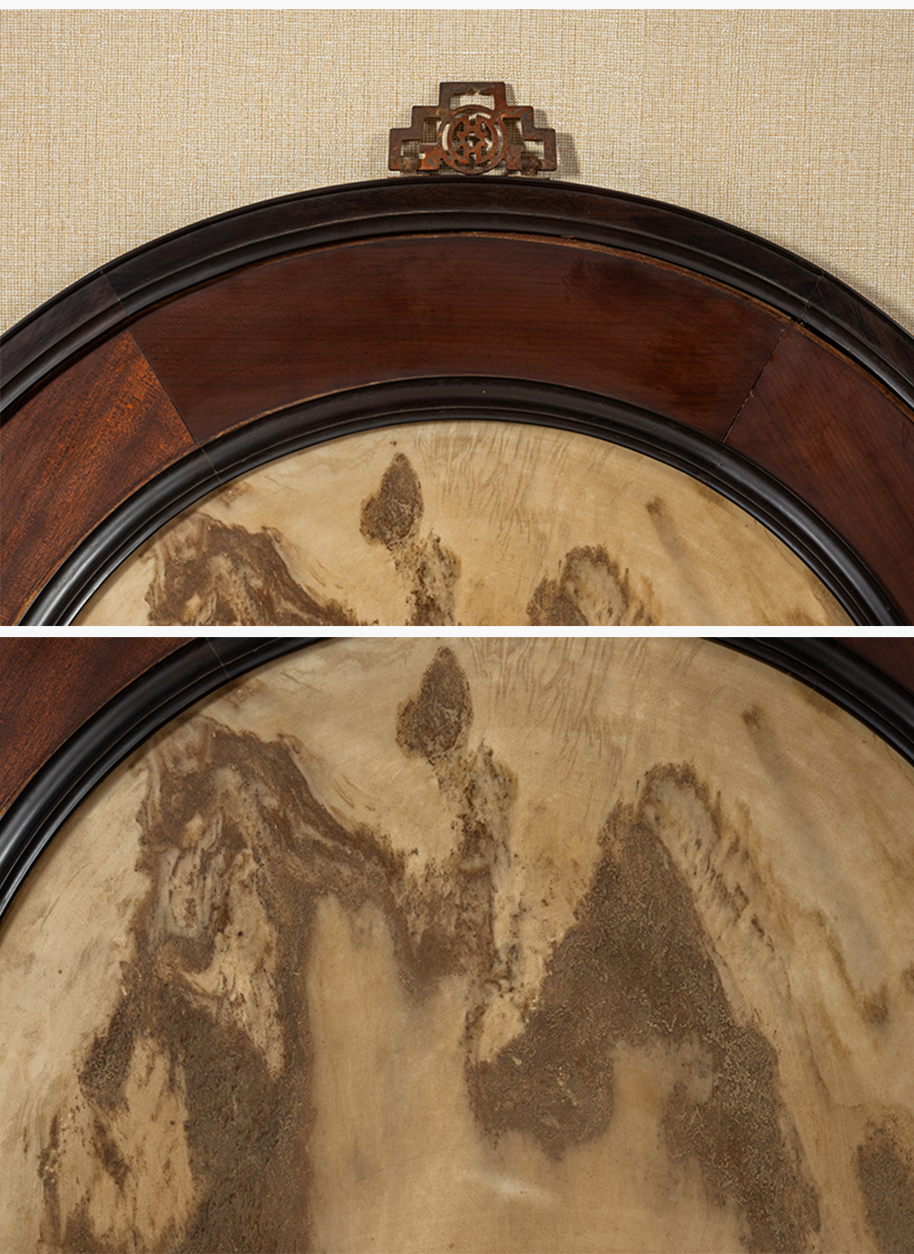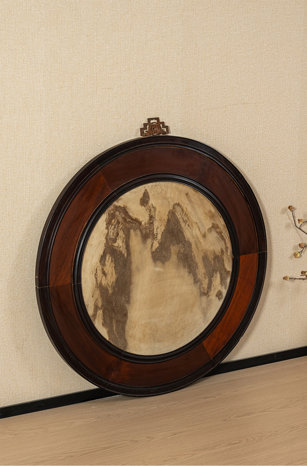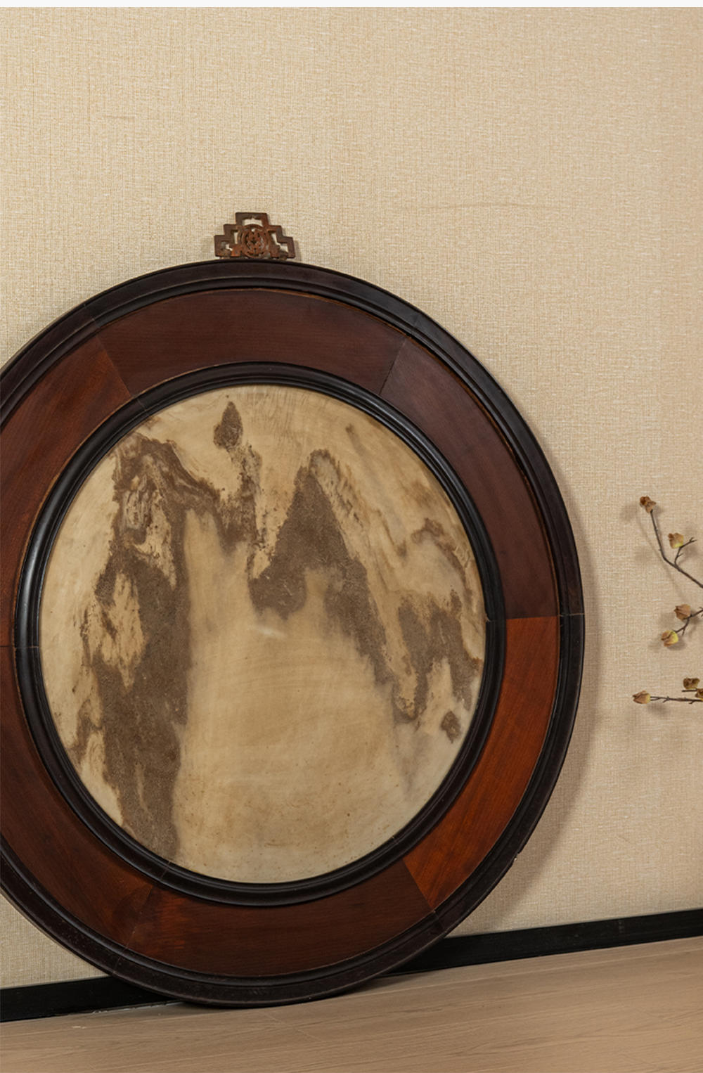 清 红木镶云石圆形大挂屏