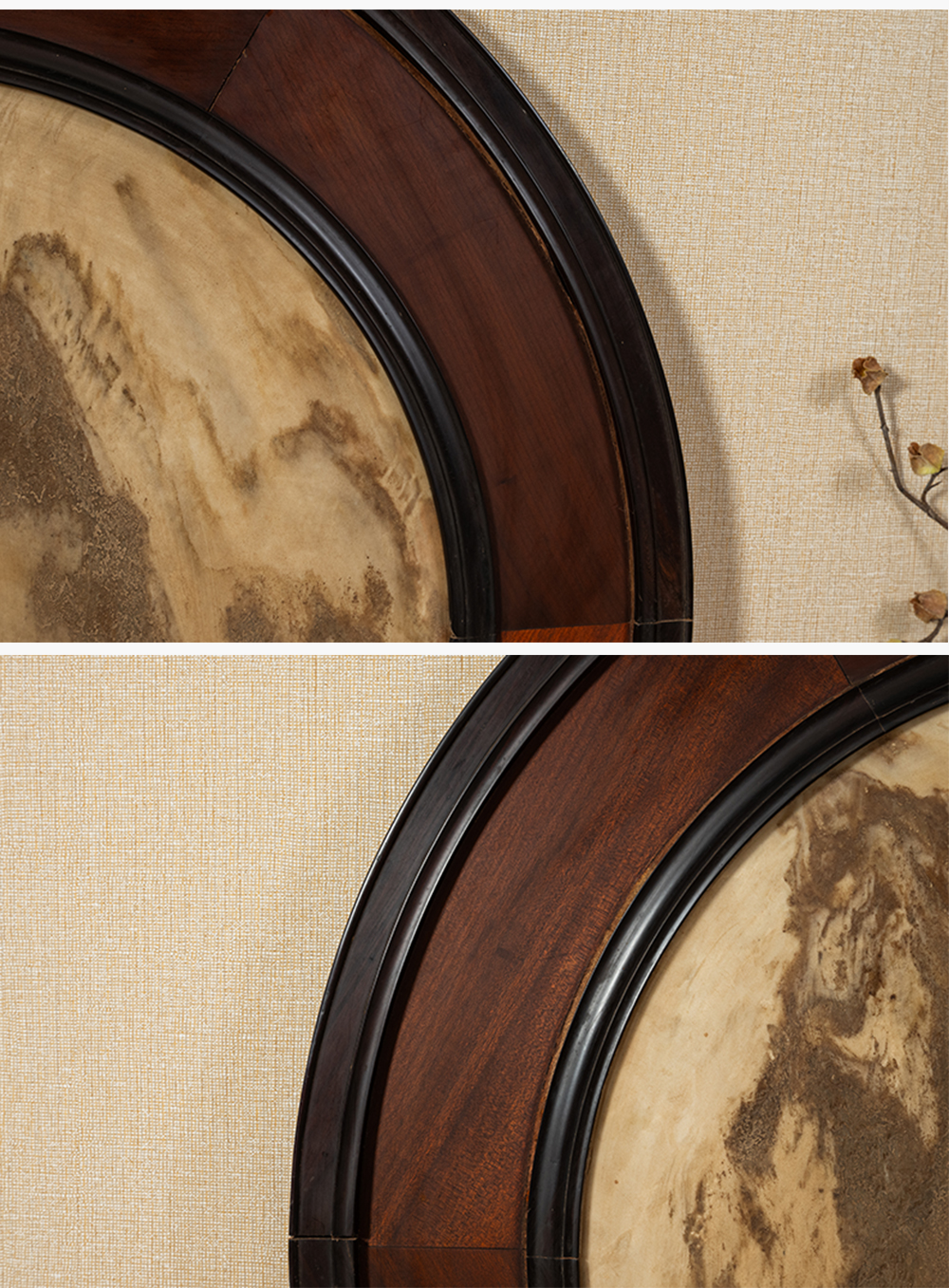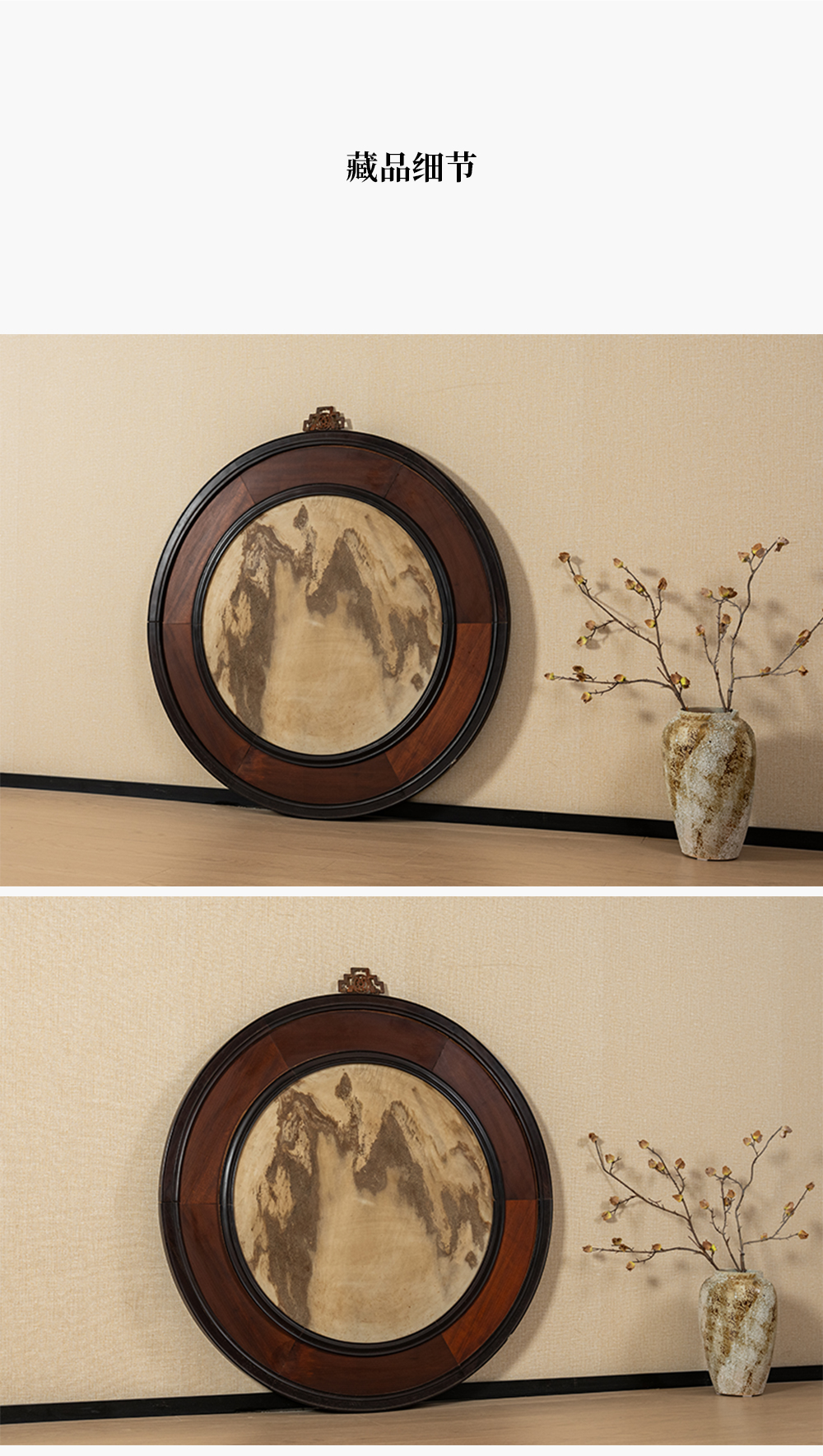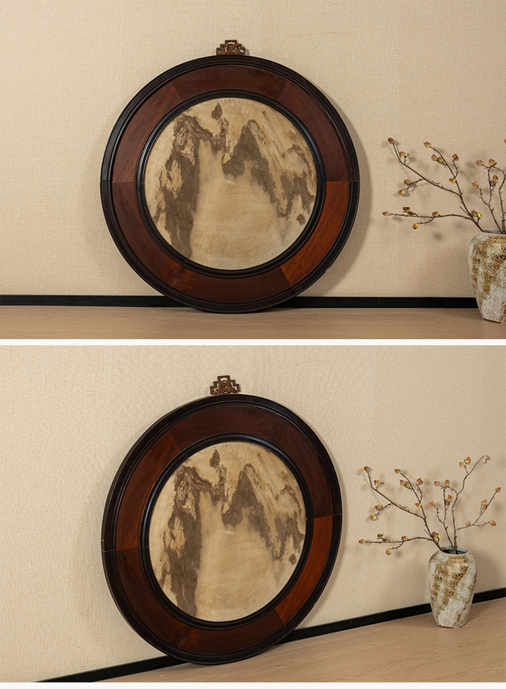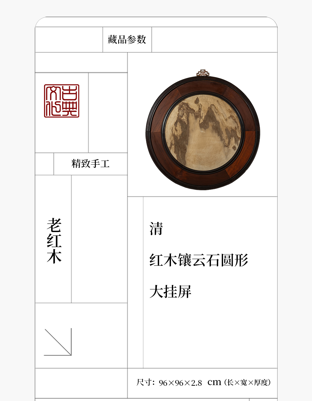 清 红木镶云石圆形大挂屏