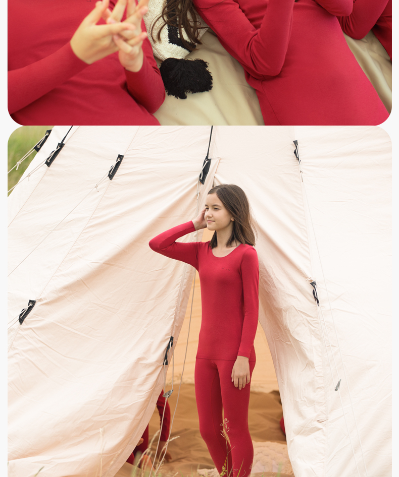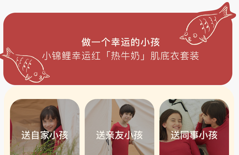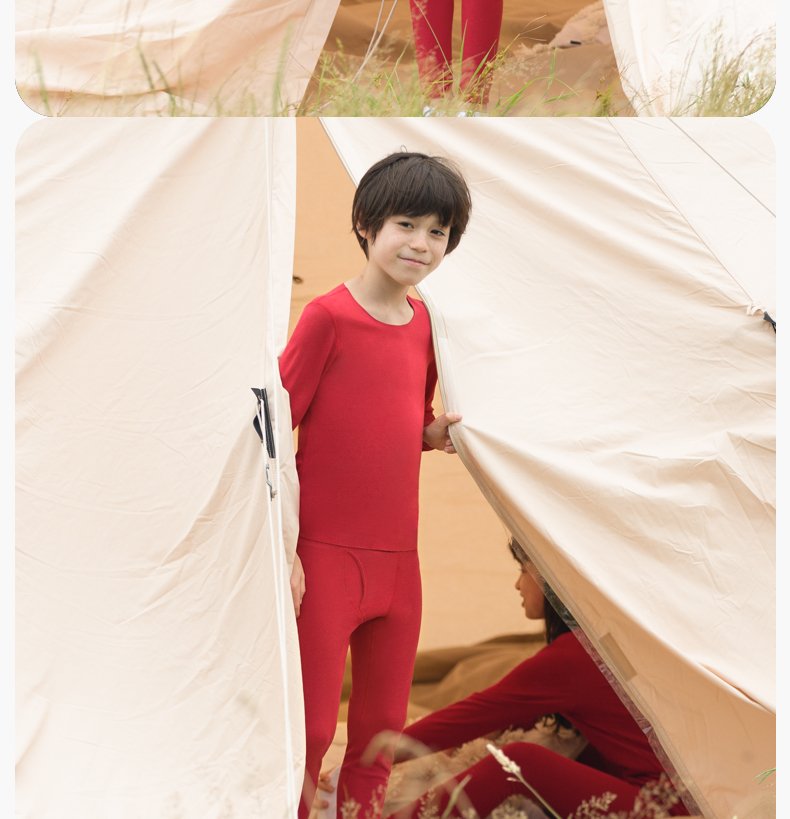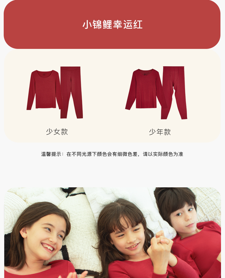 【低至6折】likeuu本命年倍暖套装圆领红色秋衣秋裤男女童