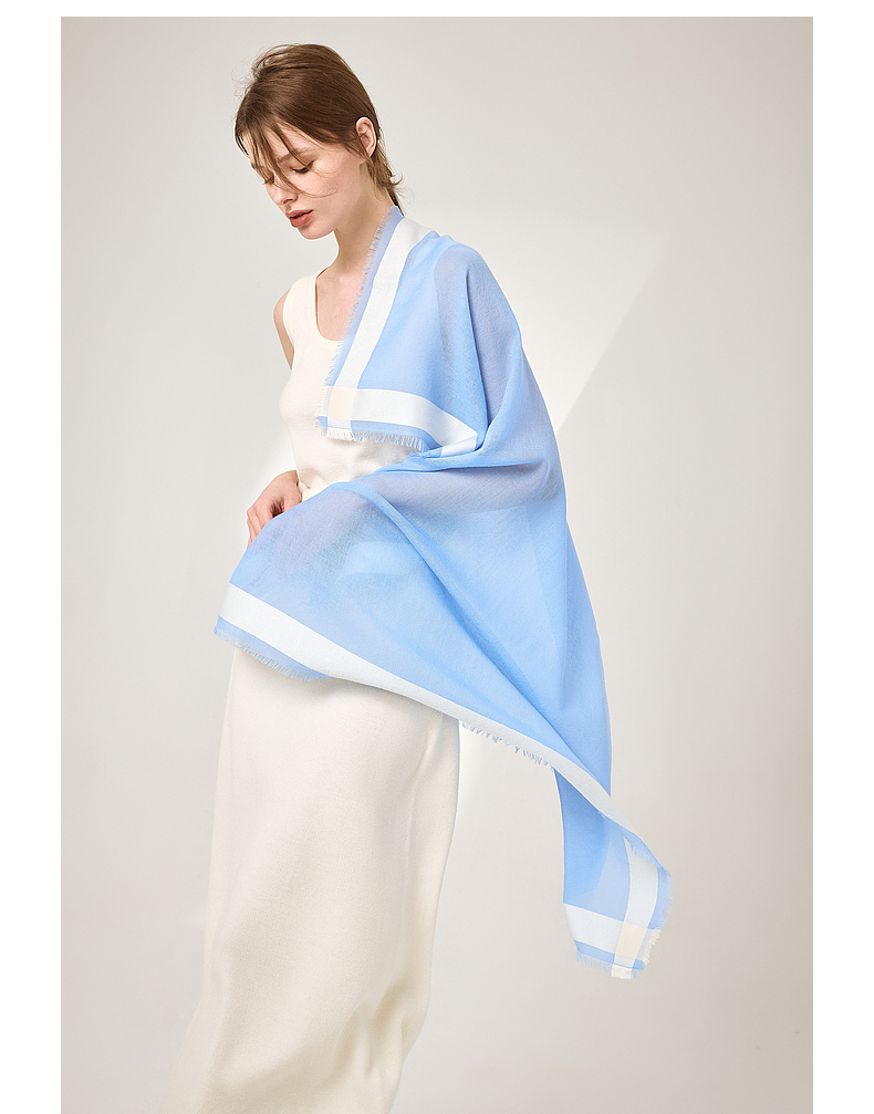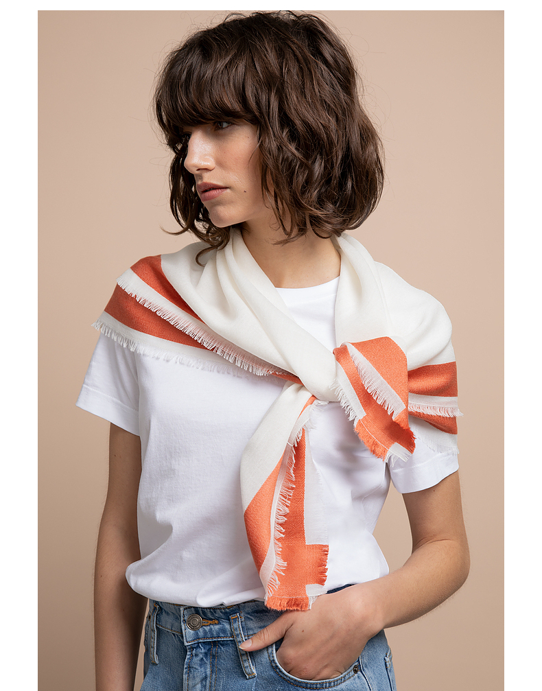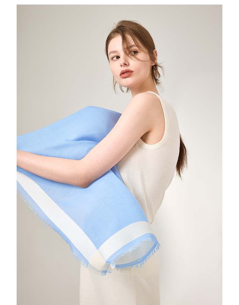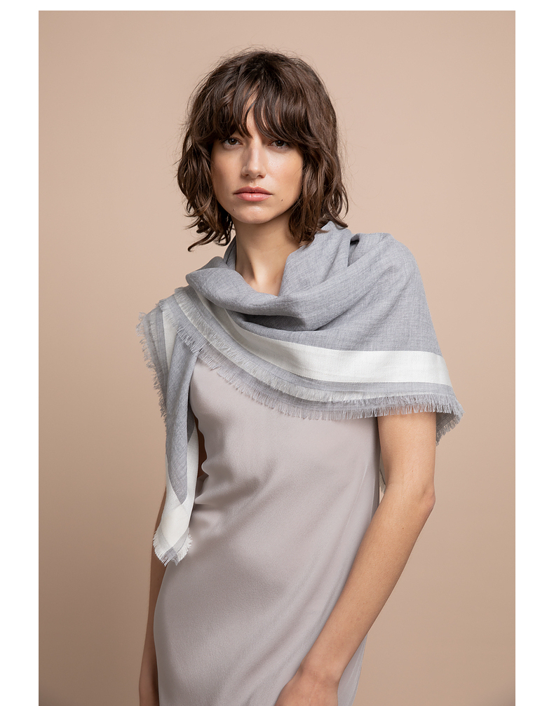 Johnstons of Elgin条纹镶边羊毛混纺大方巾