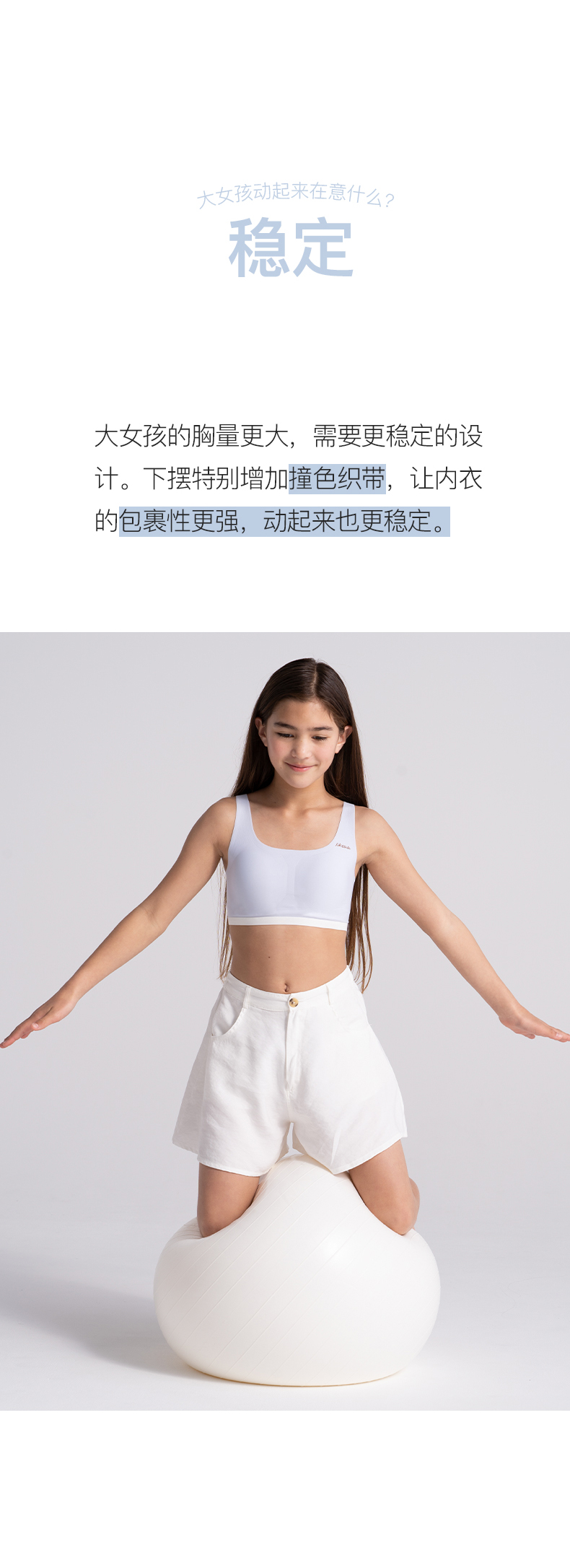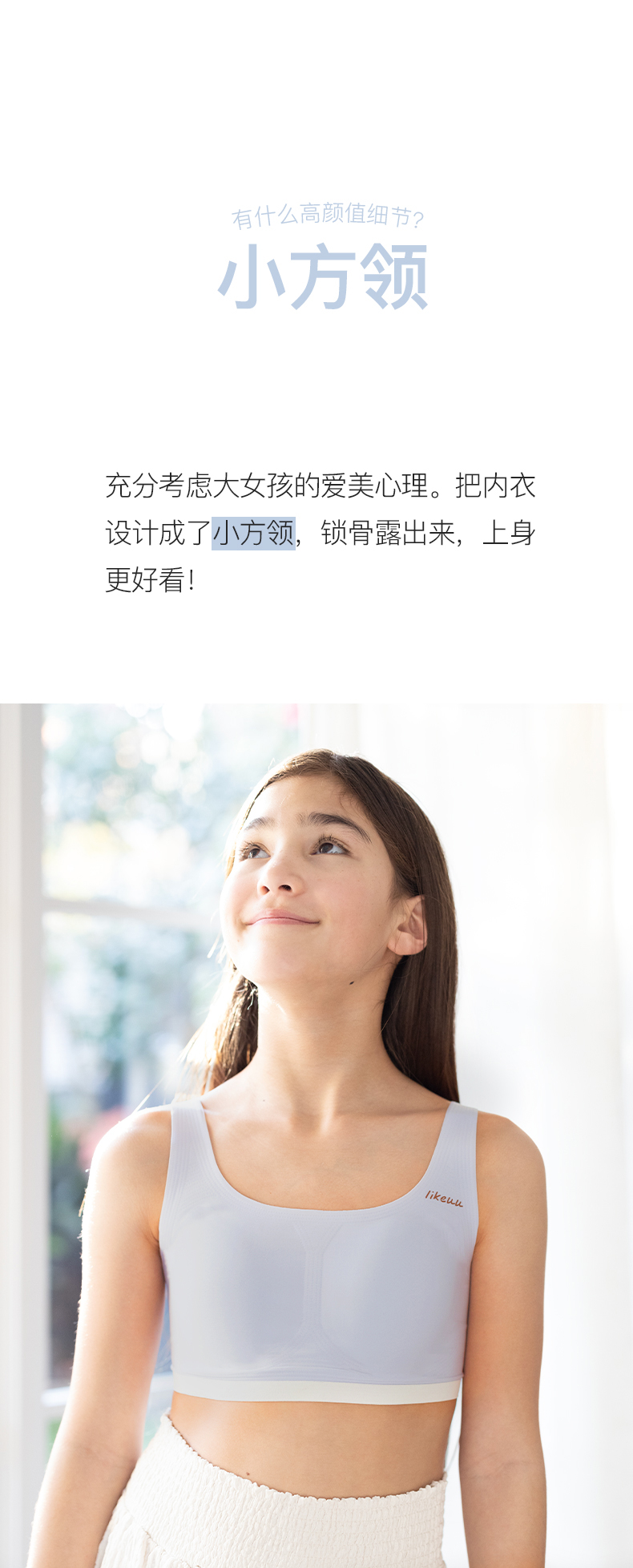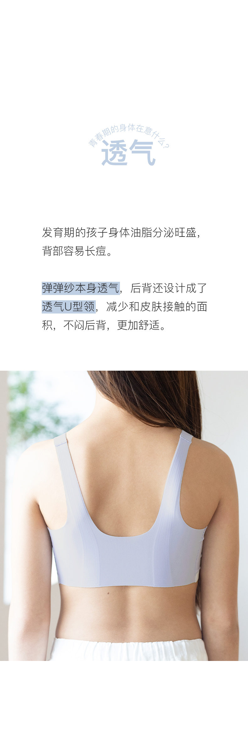 ubras旗下likeuu少女内衣隐形无尺码三阶段女大童文胸发育期学生ZY