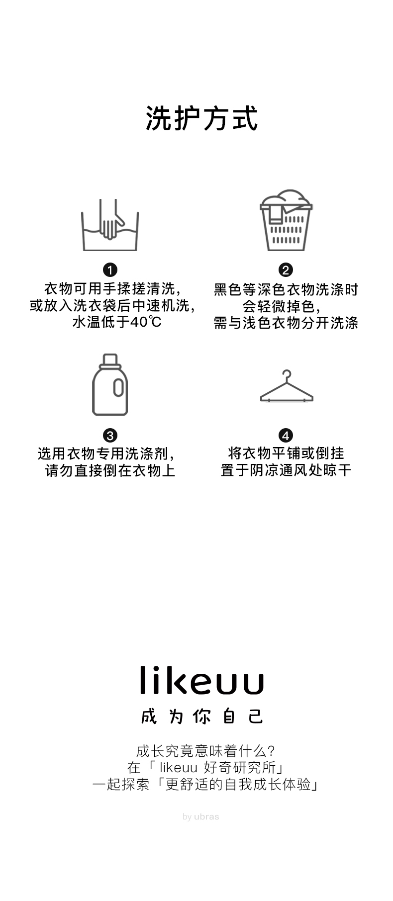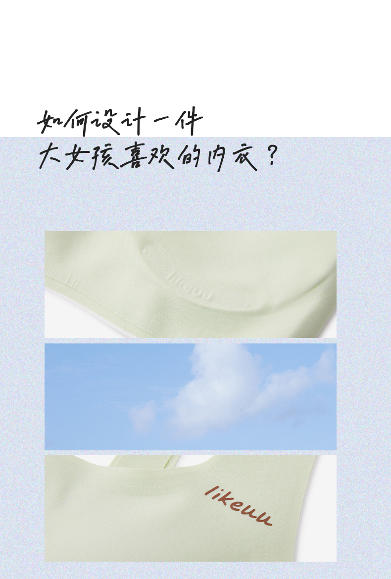 - likeuu是专注于为6~15岁的青少年创造柔软、无束缚的成长体验,以好奇心为灵感的成长发育期贴身衣物品牌。likeuu的产品覆盖内衣、内裤、保暖衣、家居服、运动等品类。