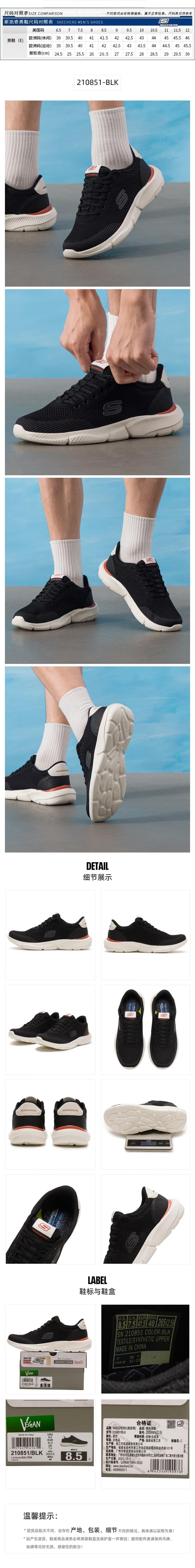 Skechers斯凯奇 男休闲鞋 210851-BLK