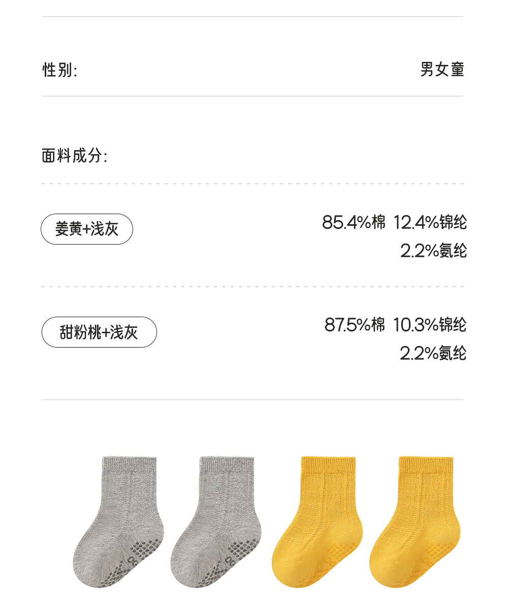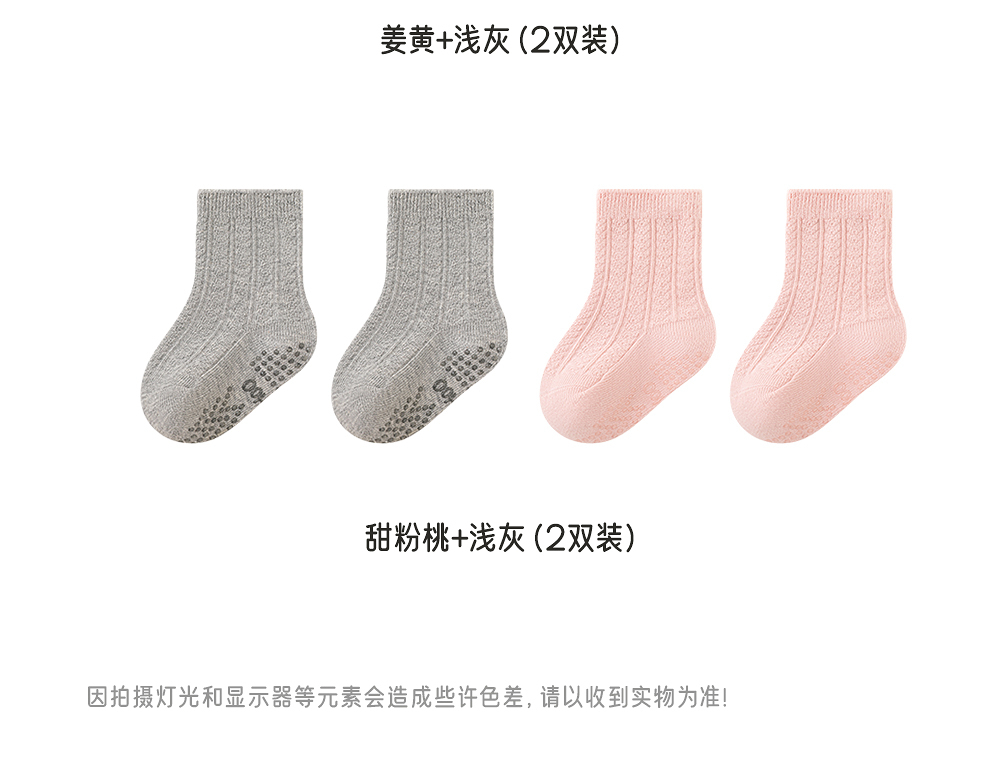 【商场同款】英氏婴儿袜子纯色四季袜男宝女宝抗菌袜子2双装短袜