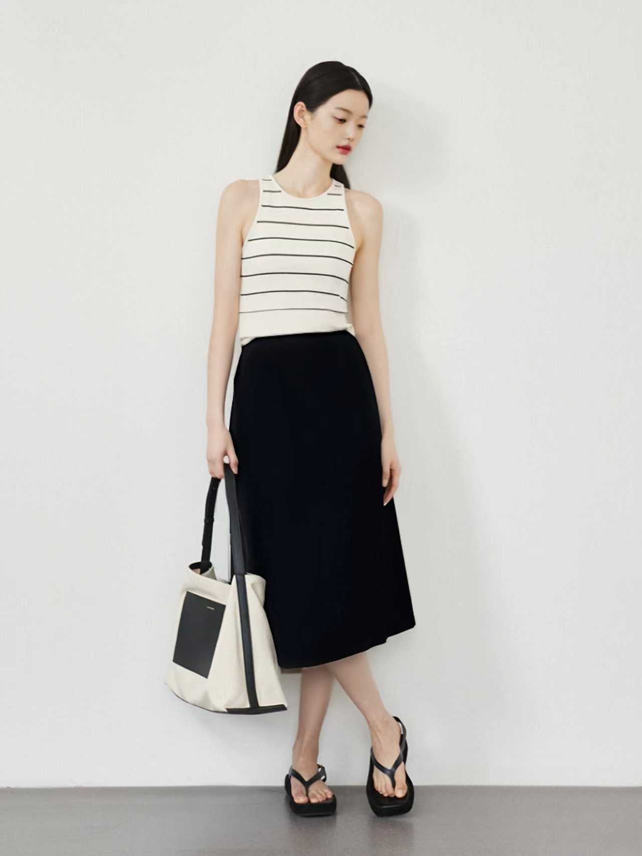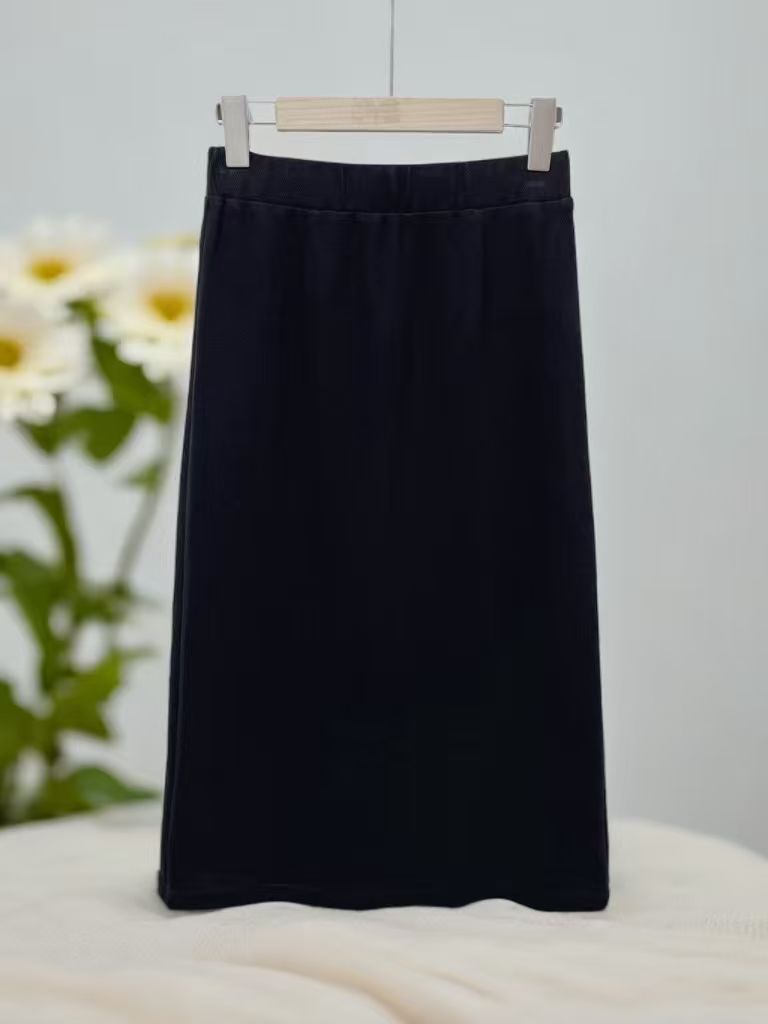 【秋新品】黑色简约斜纹后开叉卫裙半裙-喜出