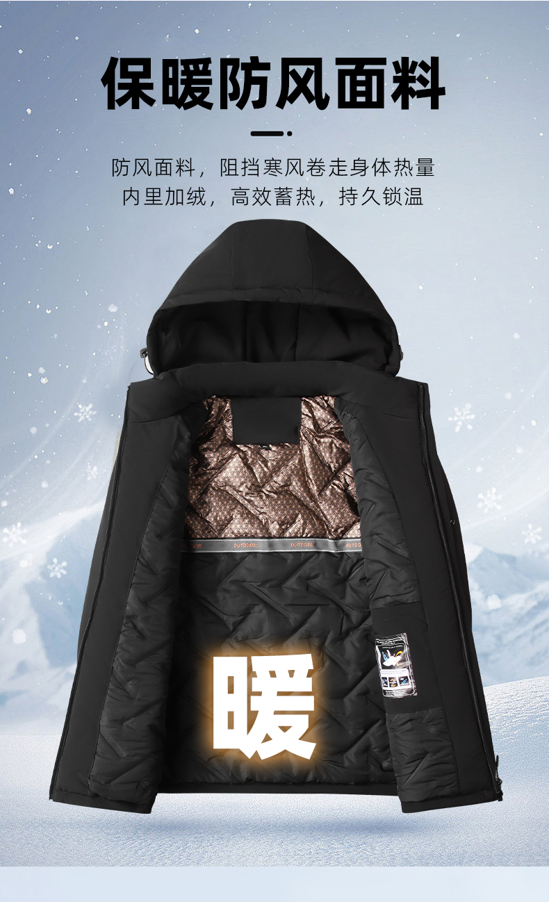 【可拆卸帽】【新款DK】大依优型大码男装棉服连帽户外棉衣夹克加肥加大休闲夹克胖子外套上衣