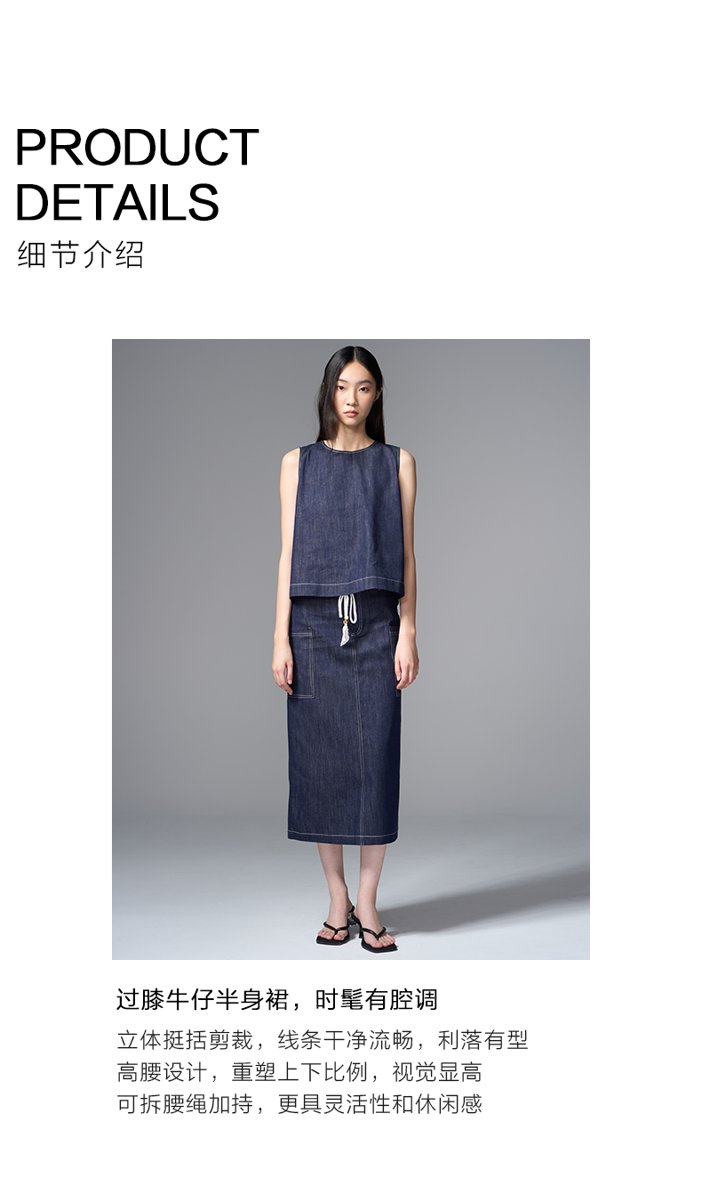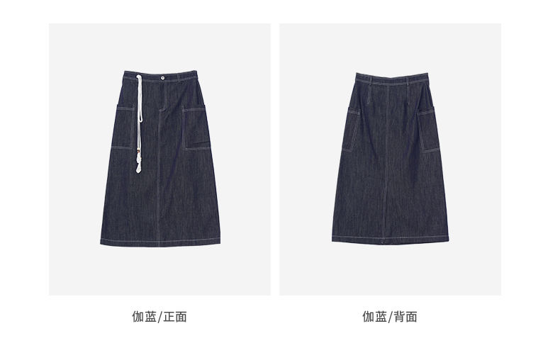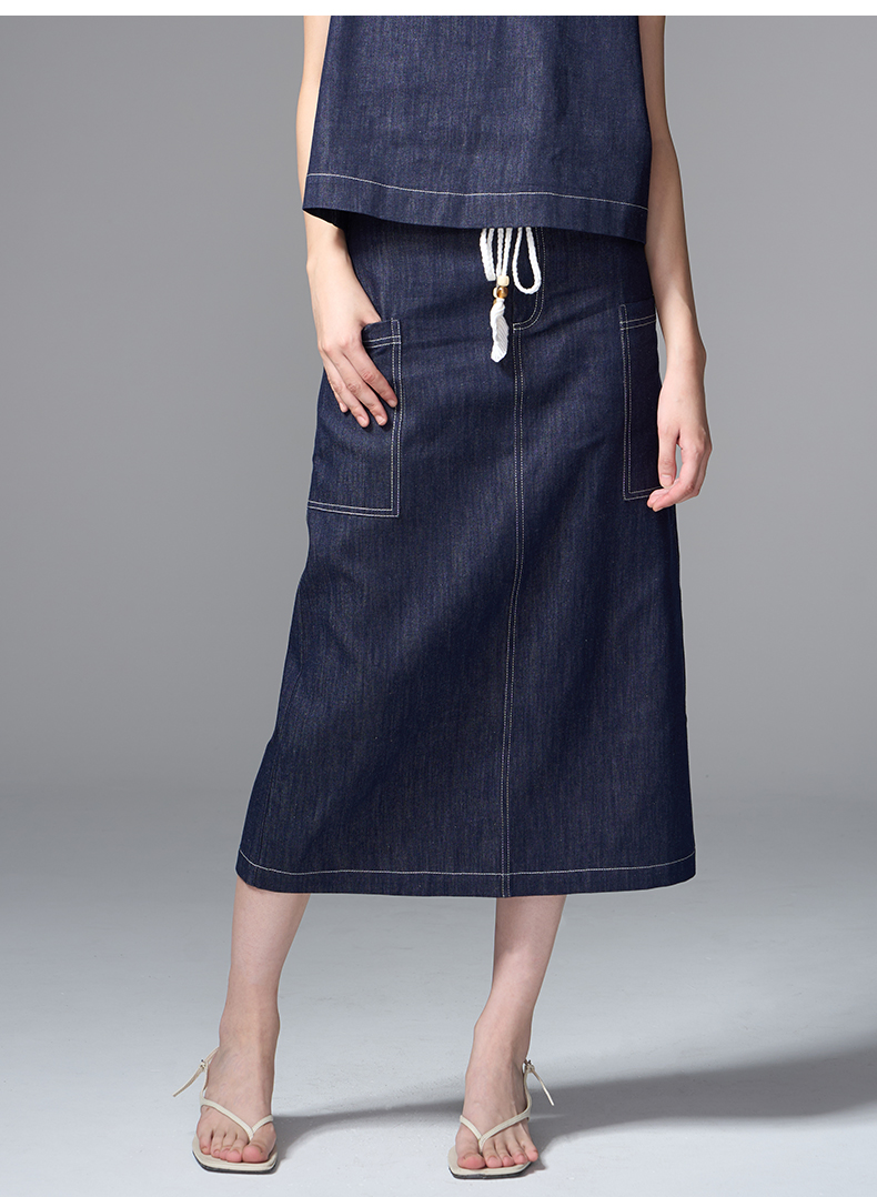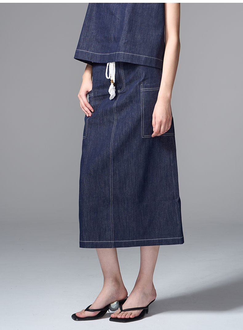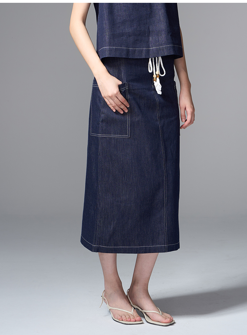 VIMAGE纬漫纪复古高腰可拆腰绳侧面大口袋设计牛仔半裙V2406102