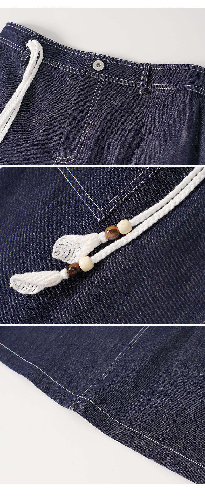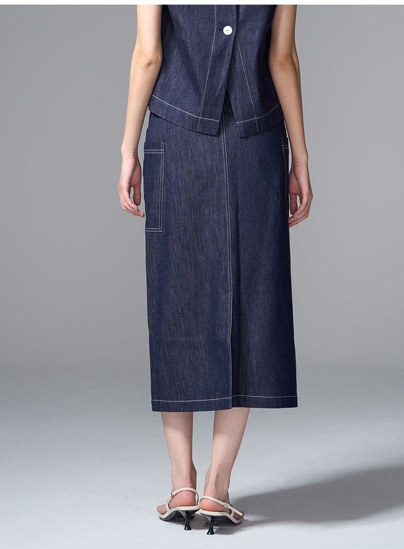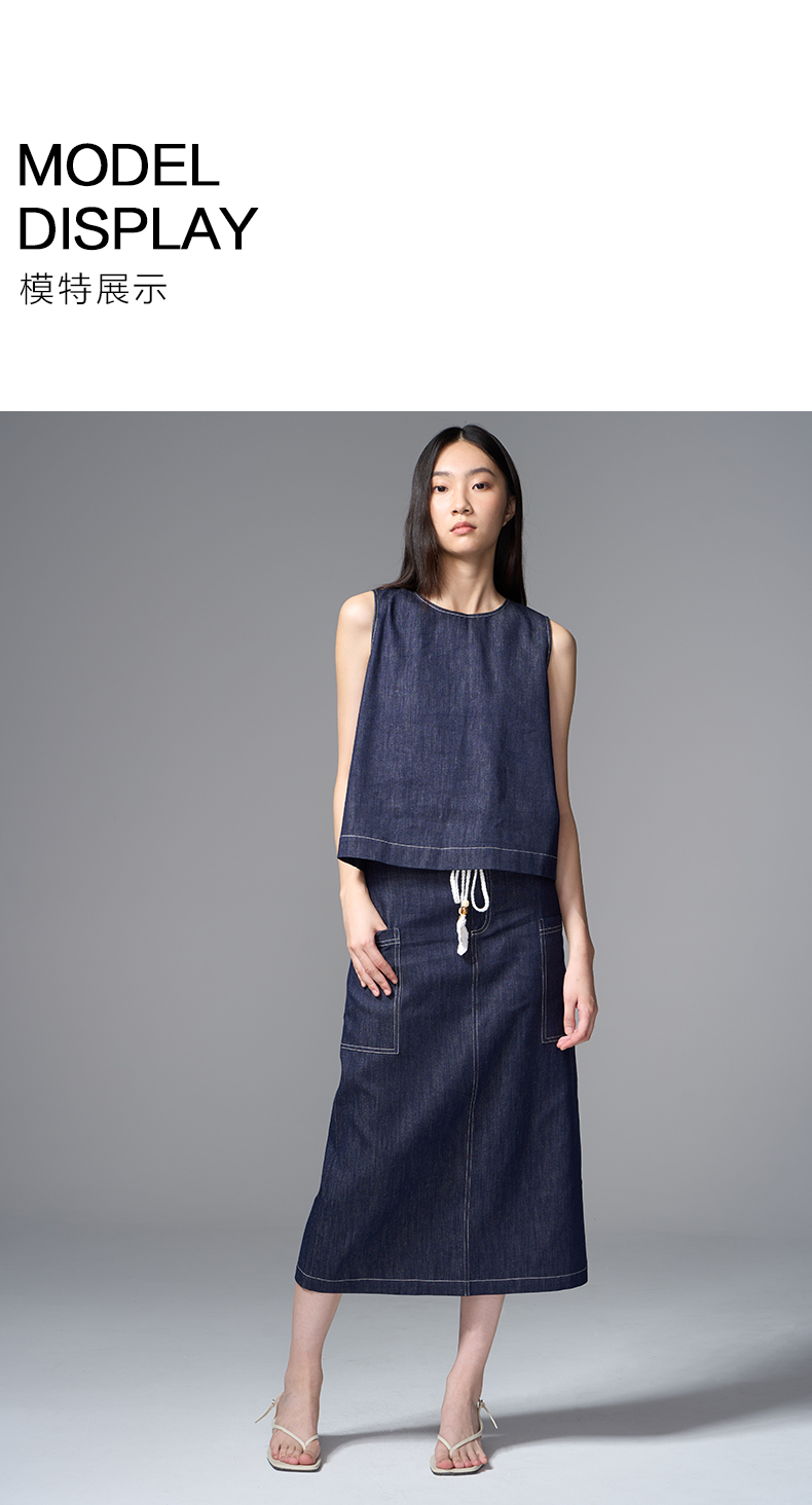 VIMAGE纬漫纪复古高腰可拆腰绳侧面大口袋设计牛仔半裙V2406102