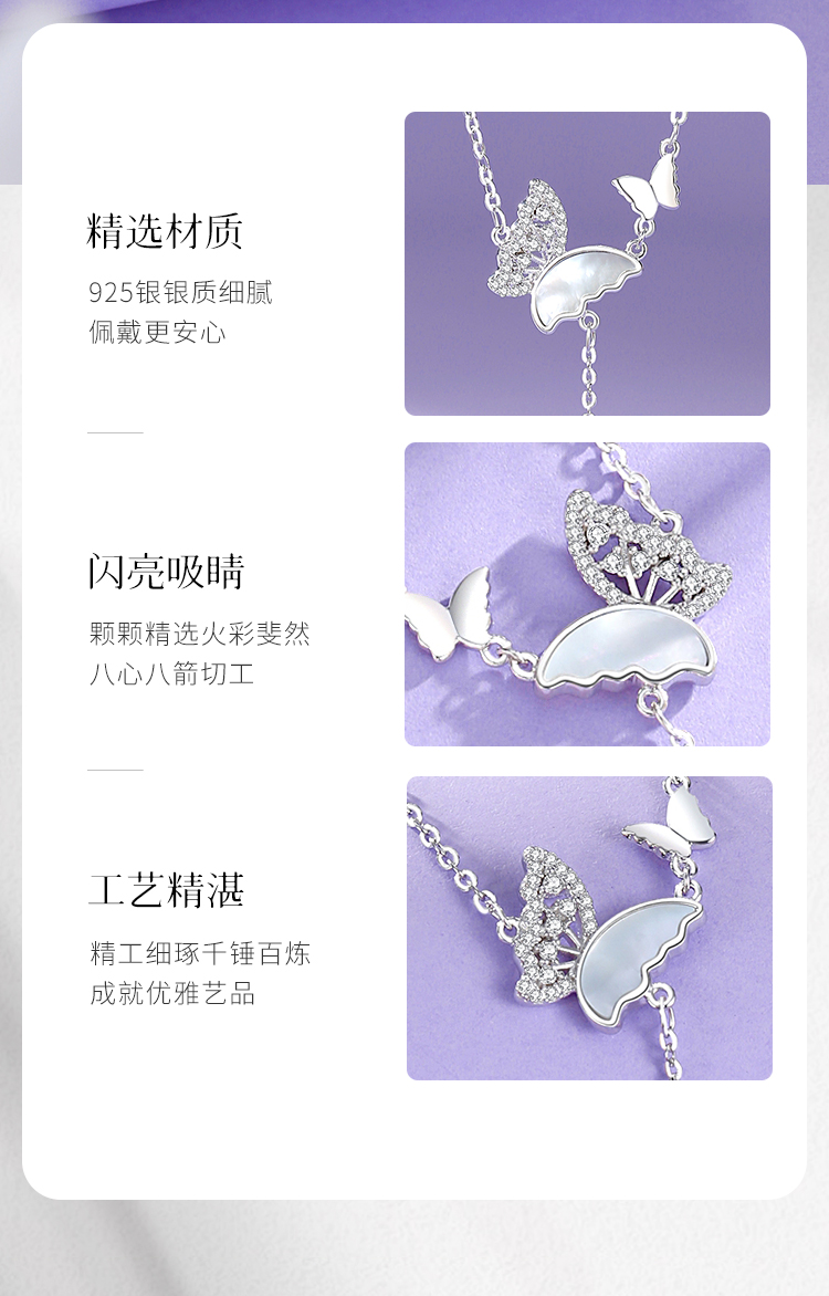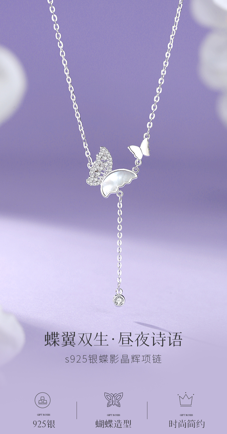 Winy 925银 蝶影晶辉项链送女友闺蜜节日生日礼物
