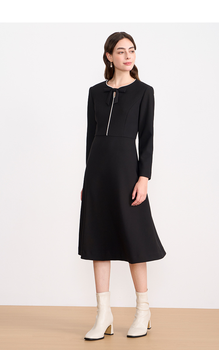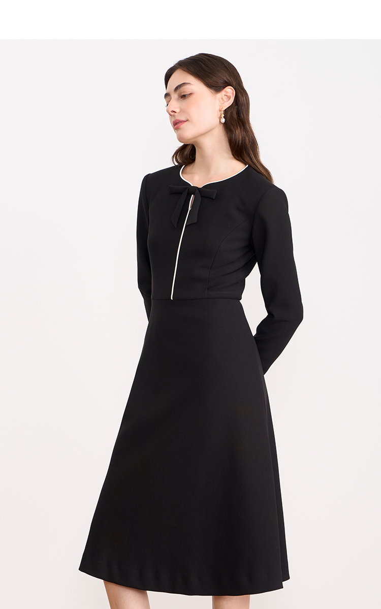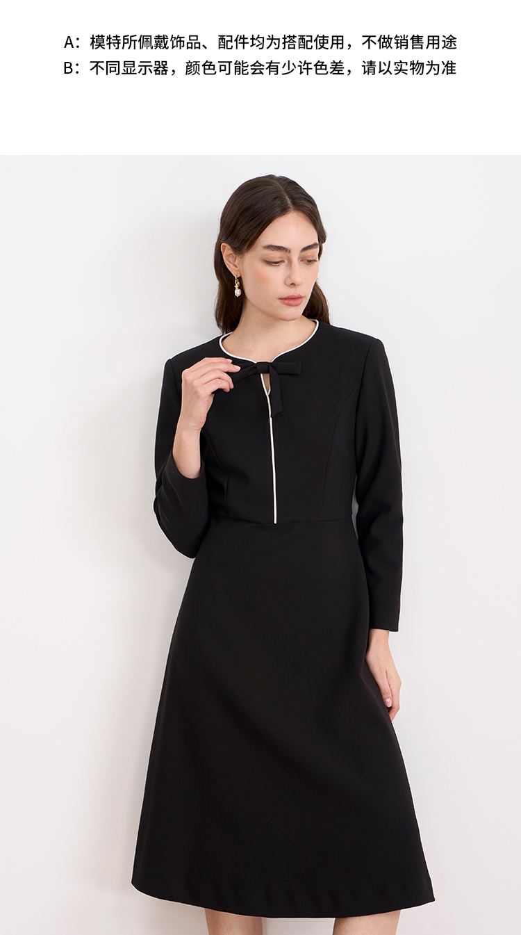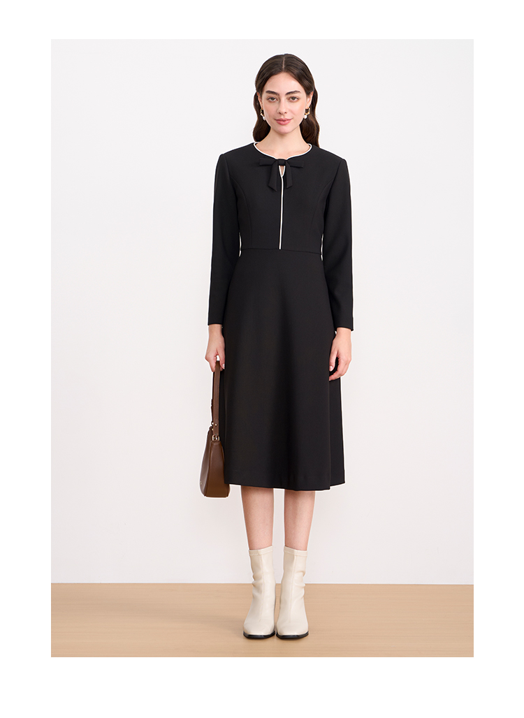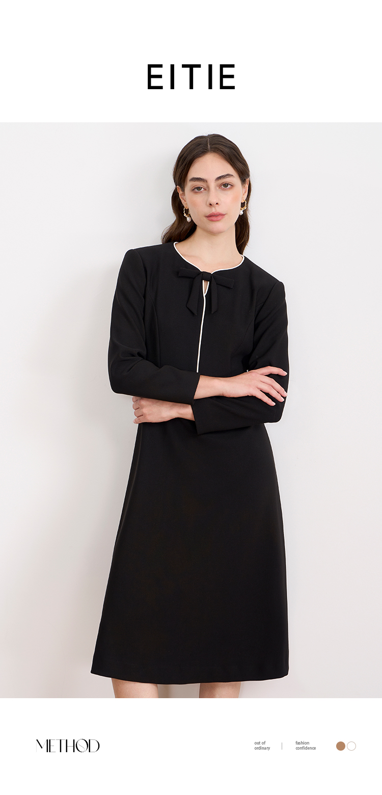 ITIE爱特爱气质蝴蝶结撞色线条气质通勤显瘦连衣裙2025秋冬新款D2507919