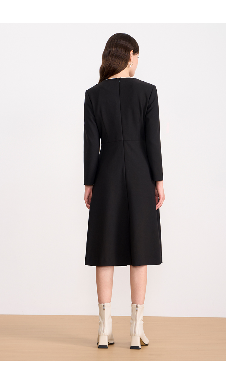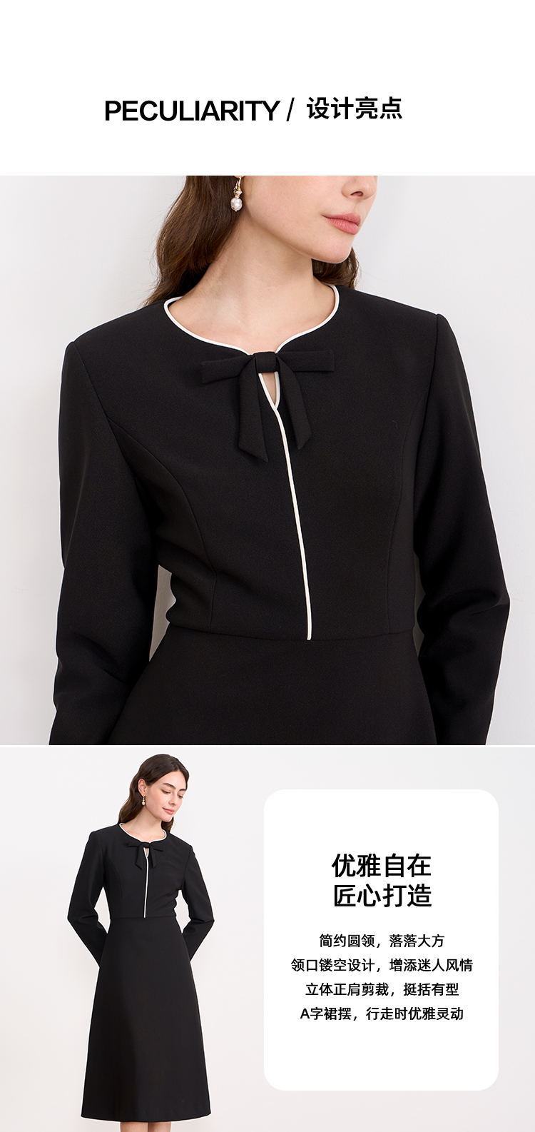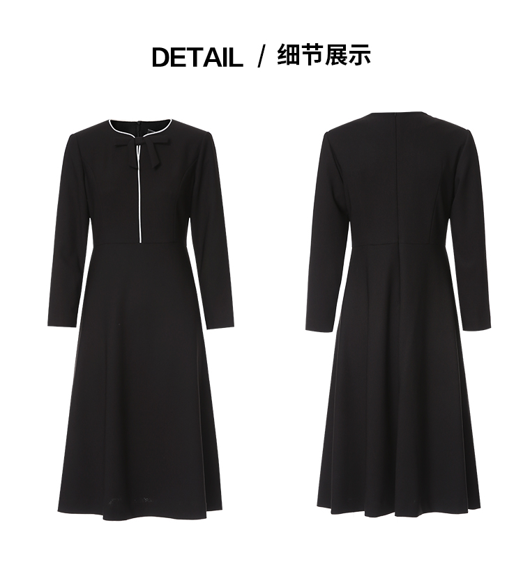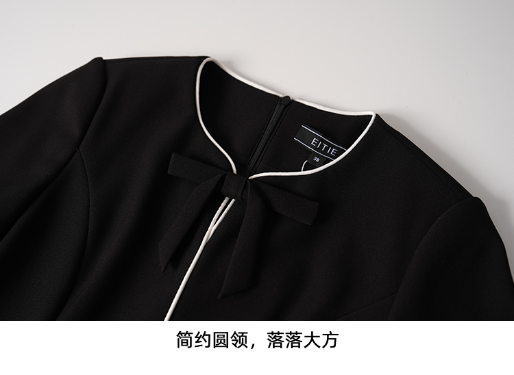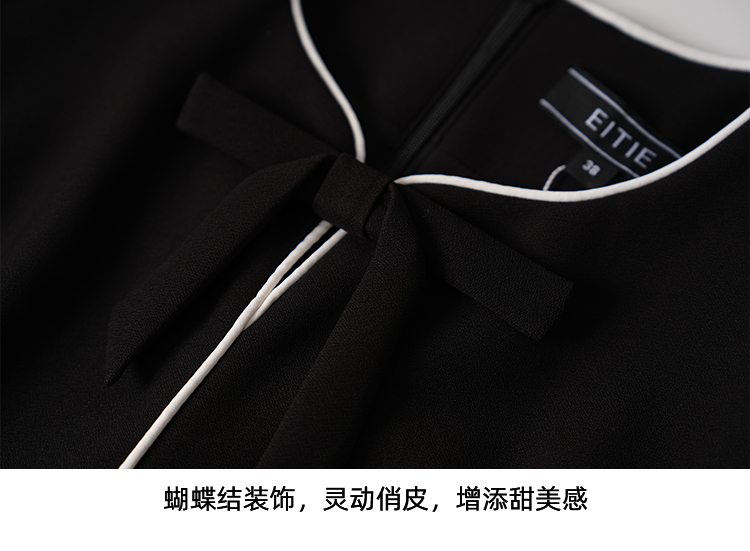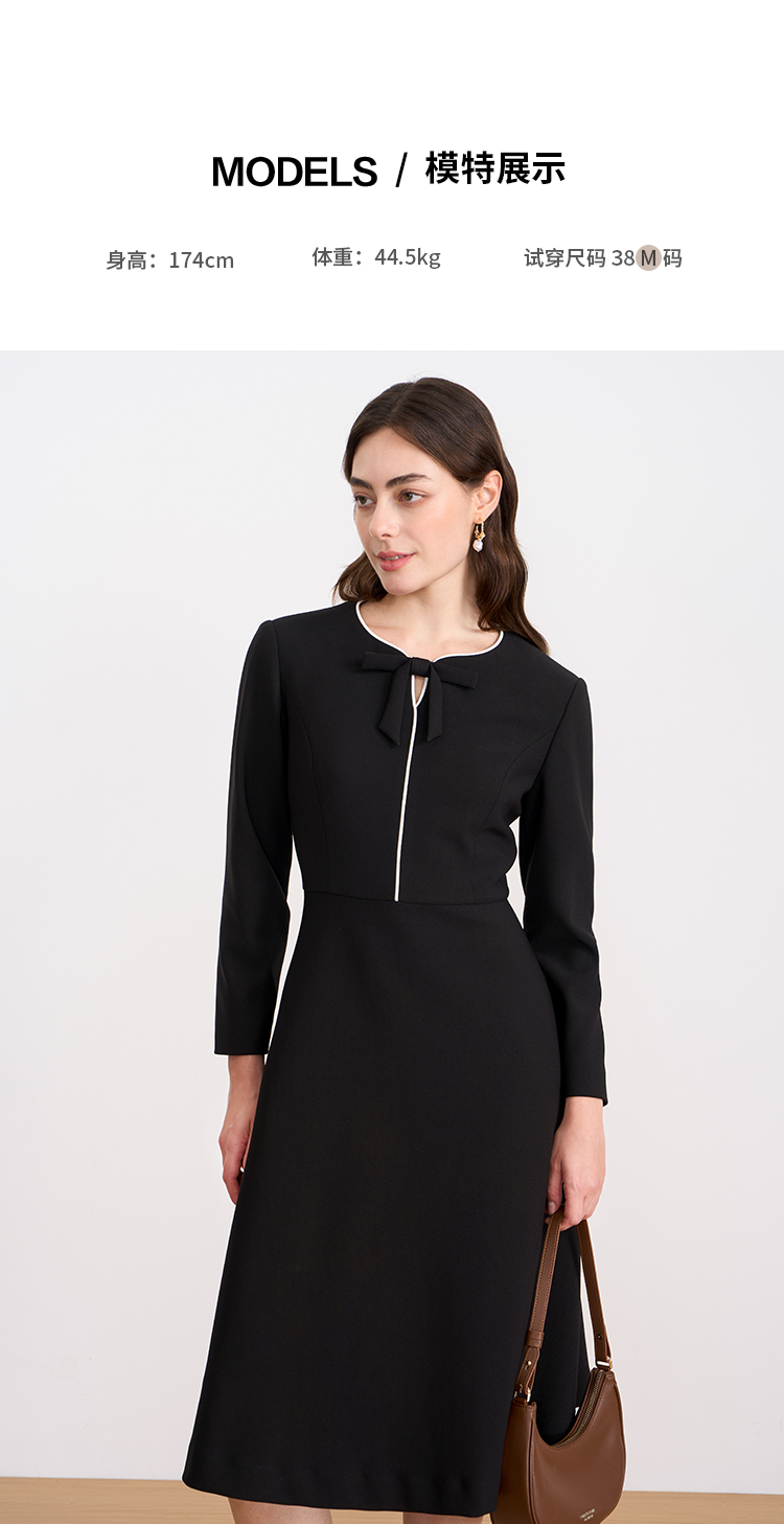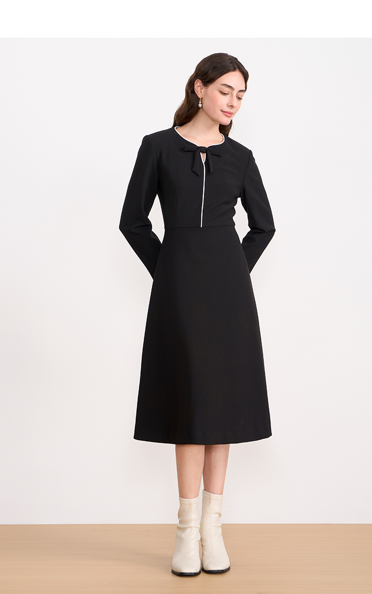 ITIE爱特爱气质蝴蝶结撞色线条气质通勤显瘦连衣裙2025秋冬新款D2507919