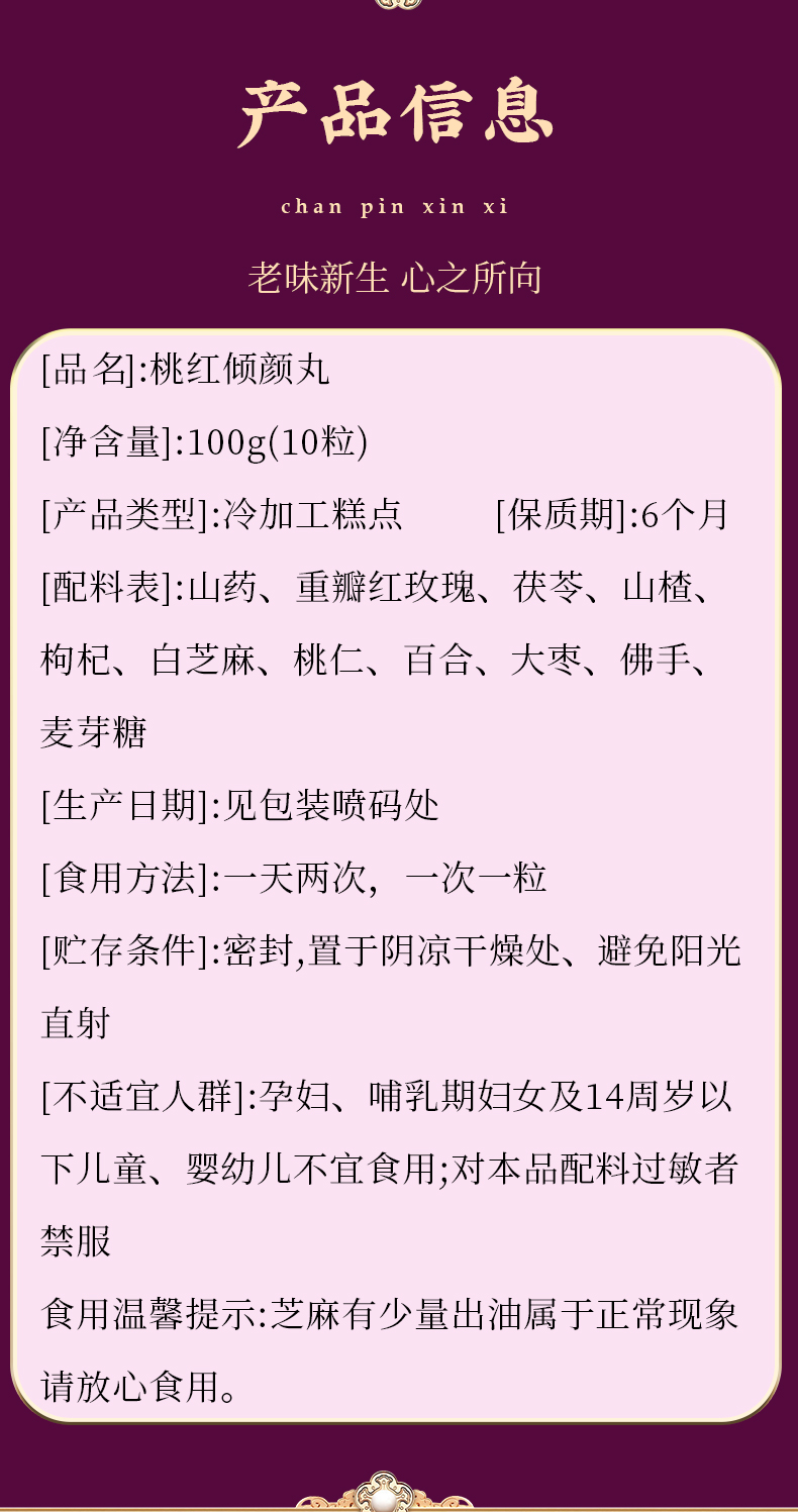 【买2发3 买3发5】草颐沐食桃红倾颜丸 萃取自然植物草本食材 古法新作 焕润桃肌 由内而外 滋养 面若桃红