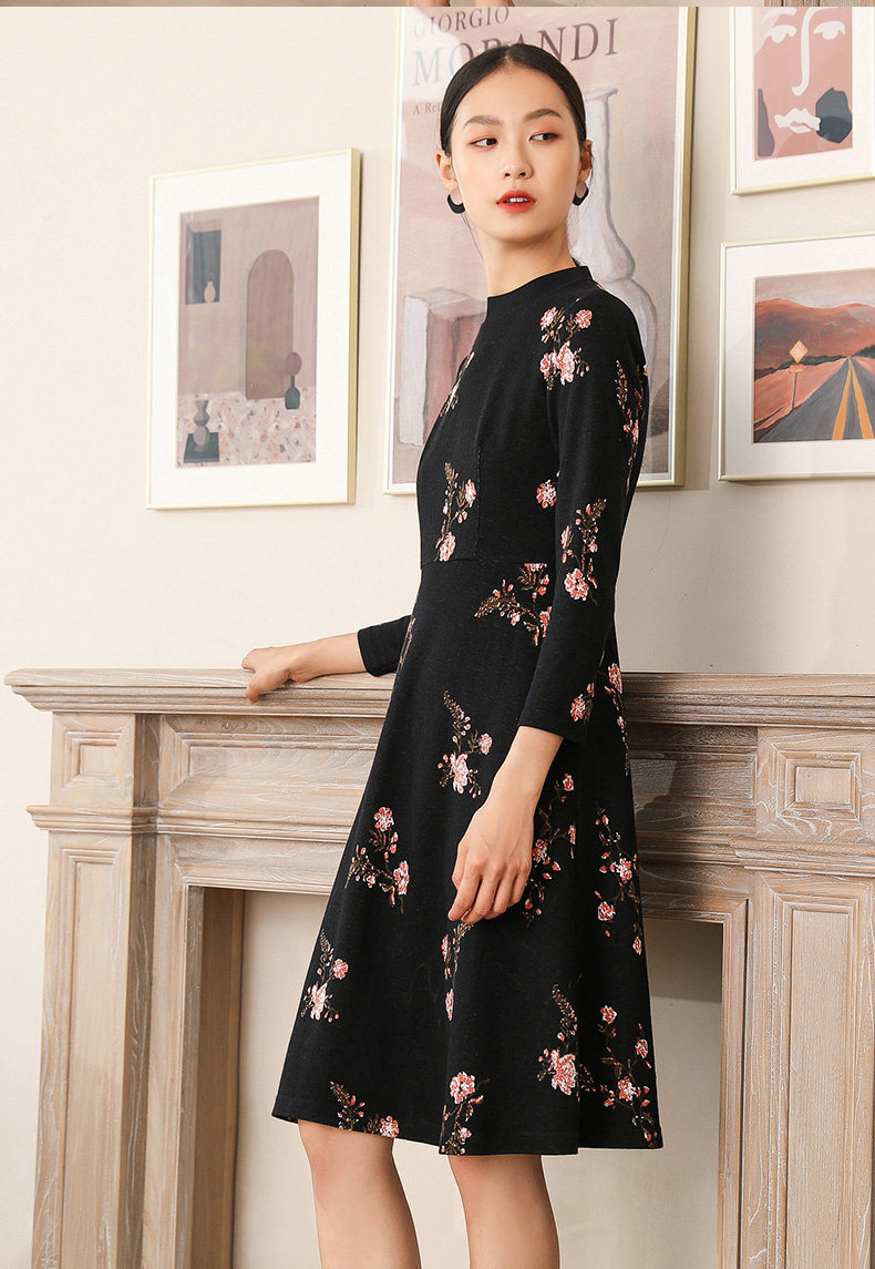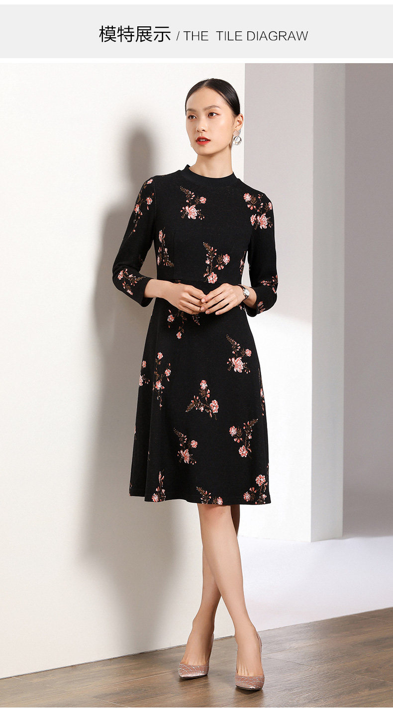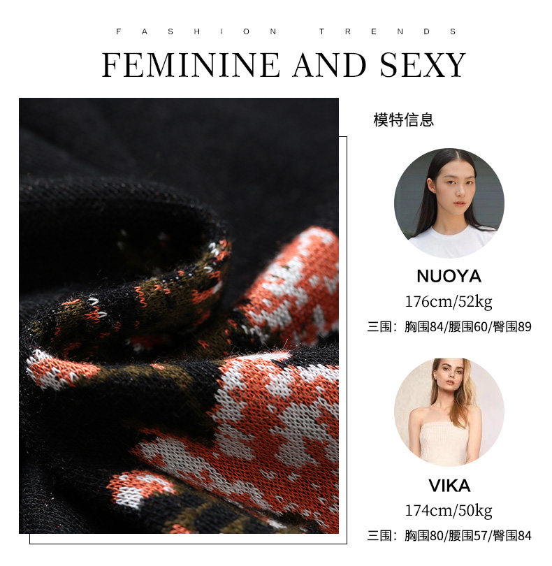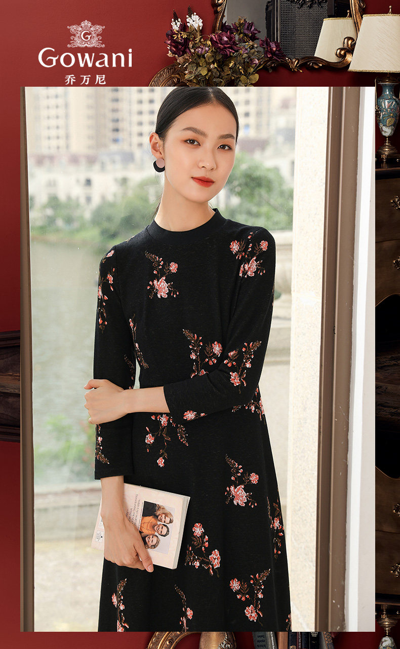 乔万尼羊毛针织连衣裙秋装女印花显瘦气质长袖打底裙EN3E375