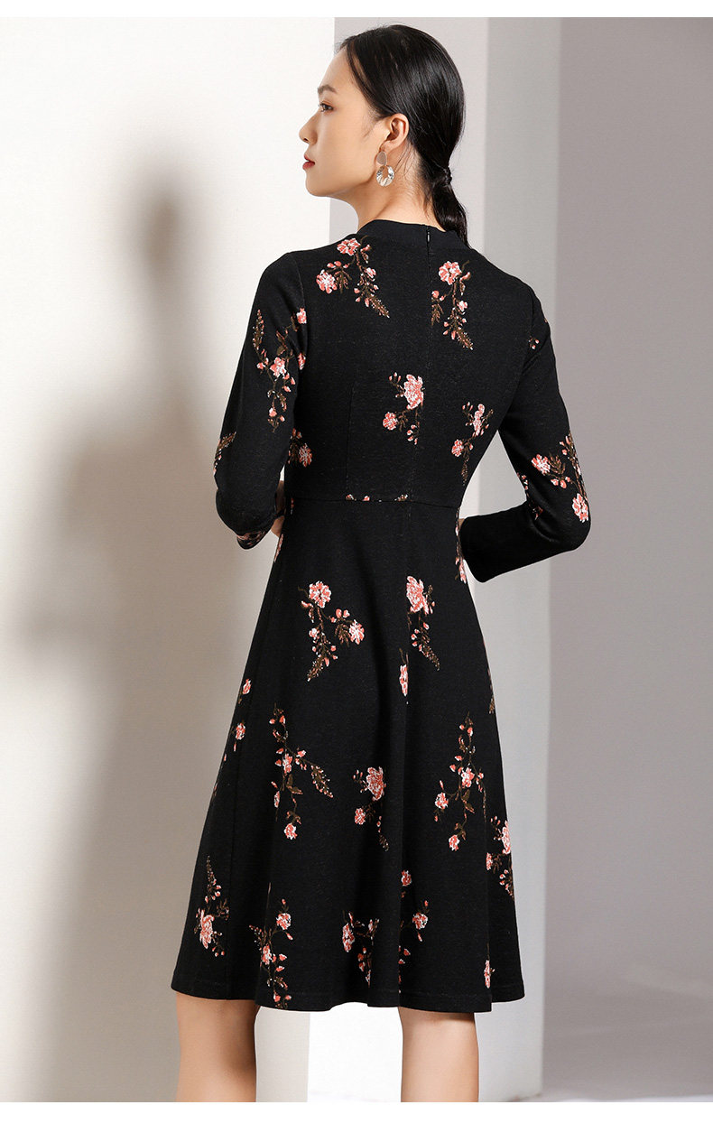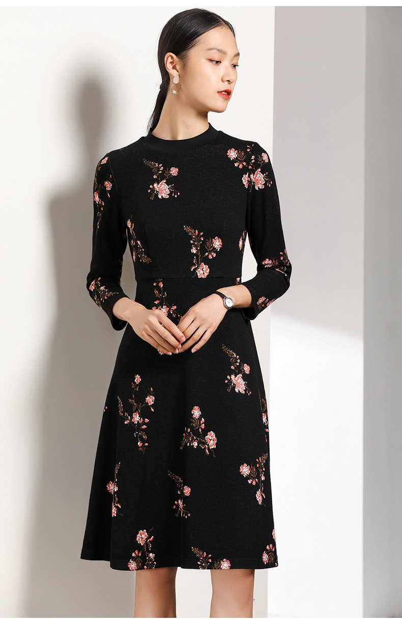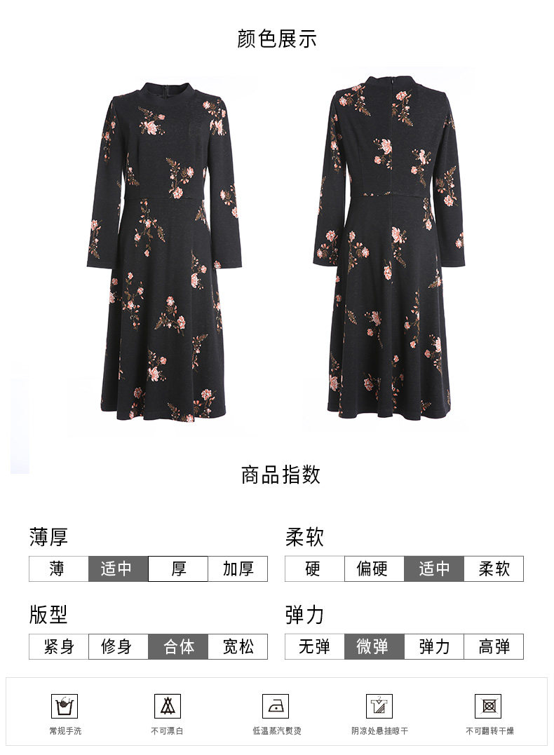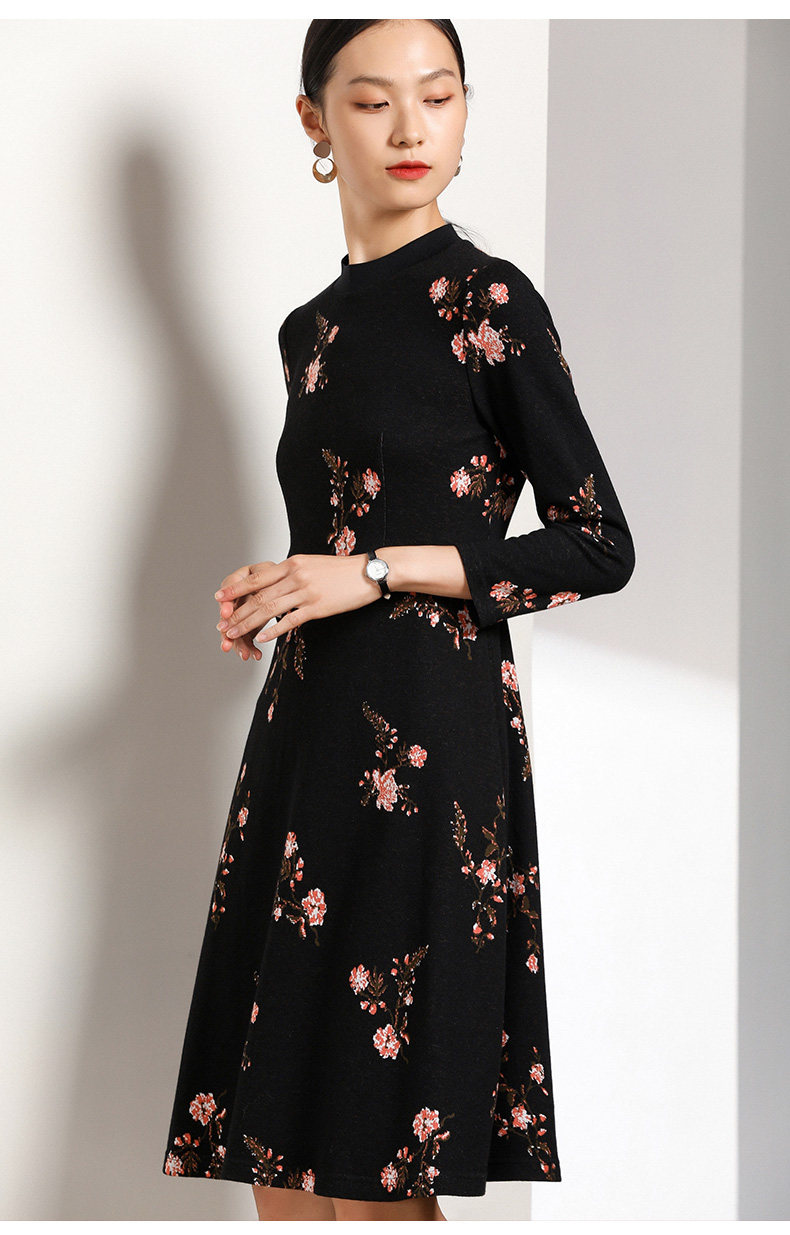 乔万尼羊毛针织连衣裙秋装女印花显瘦气质长袖打底裙EN3E375