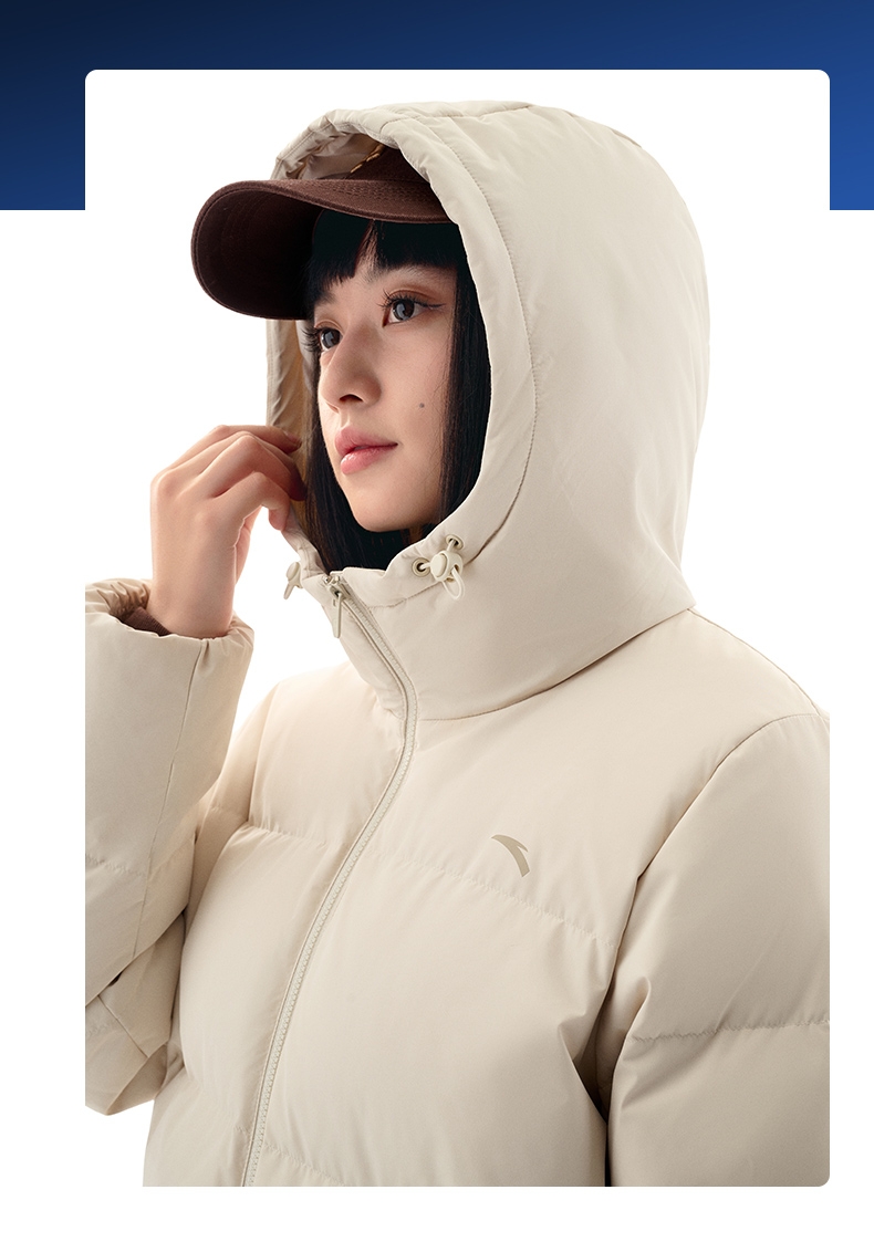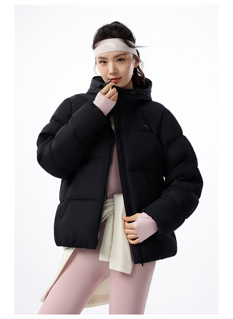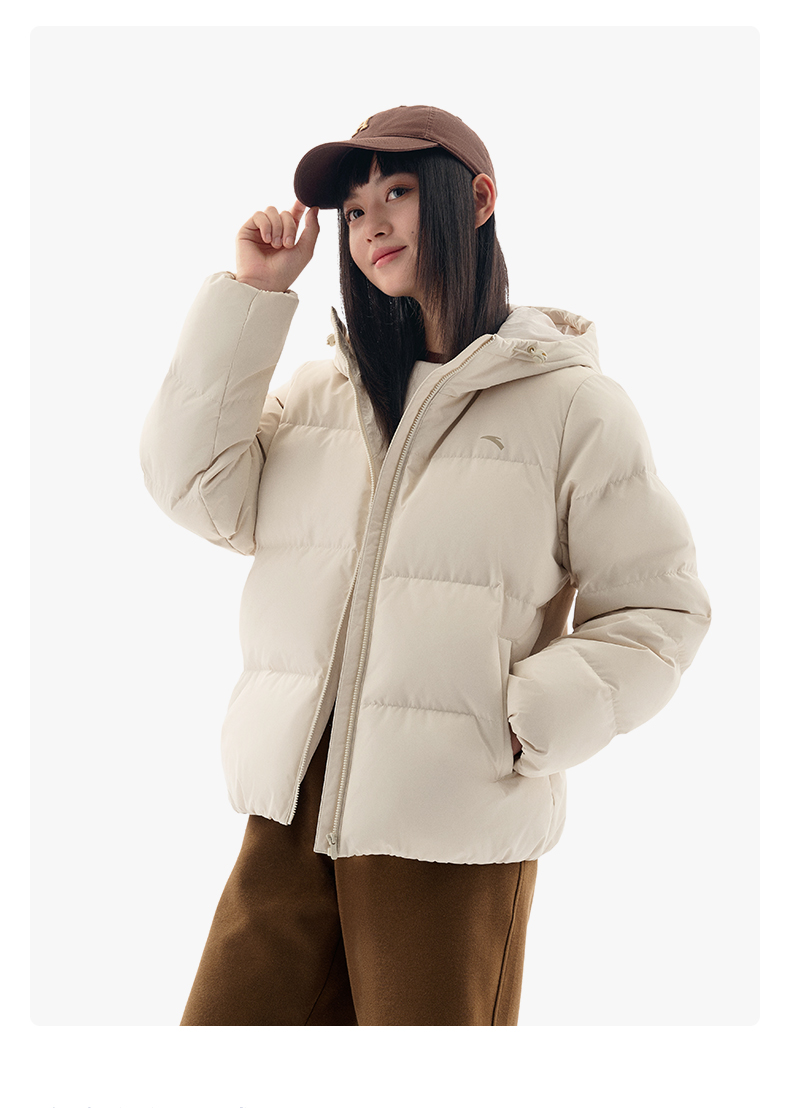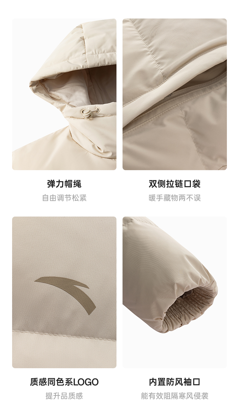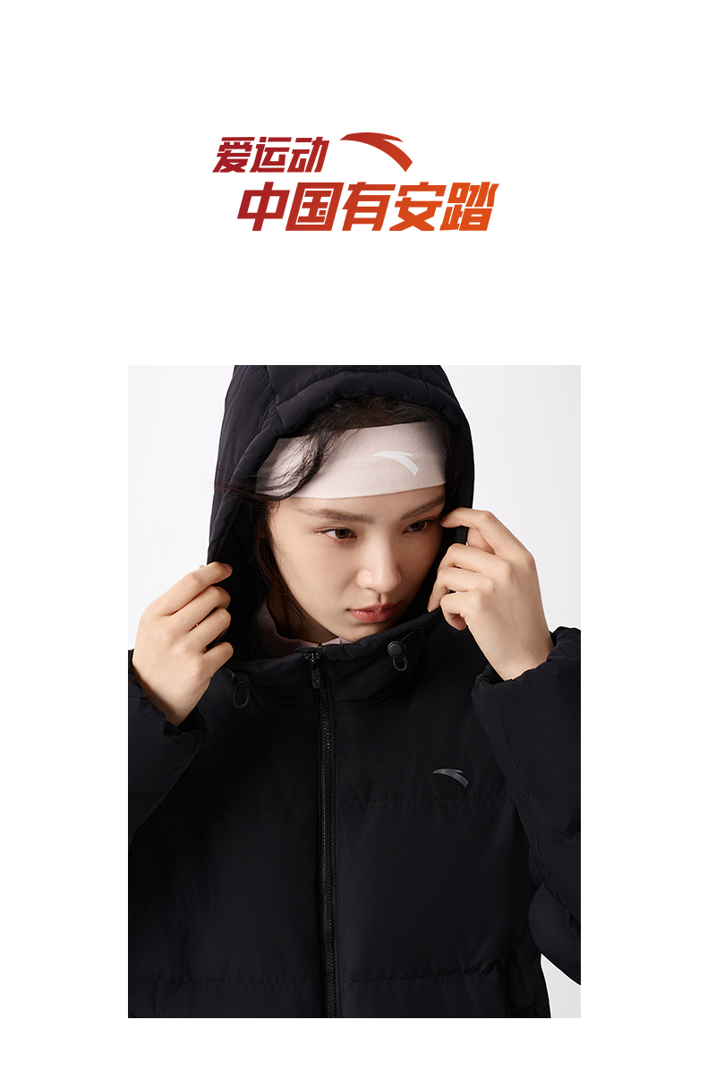 安踏防泼水羽绒服女士冬季新款宽松保暖连帽面包服外套162547911