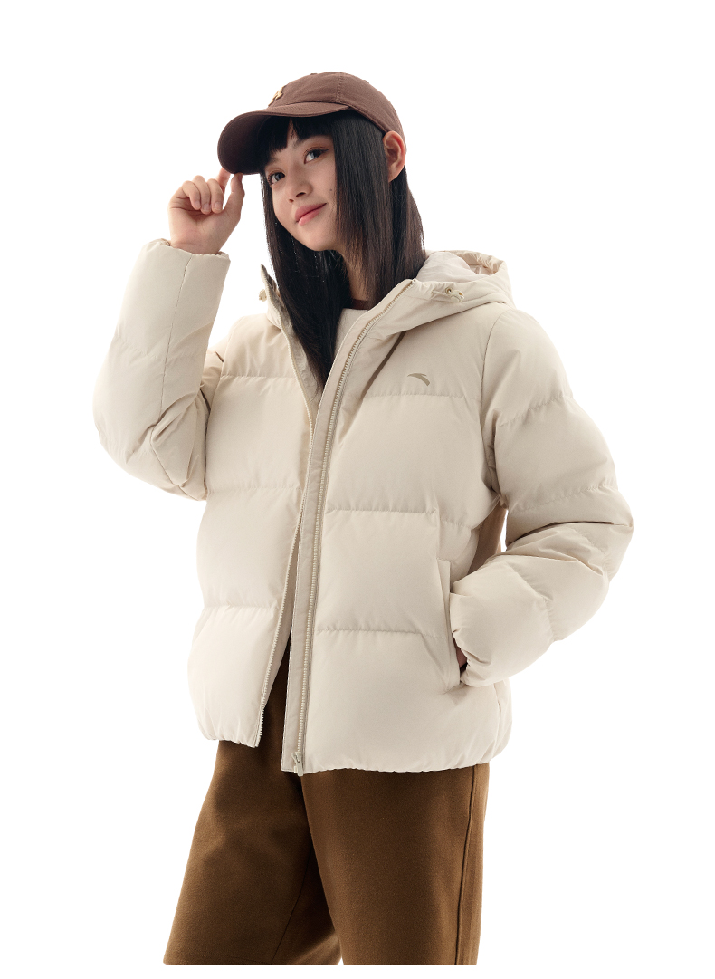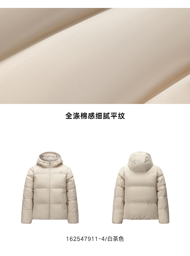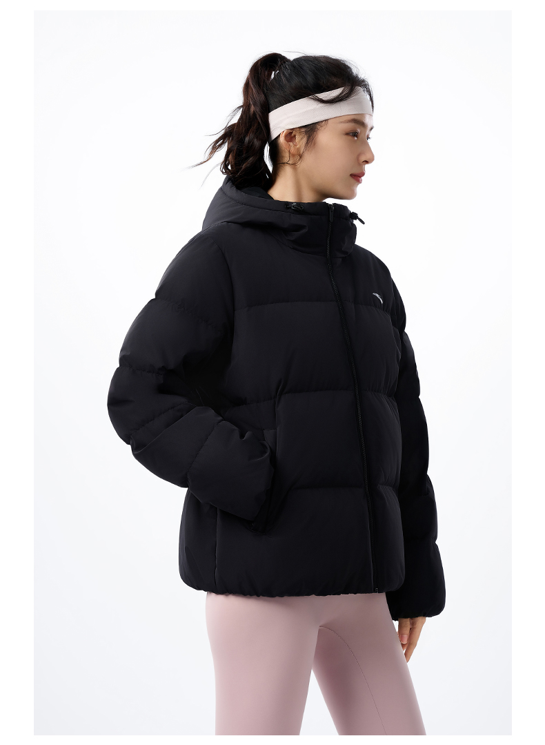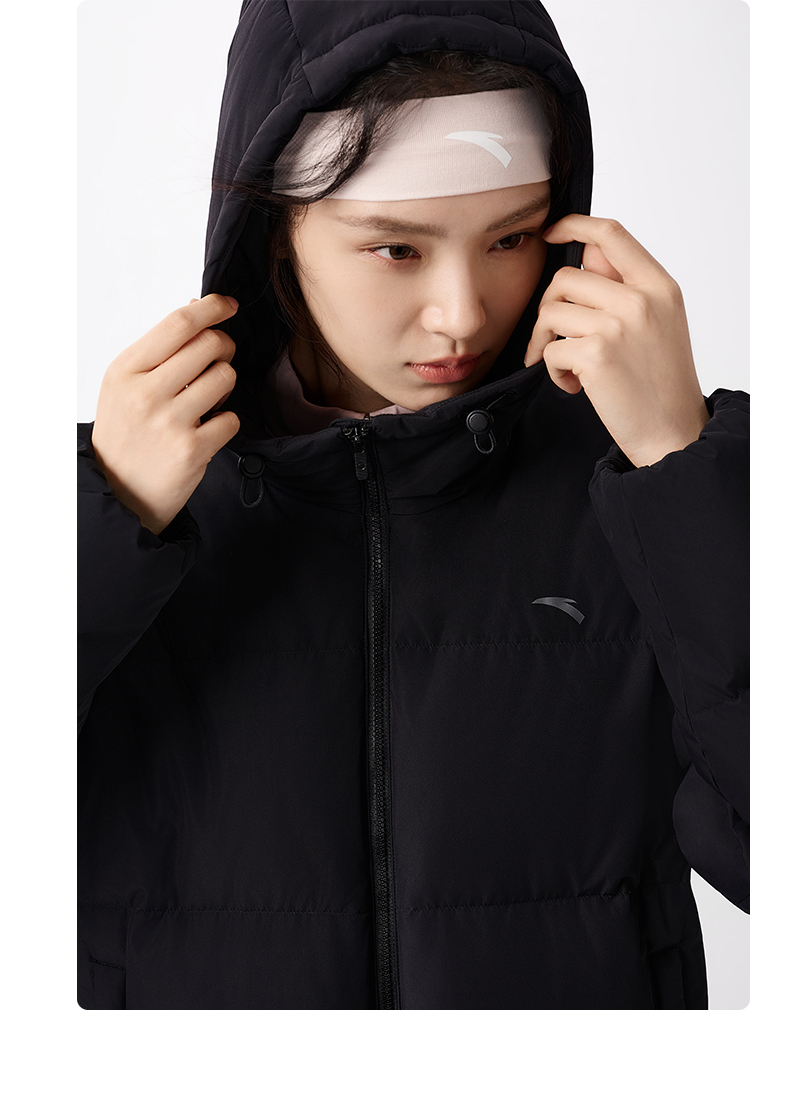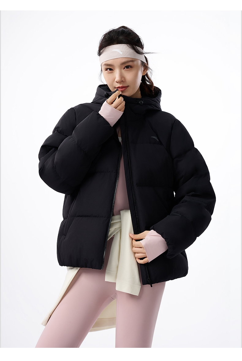 安踏防泼水羽绒服女士冬季新款宽松保暖连帽面包服外套162547911