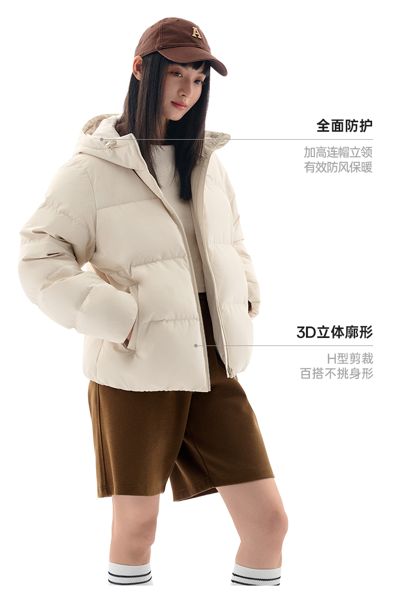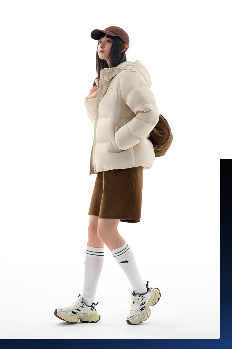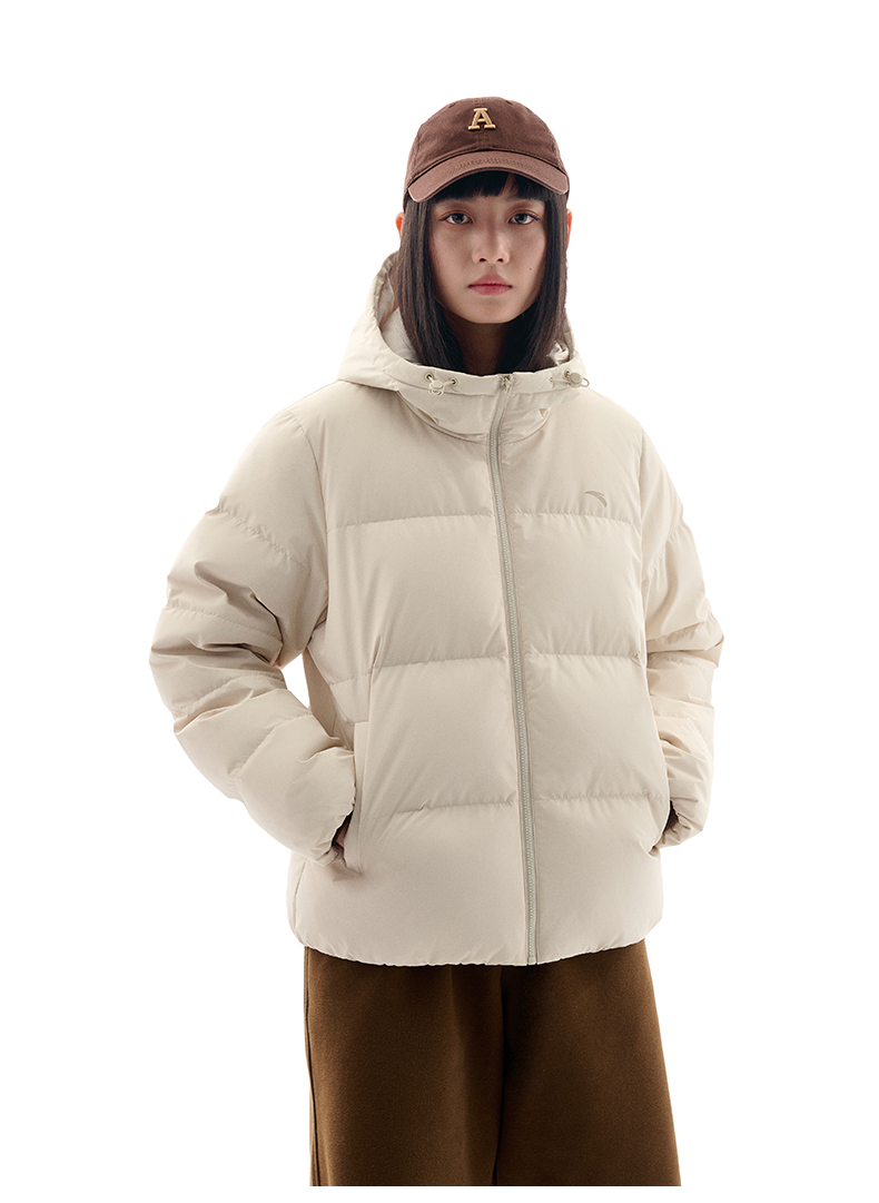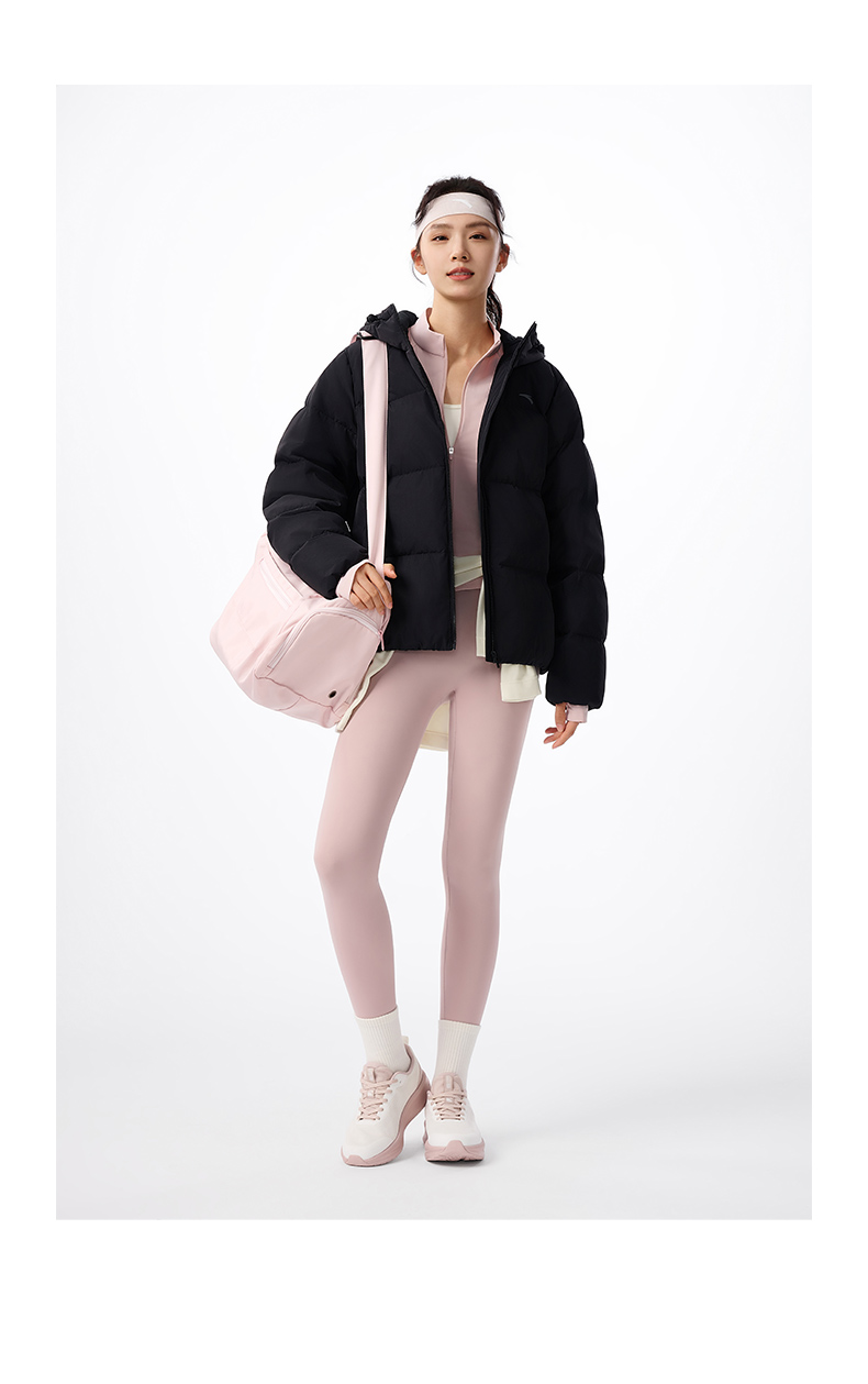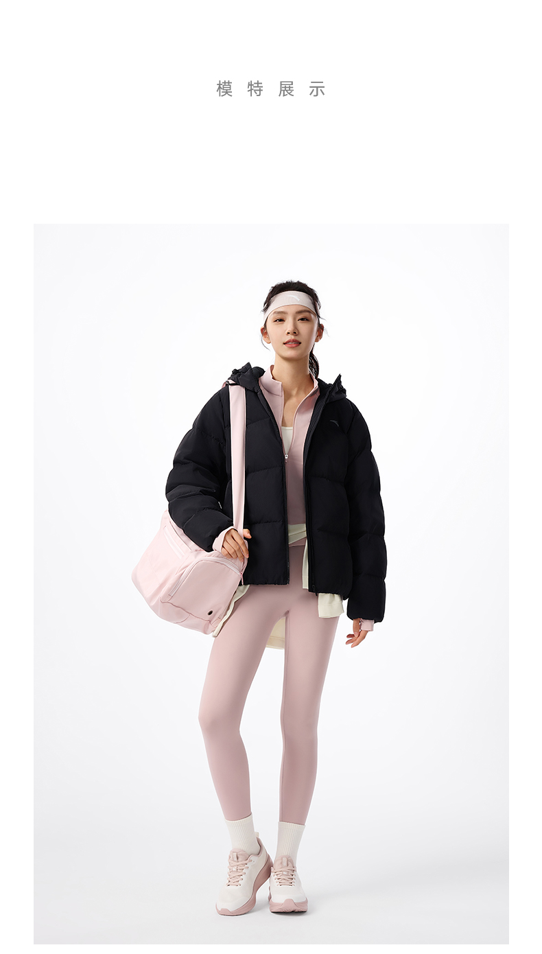 安踏防泼水羽绒服女士冬季新款宽松保暖连帽面包服外套162547911