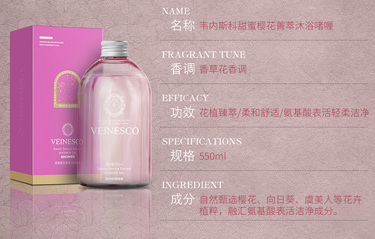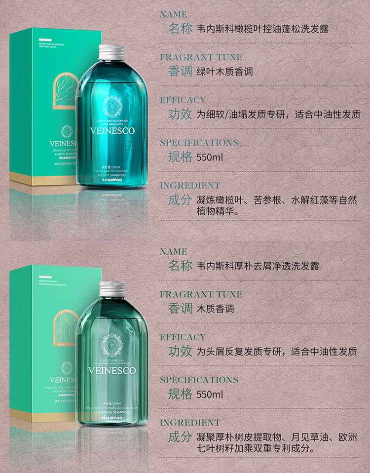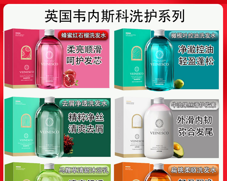 【门店直发】Veinesco韦内斯科橄榄叶樱花牛油果控油蓬松香氛留香洗发露沐浴乳550g