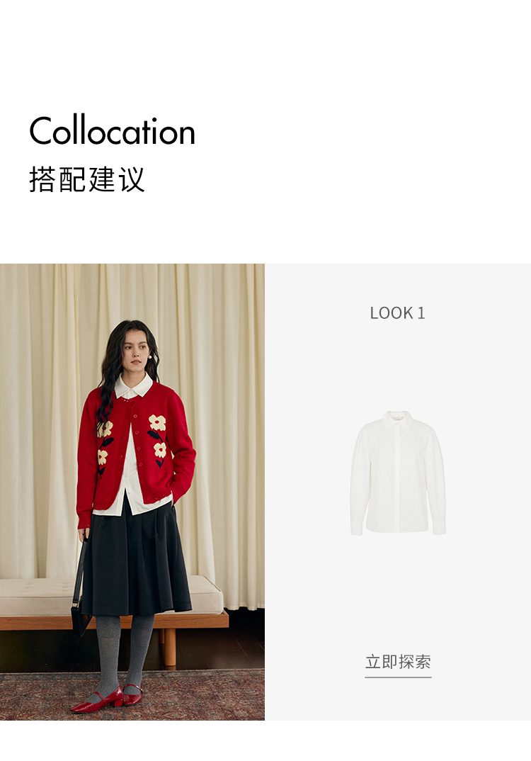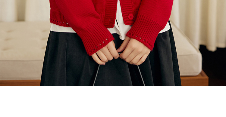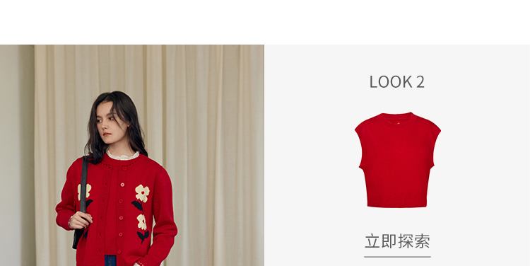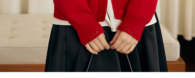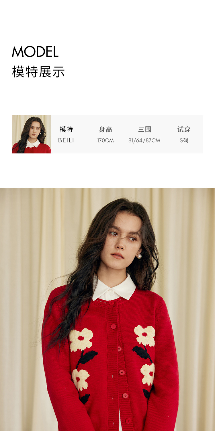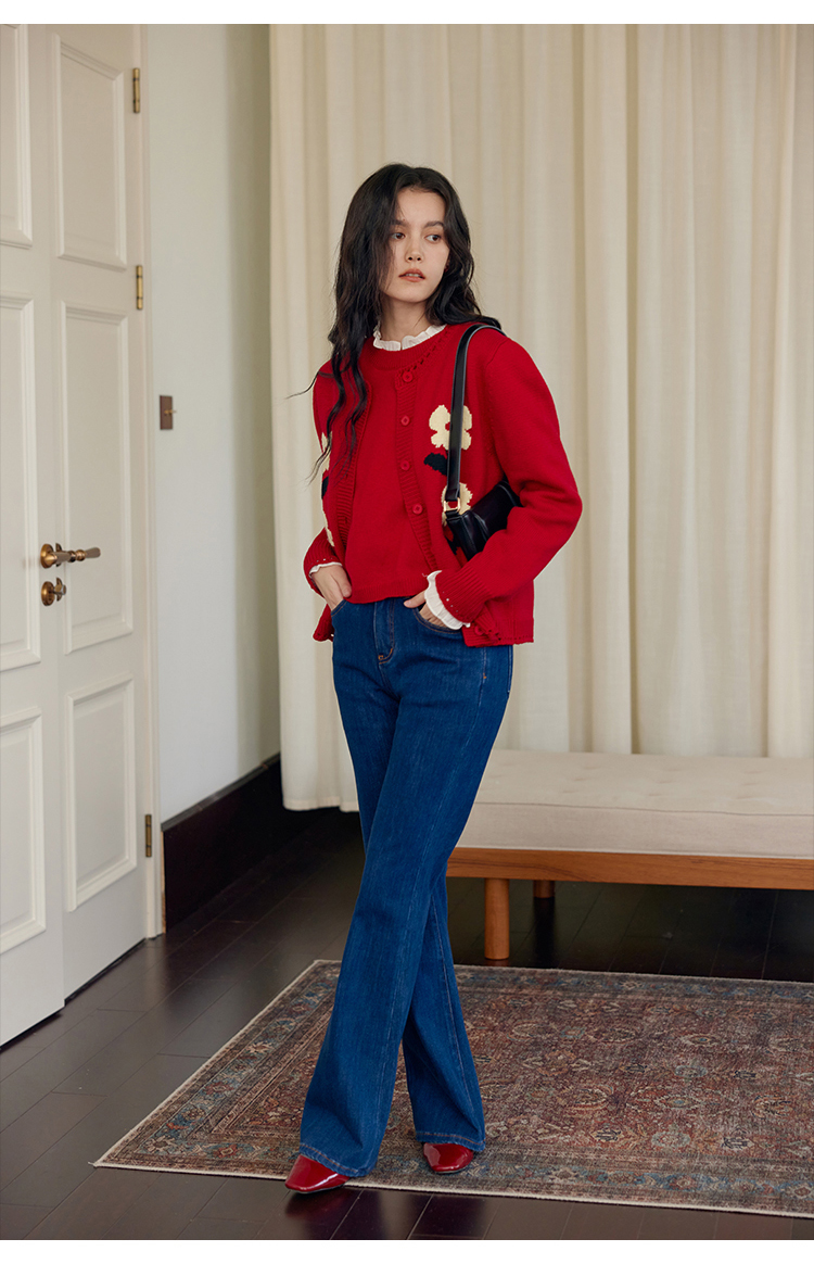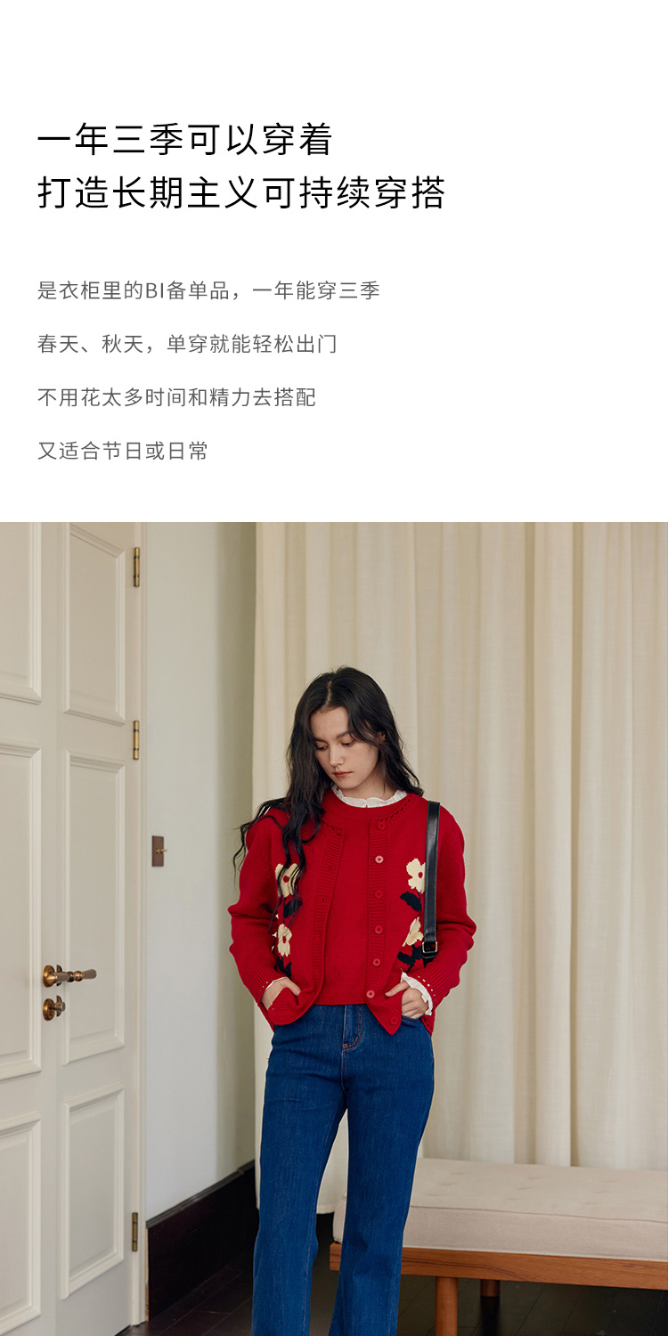 HeyDress原创提花针织开衫女秋冬法式宽松红色毛衣软糯羊毛上衣