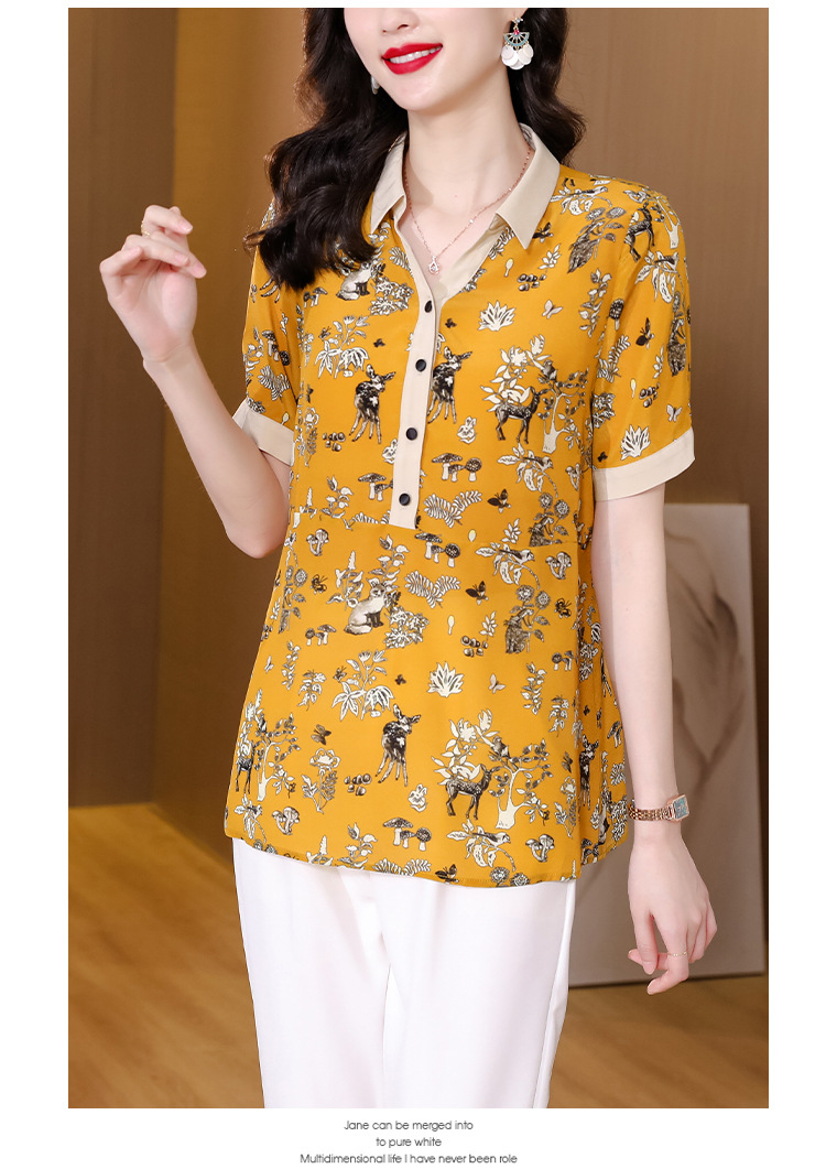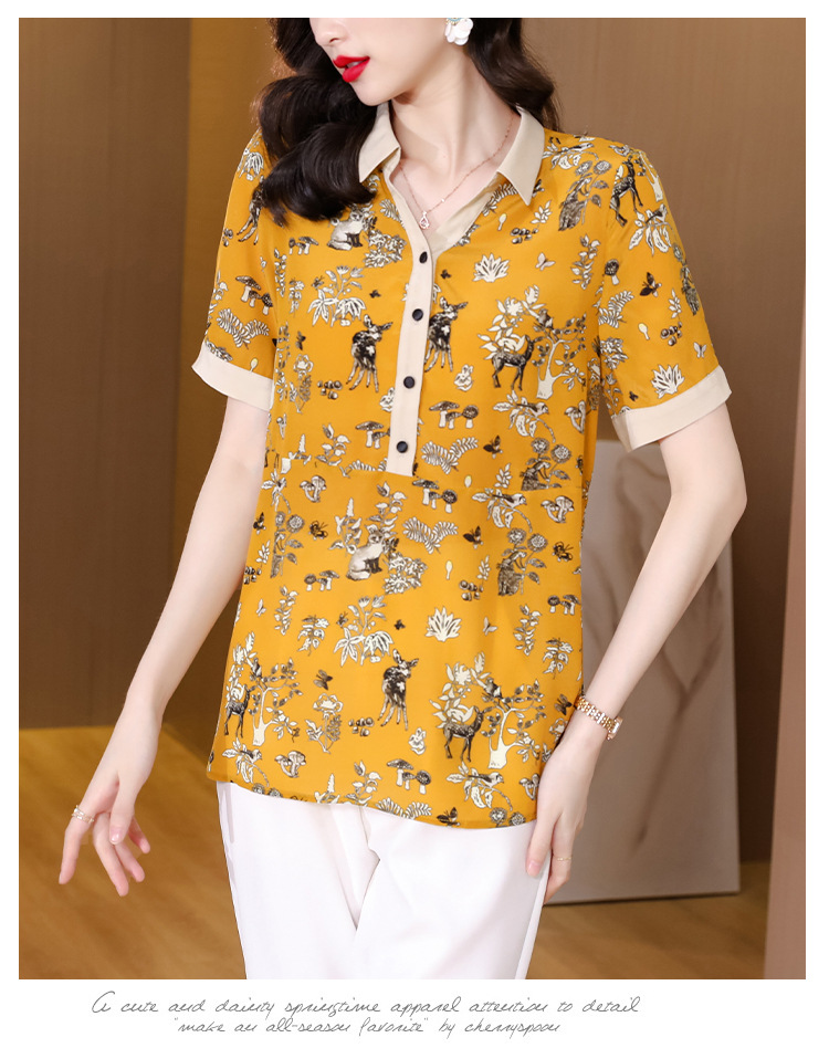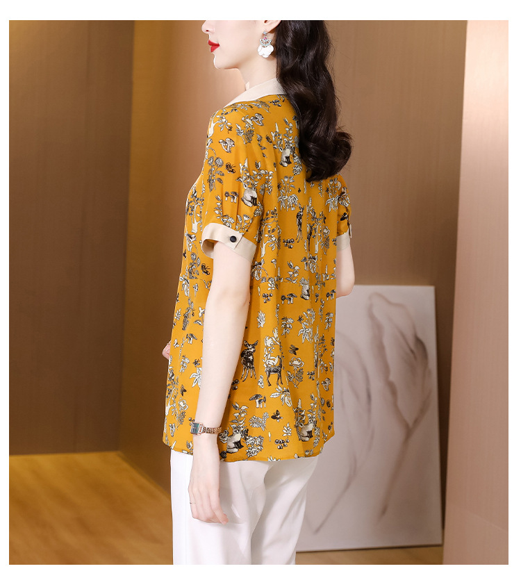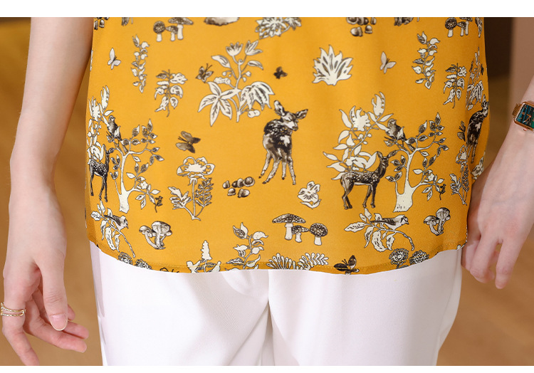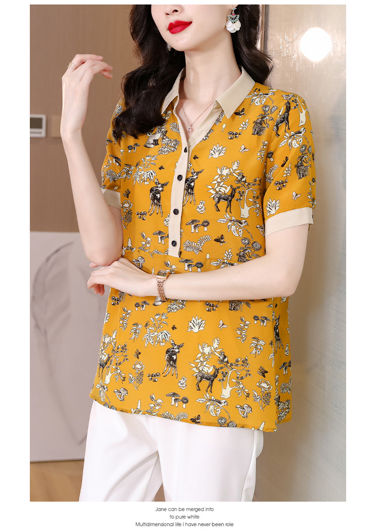 MZ 801976通勤宽松仿真丝衬衫时尚印花气质上衣