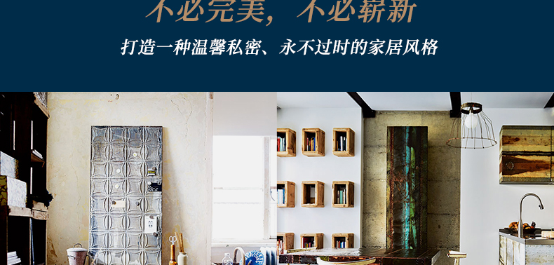 在很多方面,完美无瑕都是值得欣赏的,然而在家居中它却难有用武之地。从审美的角度来说,刻板的对称与统一的质地、颜色,都难以给眼睛或想象力带来刺激。而从实际的角度来说,崭新的家很快就将经受日常生活的蹂躏,磕碰和磨损在所难免,即便你是再坚定的洁癖也无济于事。