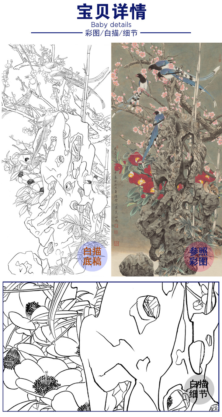 竖幅工笔花鸟白描底稿-周中耀-FV04