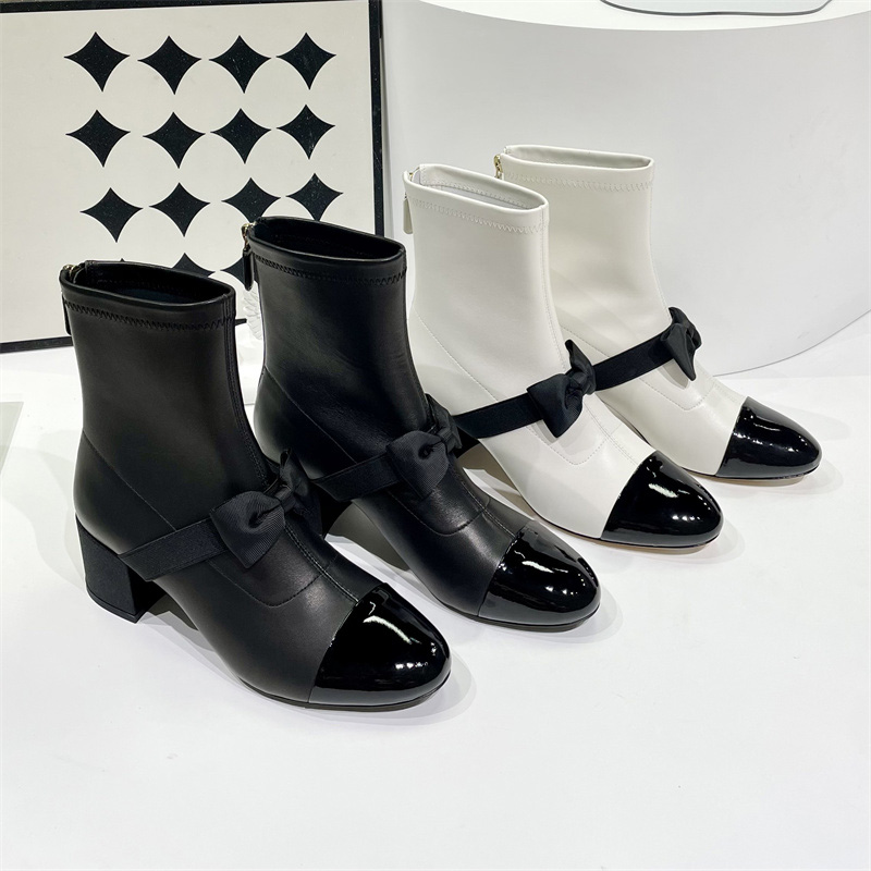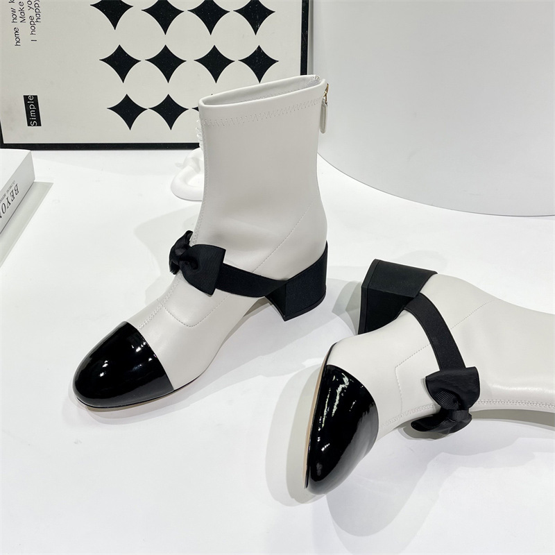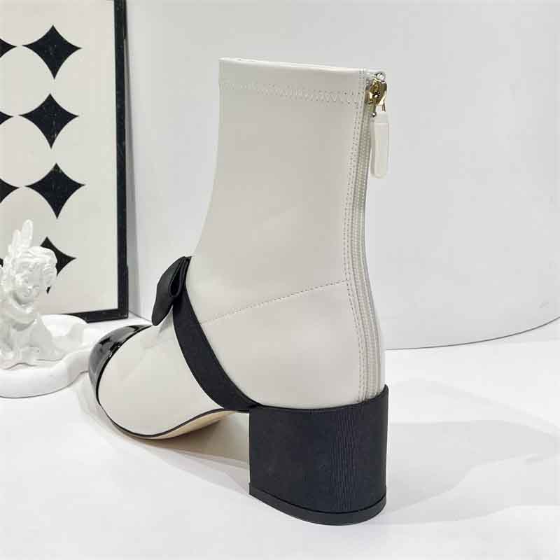 香奶奶同款无标|蝴蝶结小香中跟羊皮仙女短靴,瘦脚神器,上脚非常惊艳,可盐可甜~
