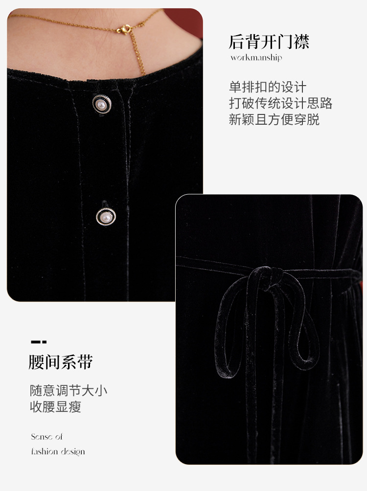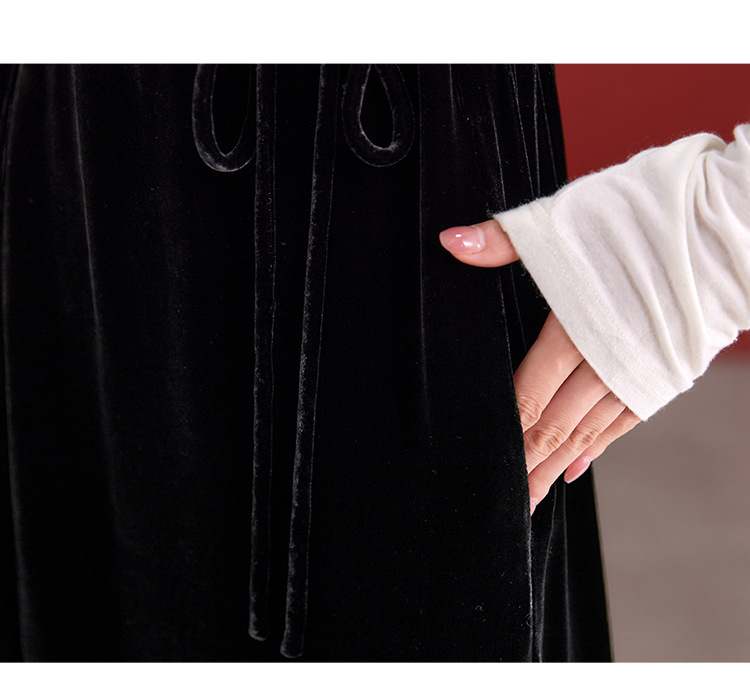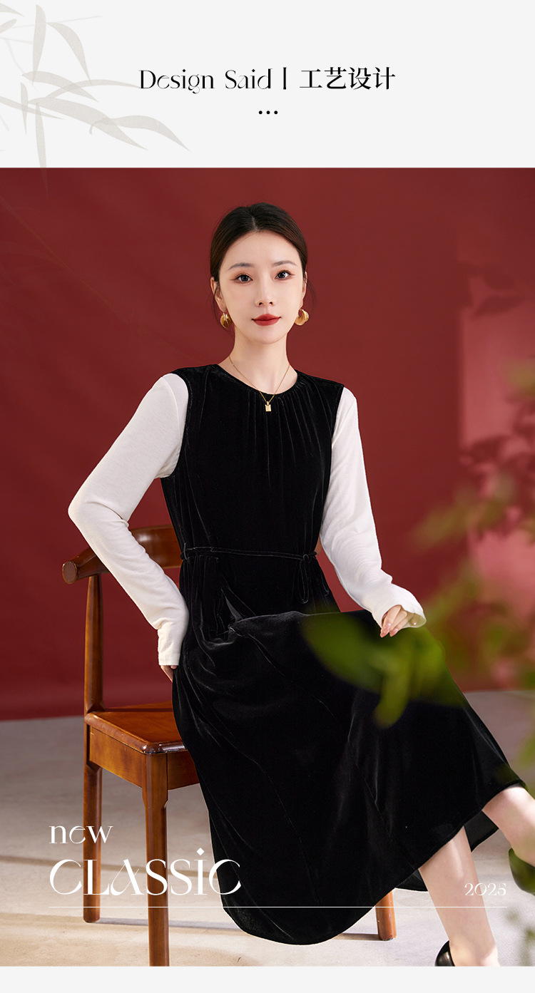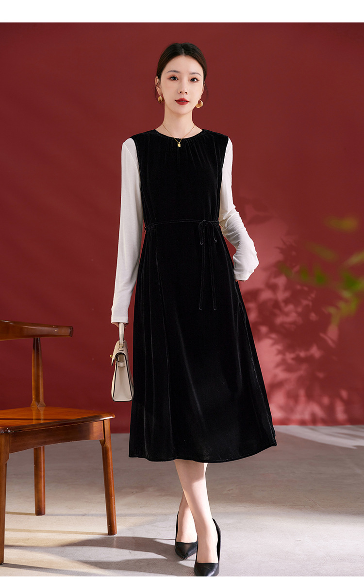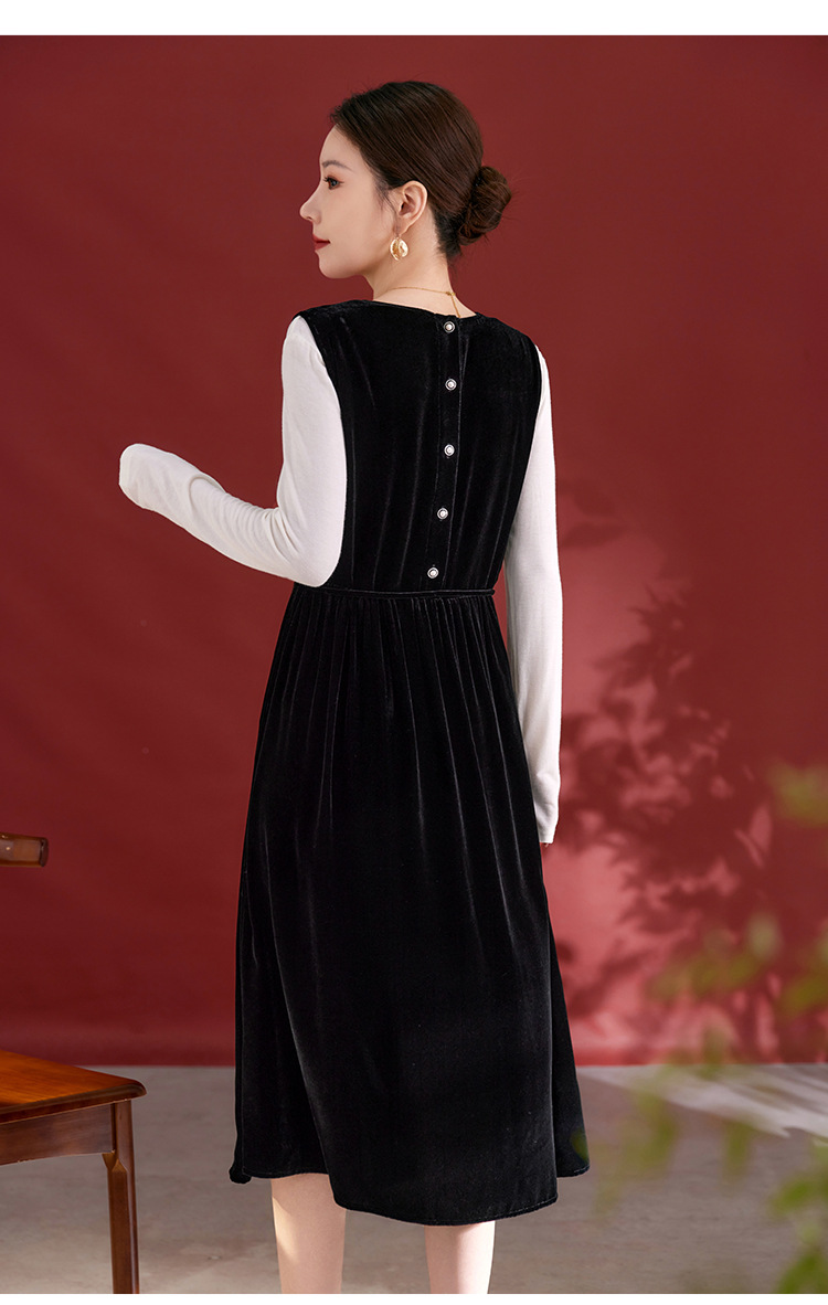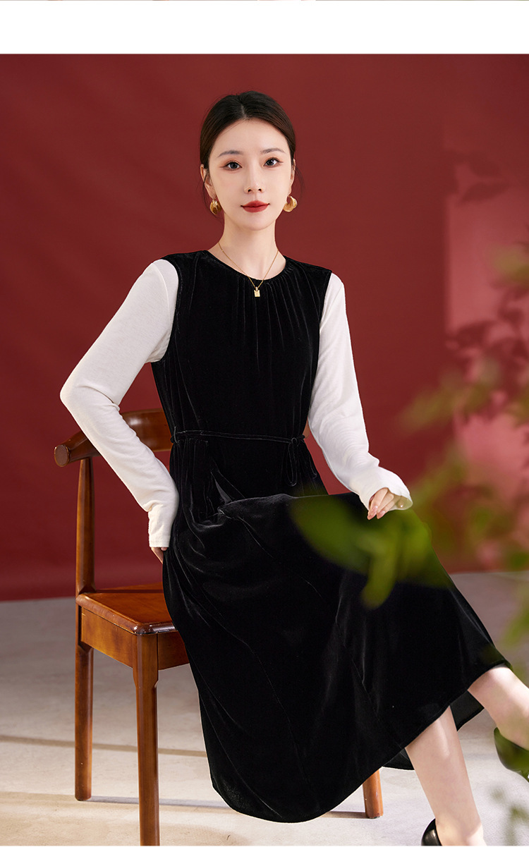 QS秋冬新款真丝丝绒背心连衣裙收腰气质日常通勤圆领中长款女1393