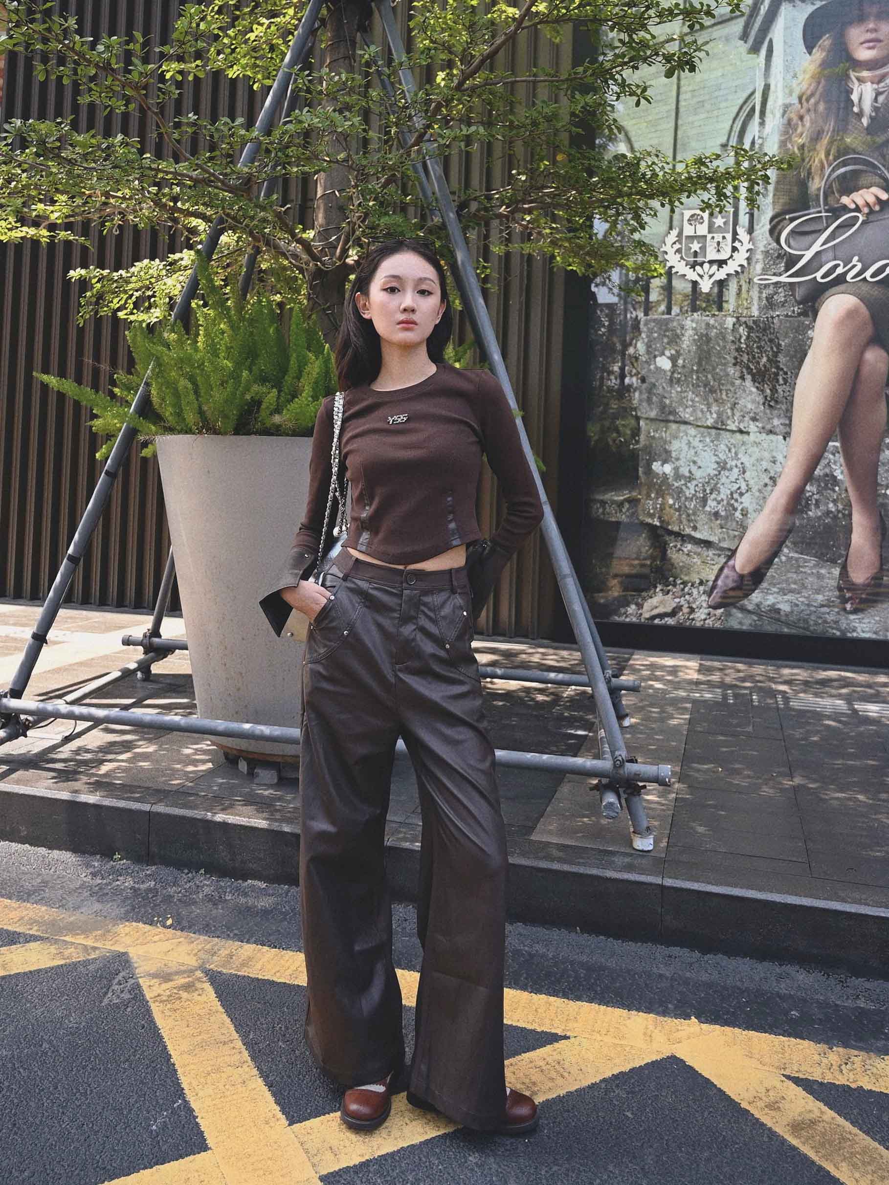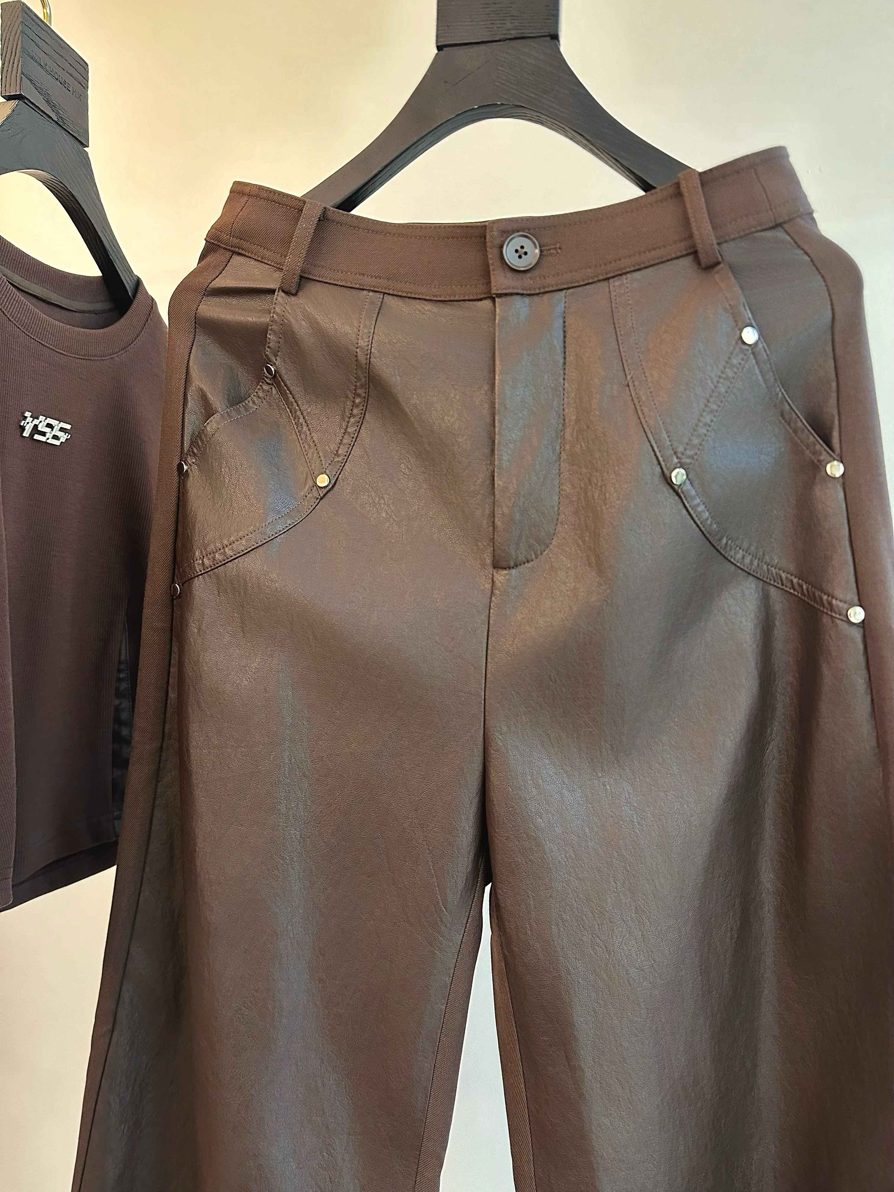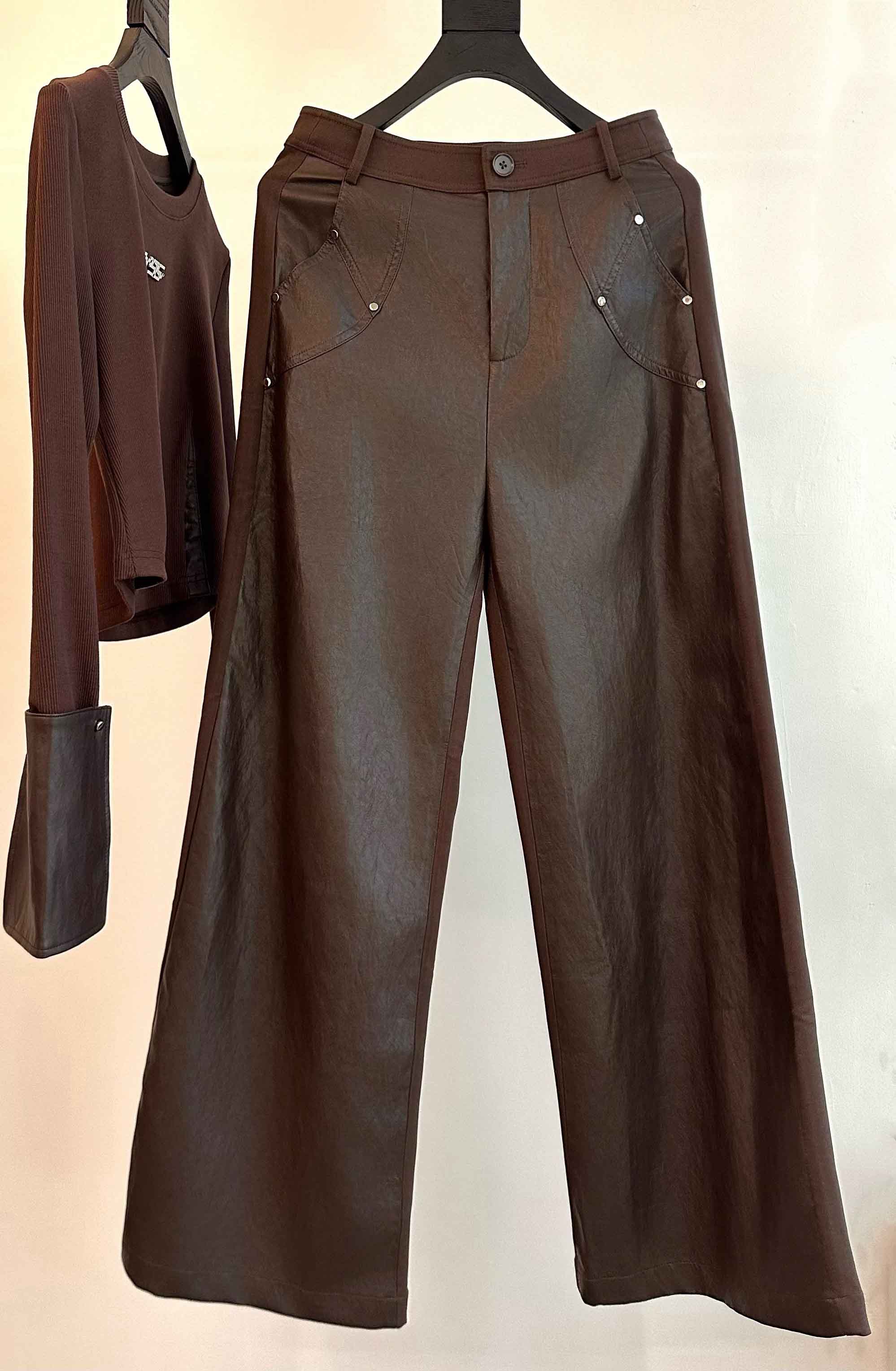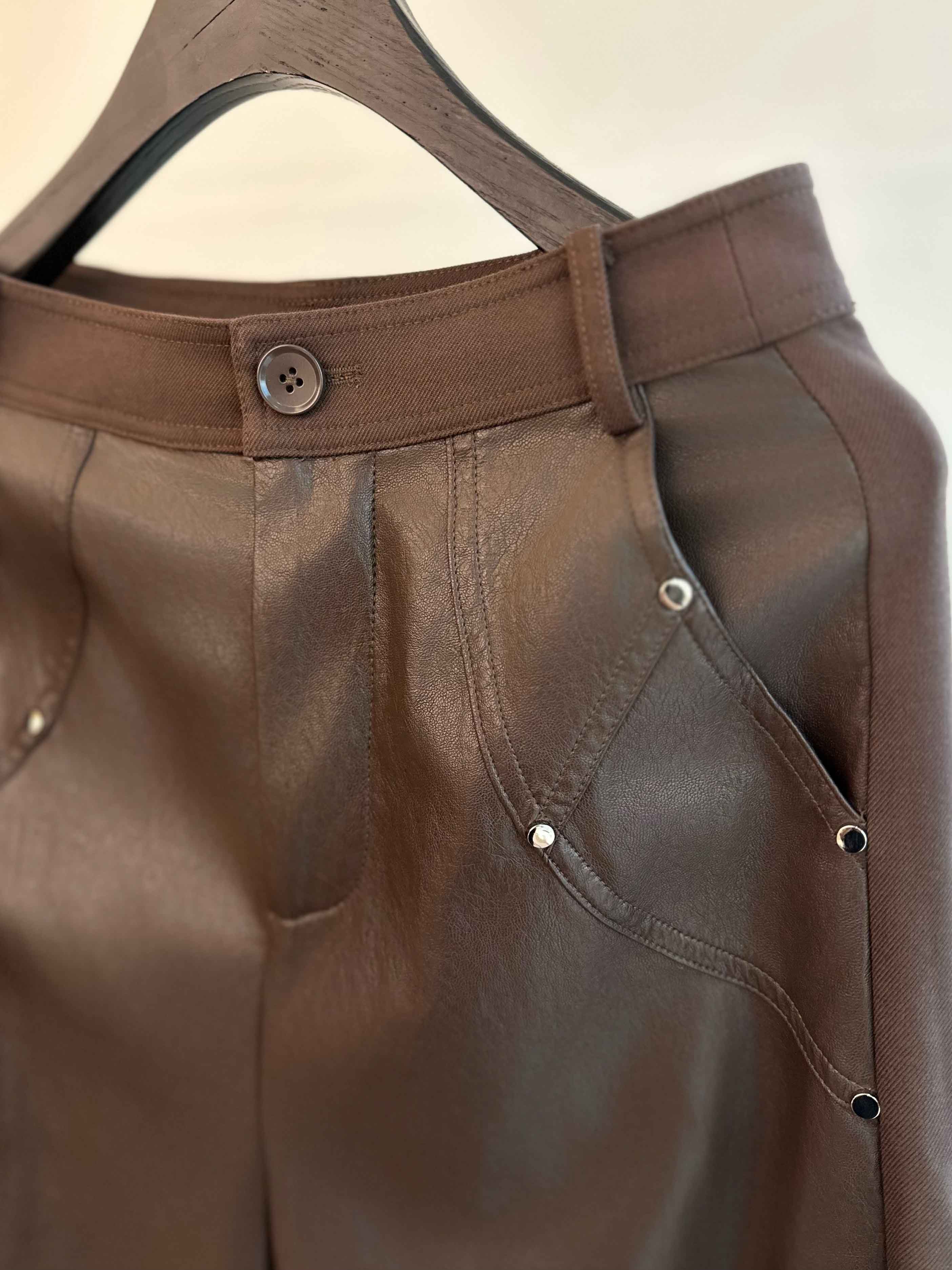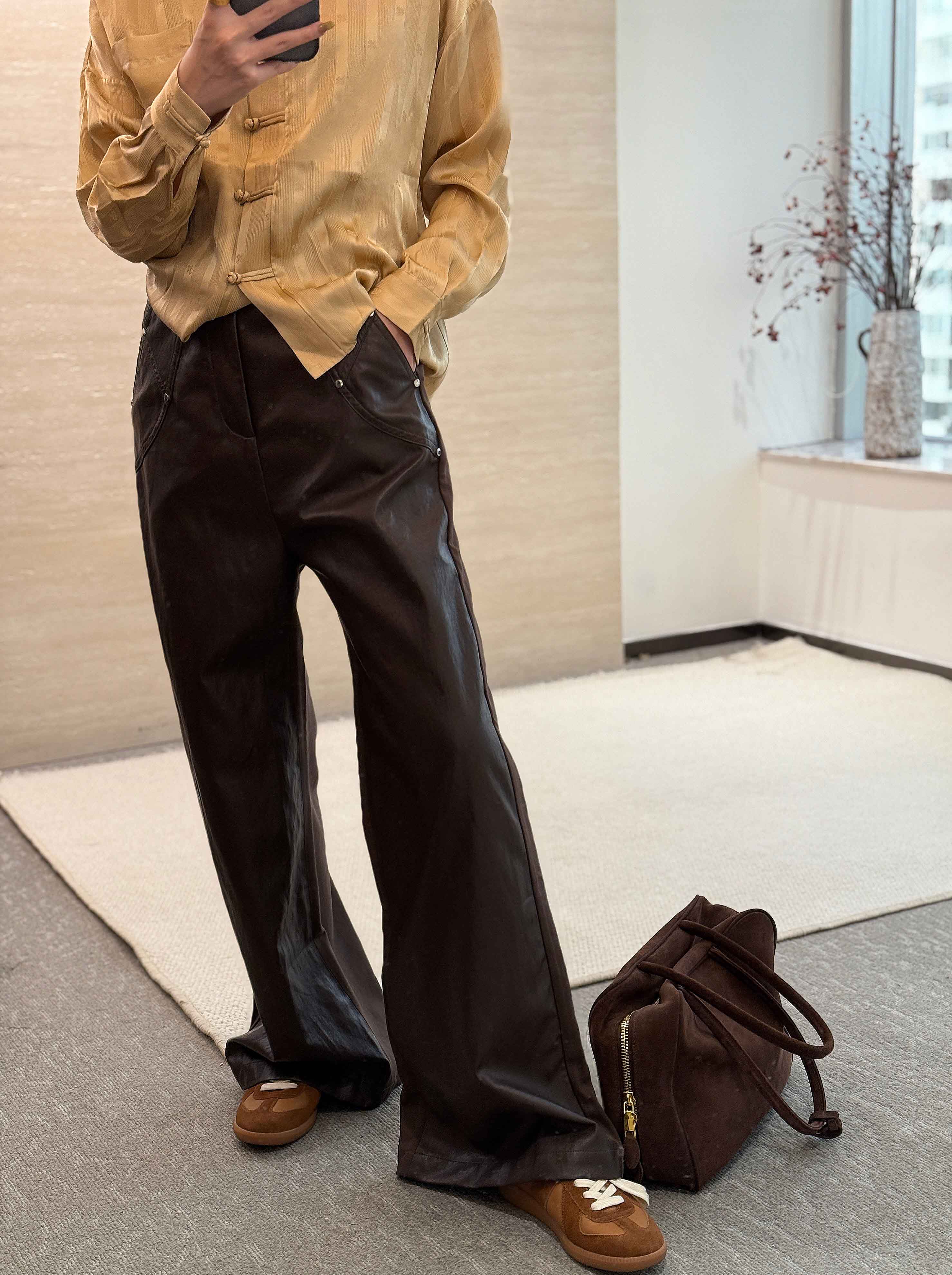 拼皮撞料阔腿皮裤 · 橡子灰棕——时髦显瘦还高级,照着穿就行