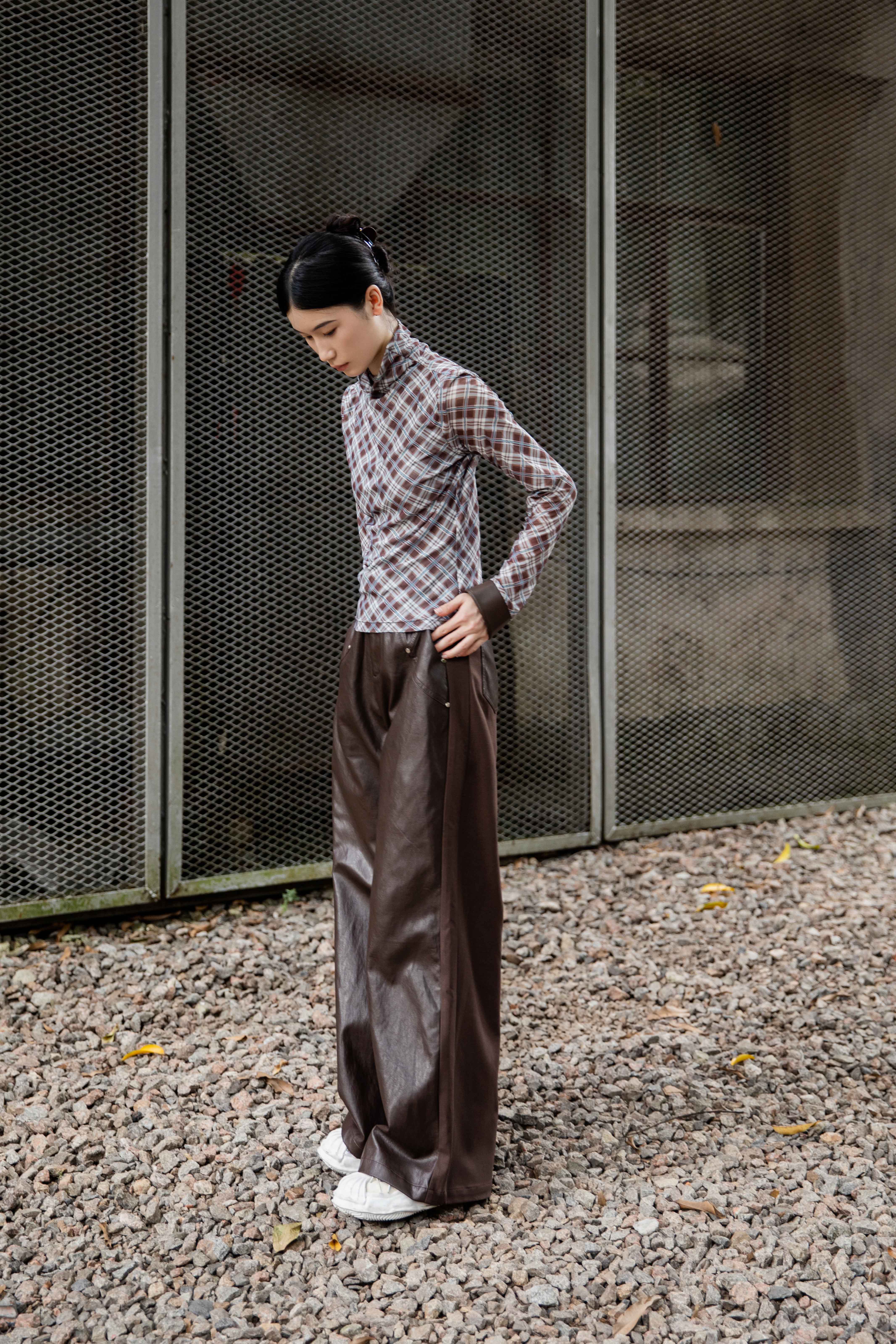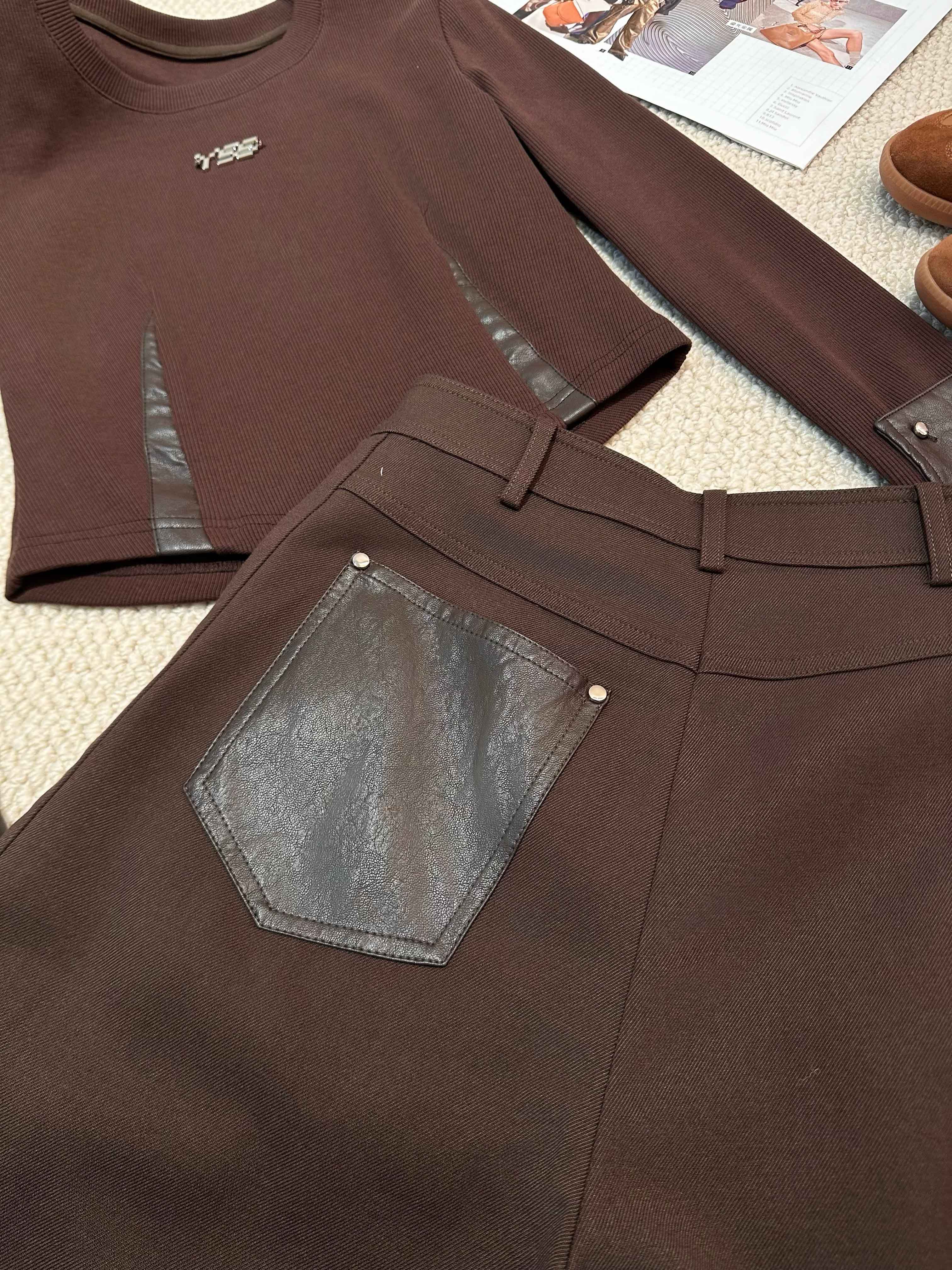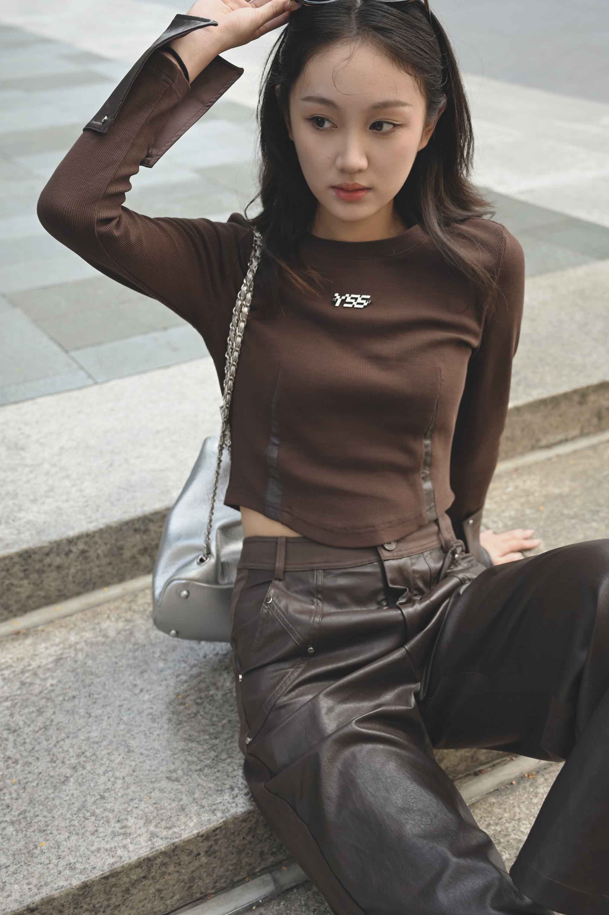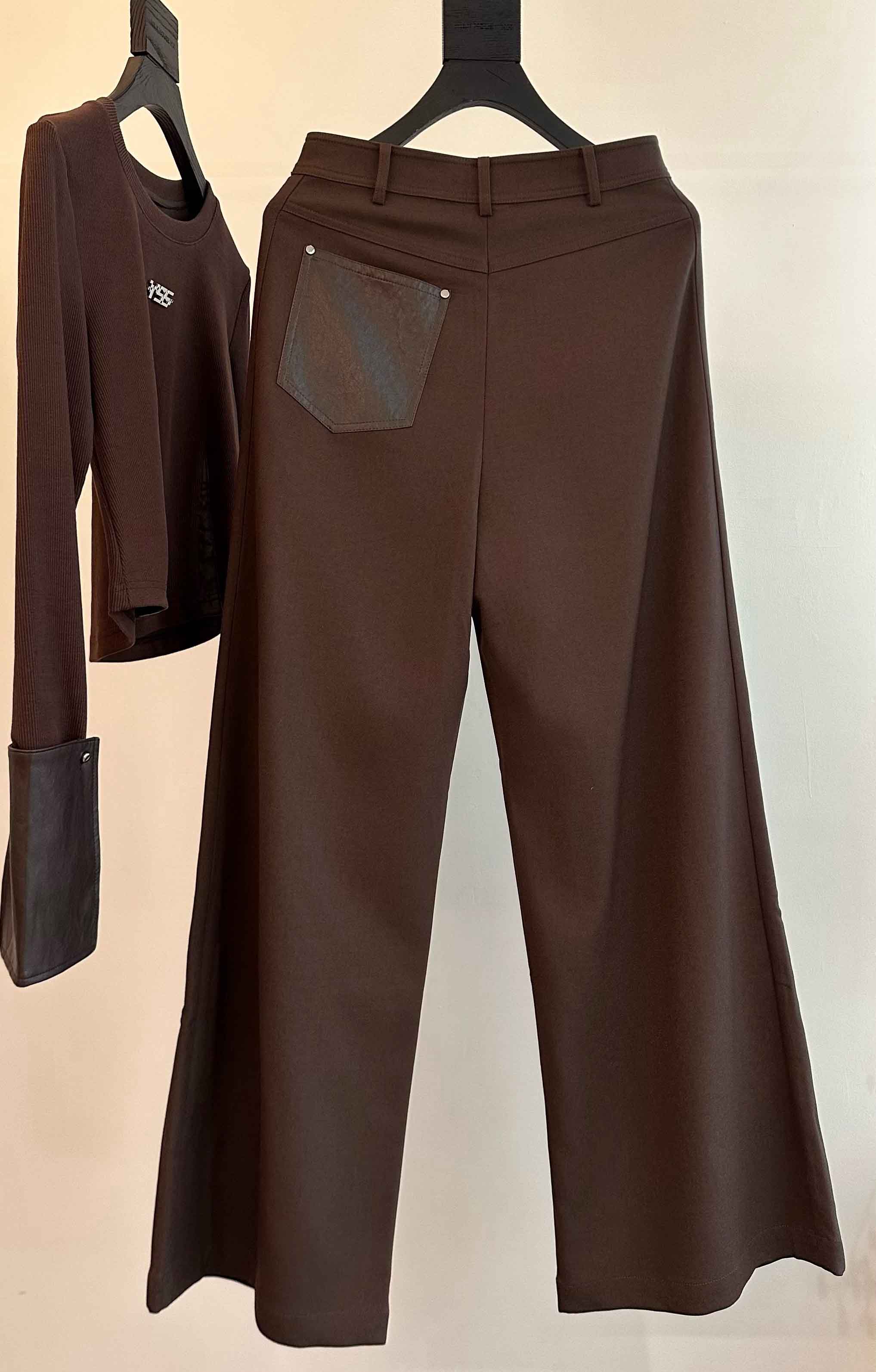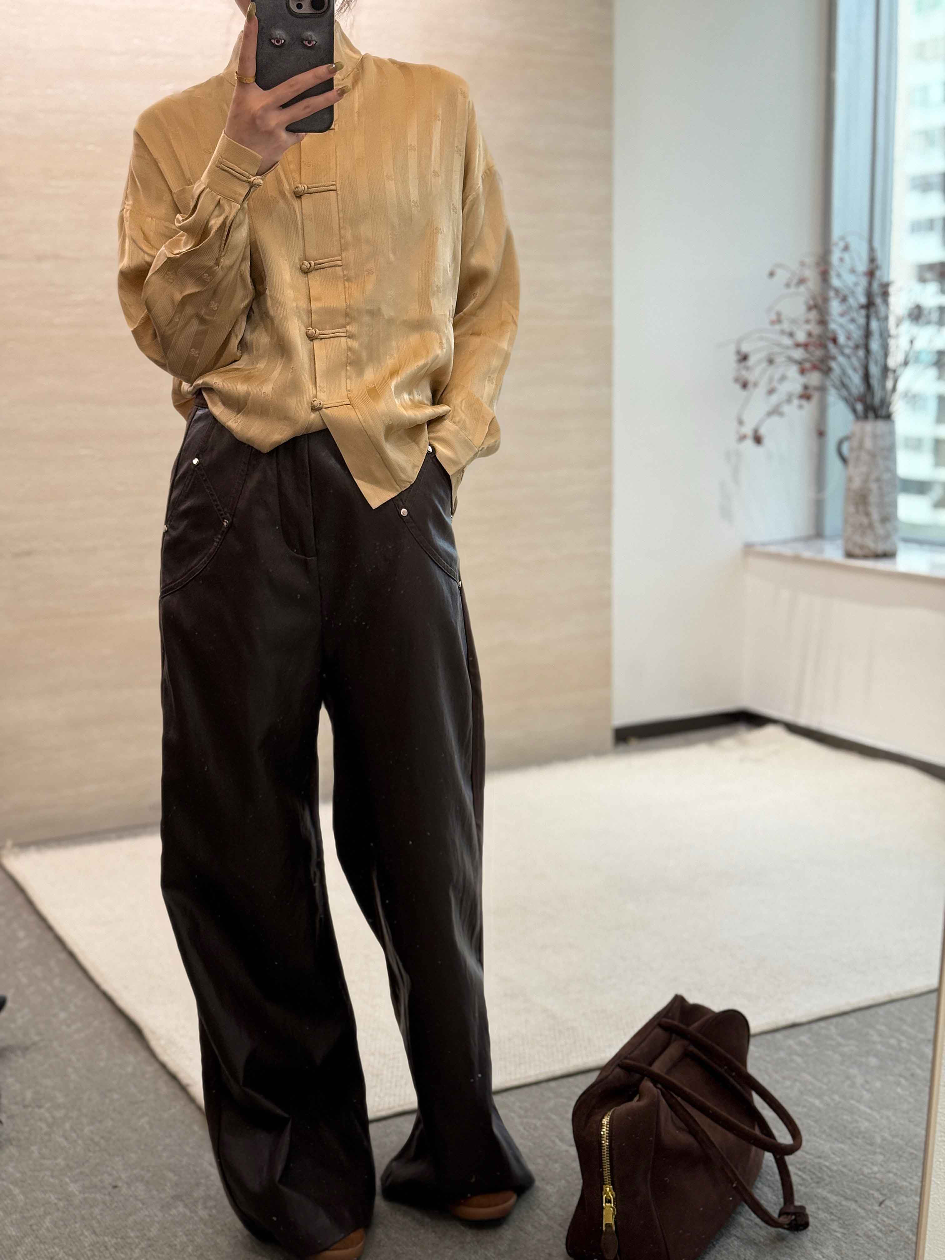 拼皮撞料阔腿皮裤 · 橡子灰棕——时髦显瘦还高级,照着穿就行