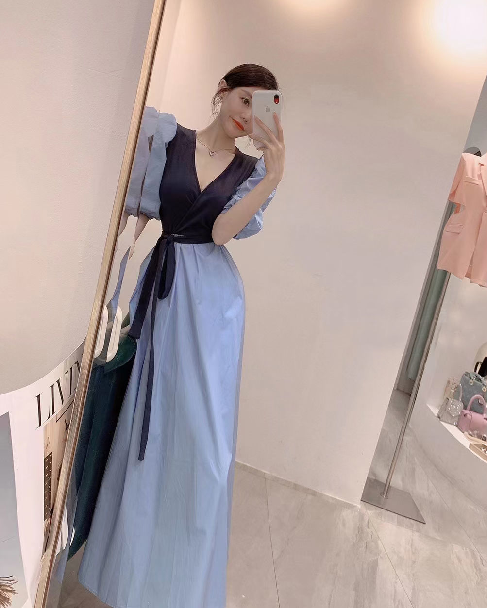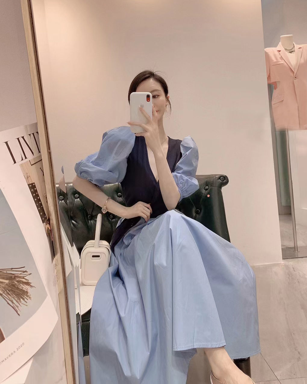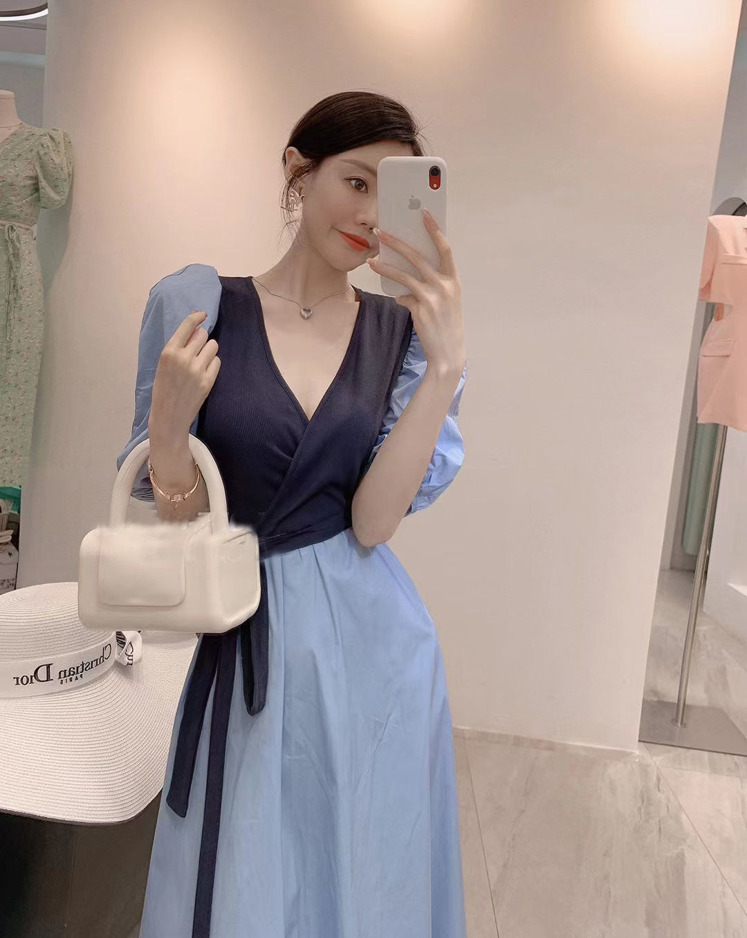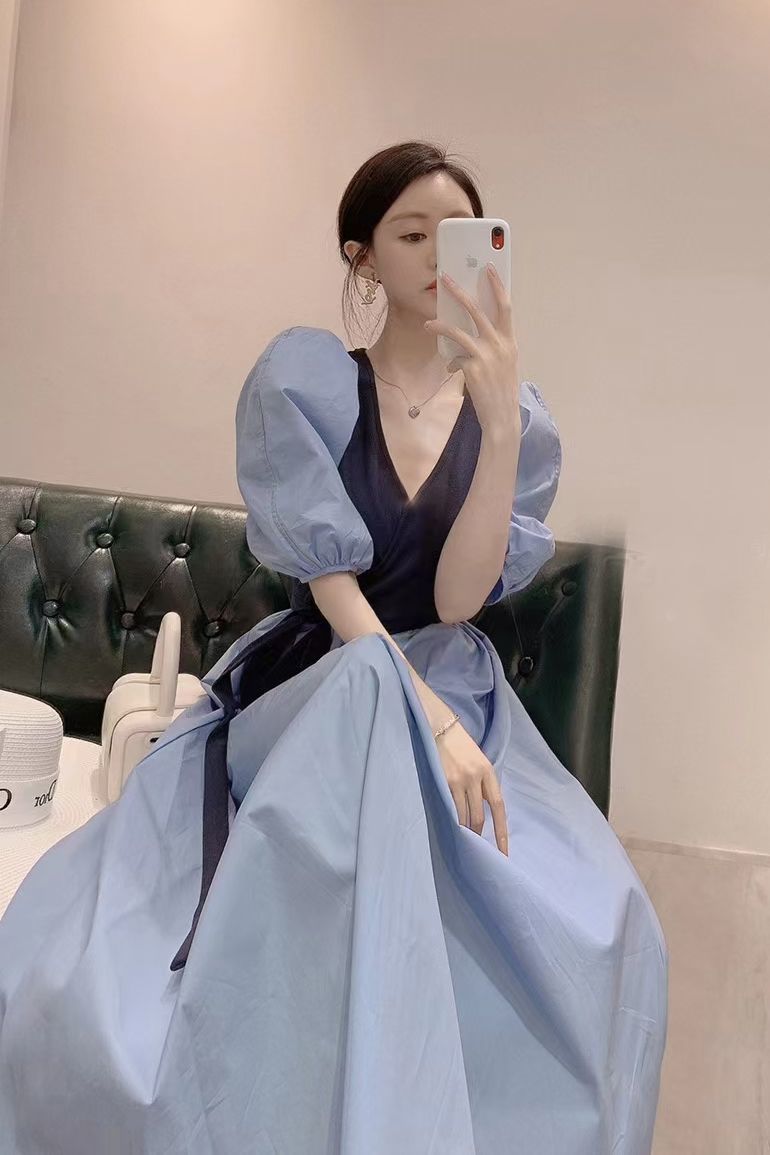 裙子女夏2022新款胖mm法式收腰显瘦气质女神范撞色超仙初恋连衣裙