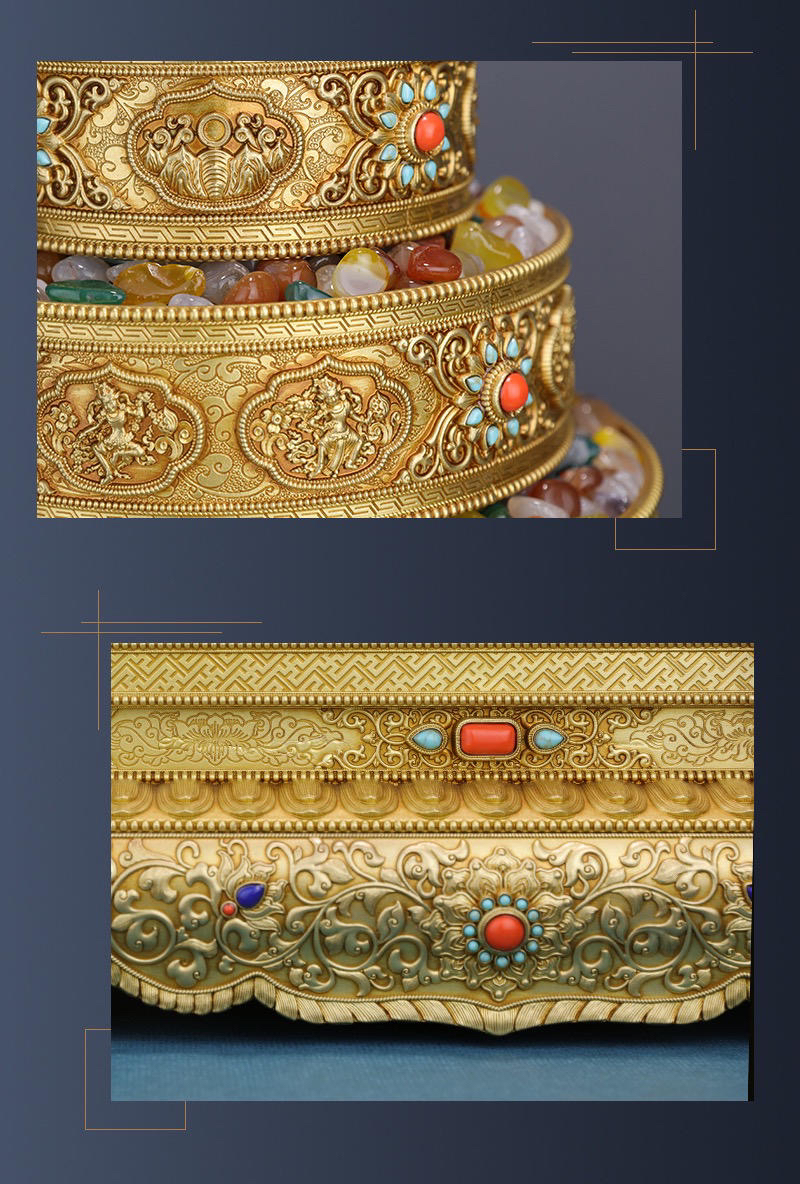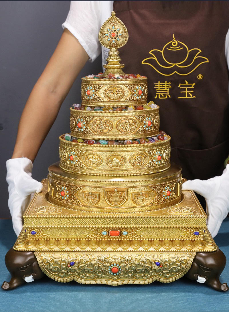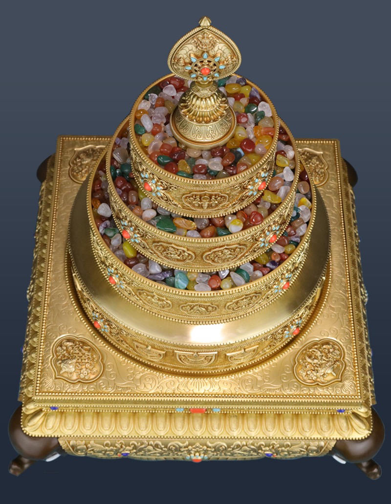 曼扎盘曼茶罗慧宝纯铜37堆供修西藏佛堂摆件八吉祥曼达盘托盘全套
