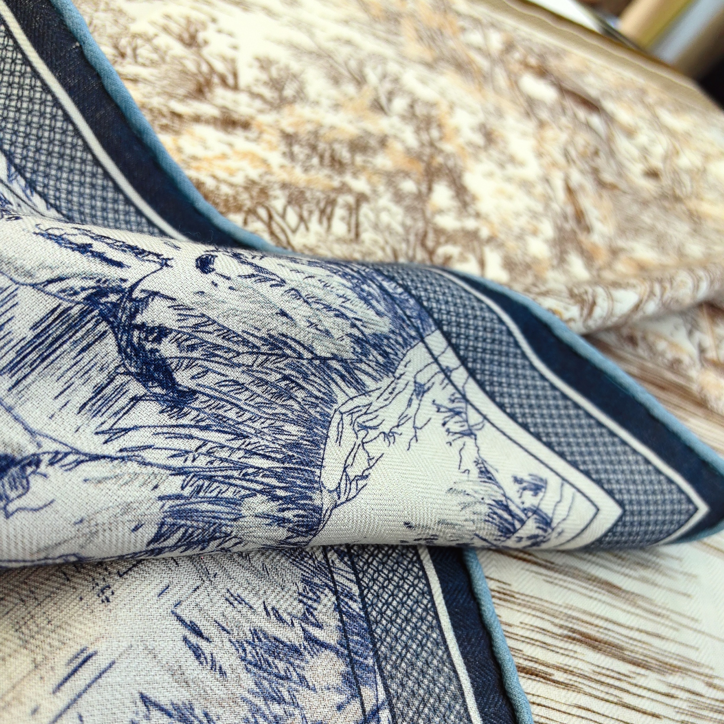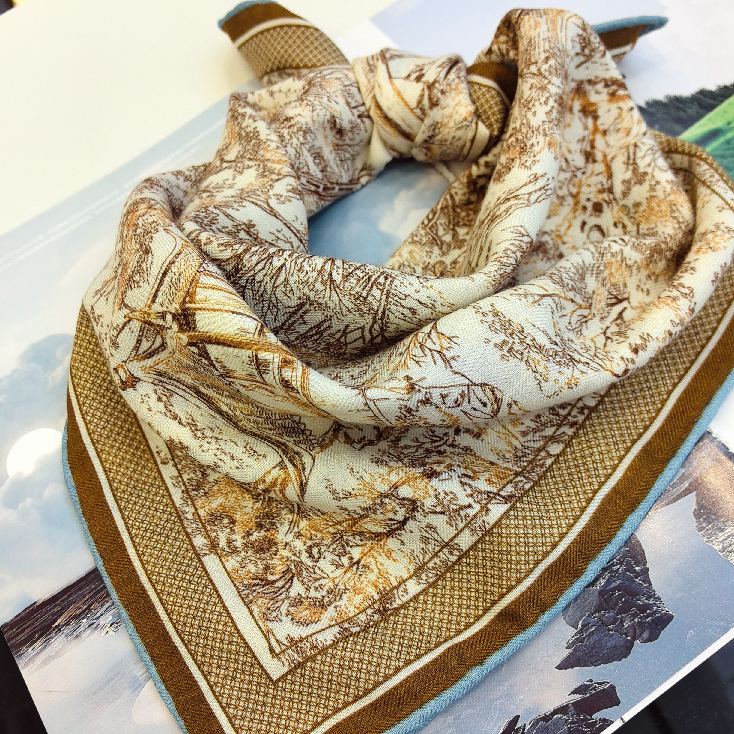 丝巾采用丝羊毛面料,融合了羊毛的保暖和真丝的丝滑质感