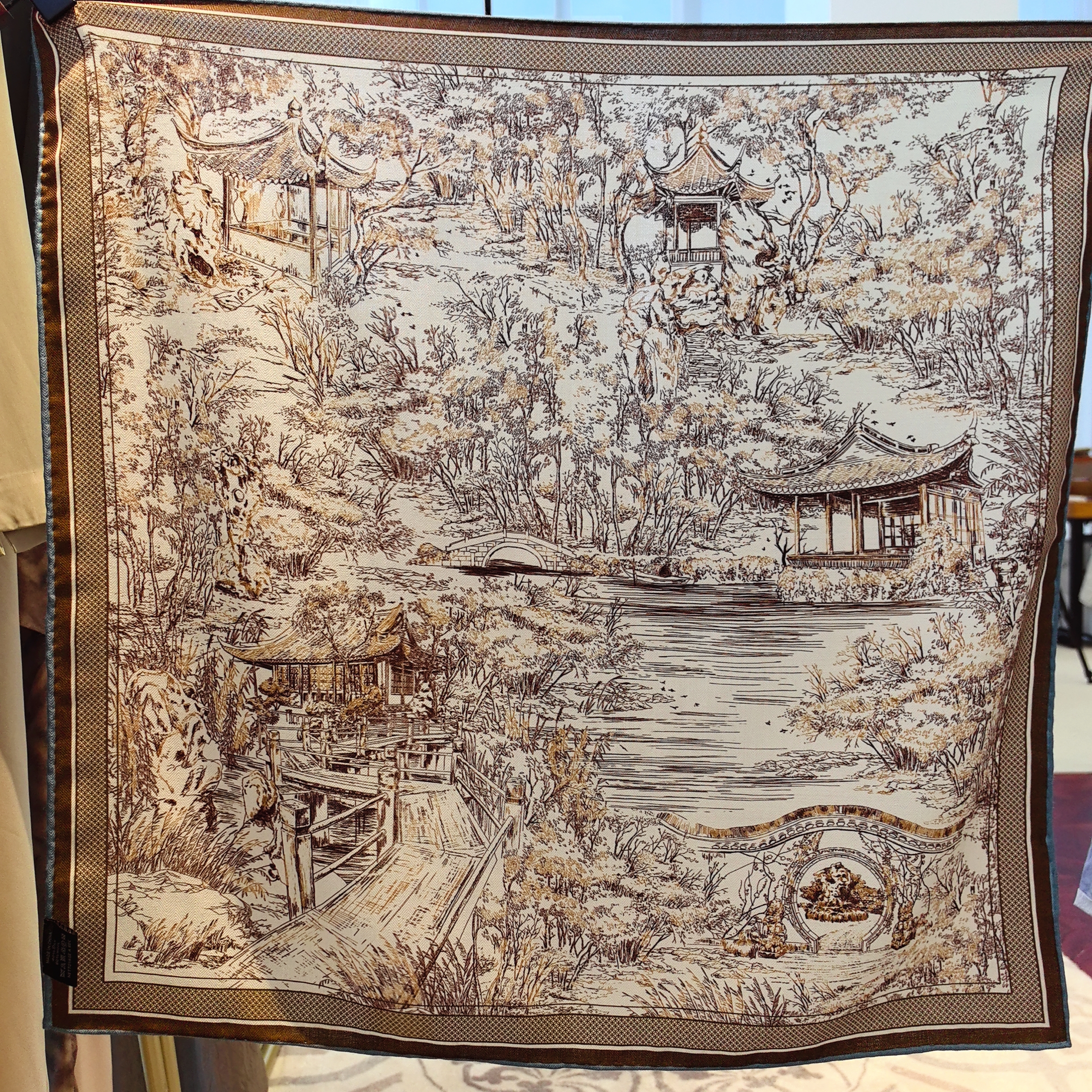【甄珠贝·国风系列】70*70cm诗韵园林丝巾和天然淡水胸针丝巾礼盒套装【适合送外宾】