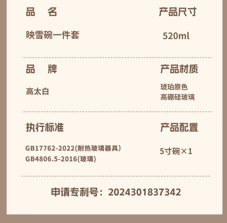 【积分兑换】高太白高硼硅5寸玻璃碗 520ML*1