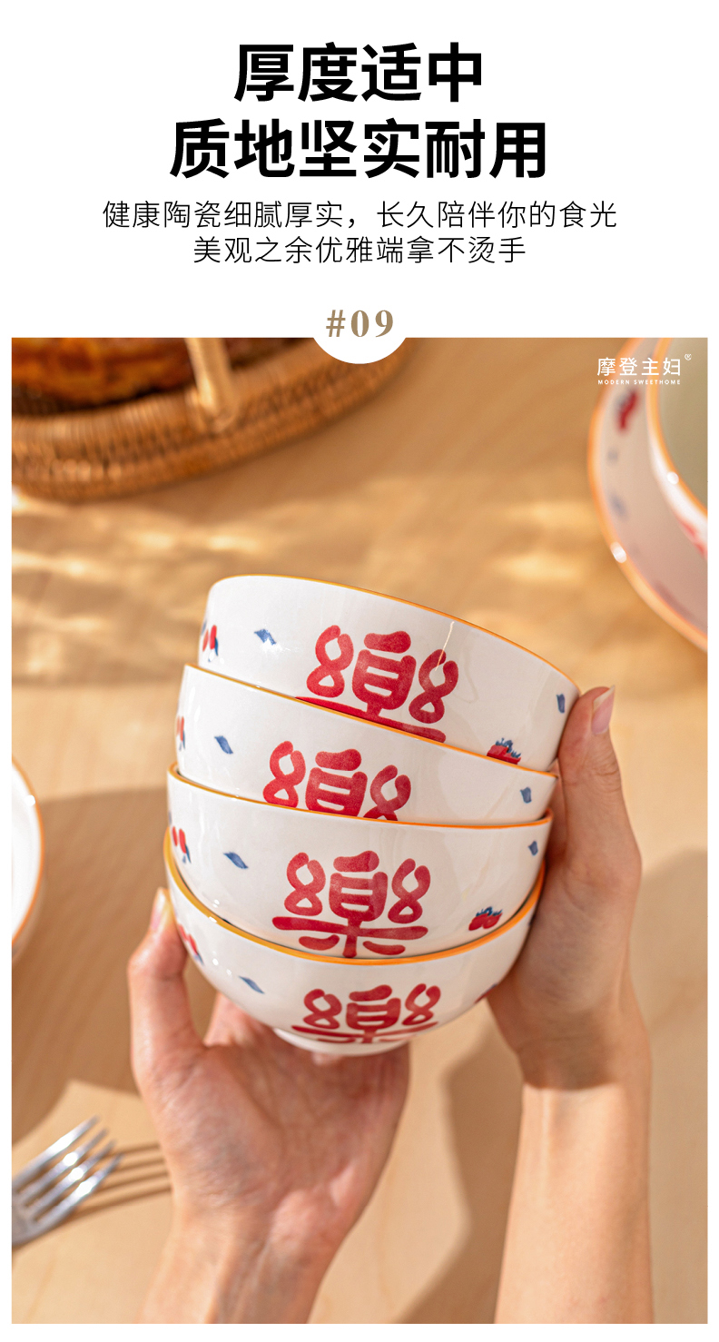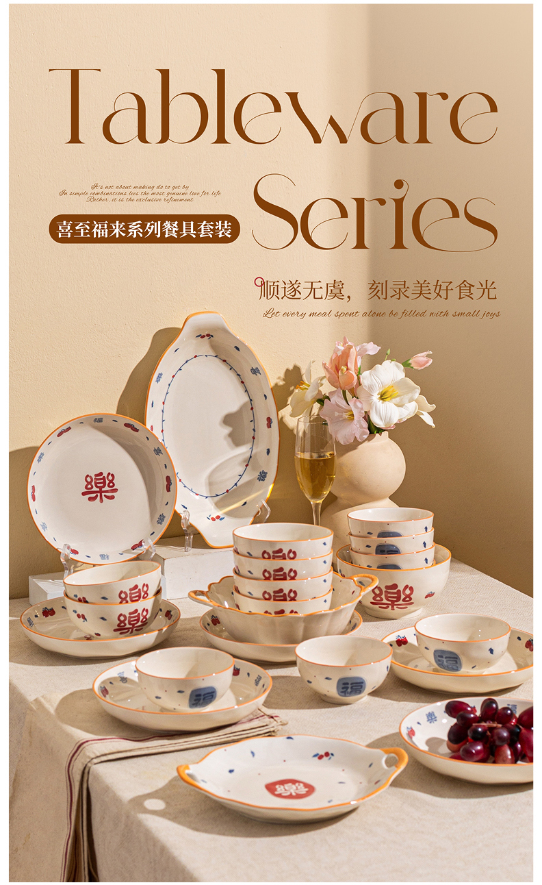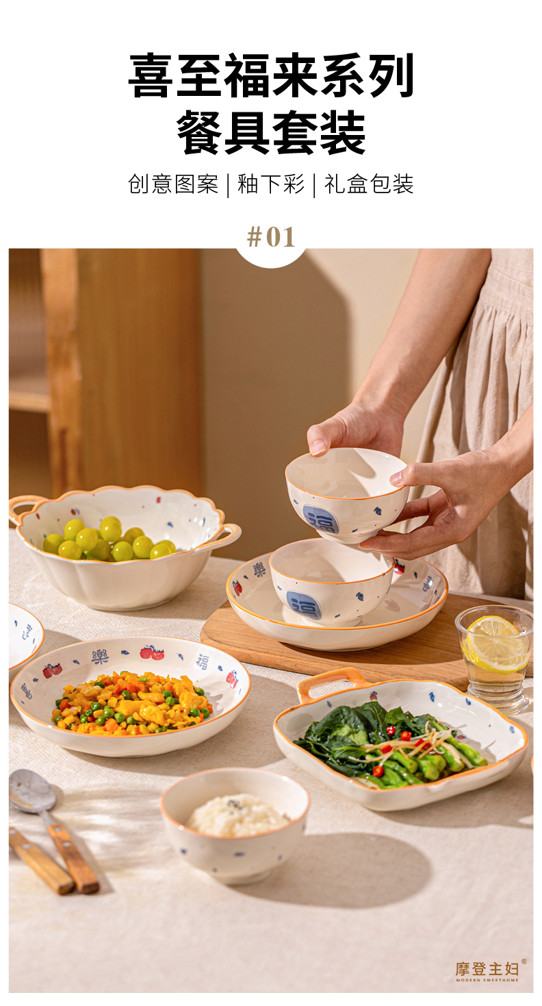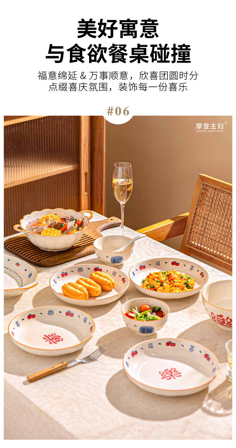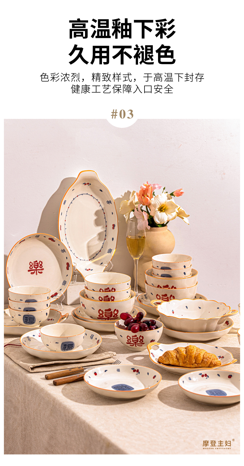 摩登主妇喜至福来釉下彩餐具高颜值新婚乔迁礼物碗碟家用碗盘套装