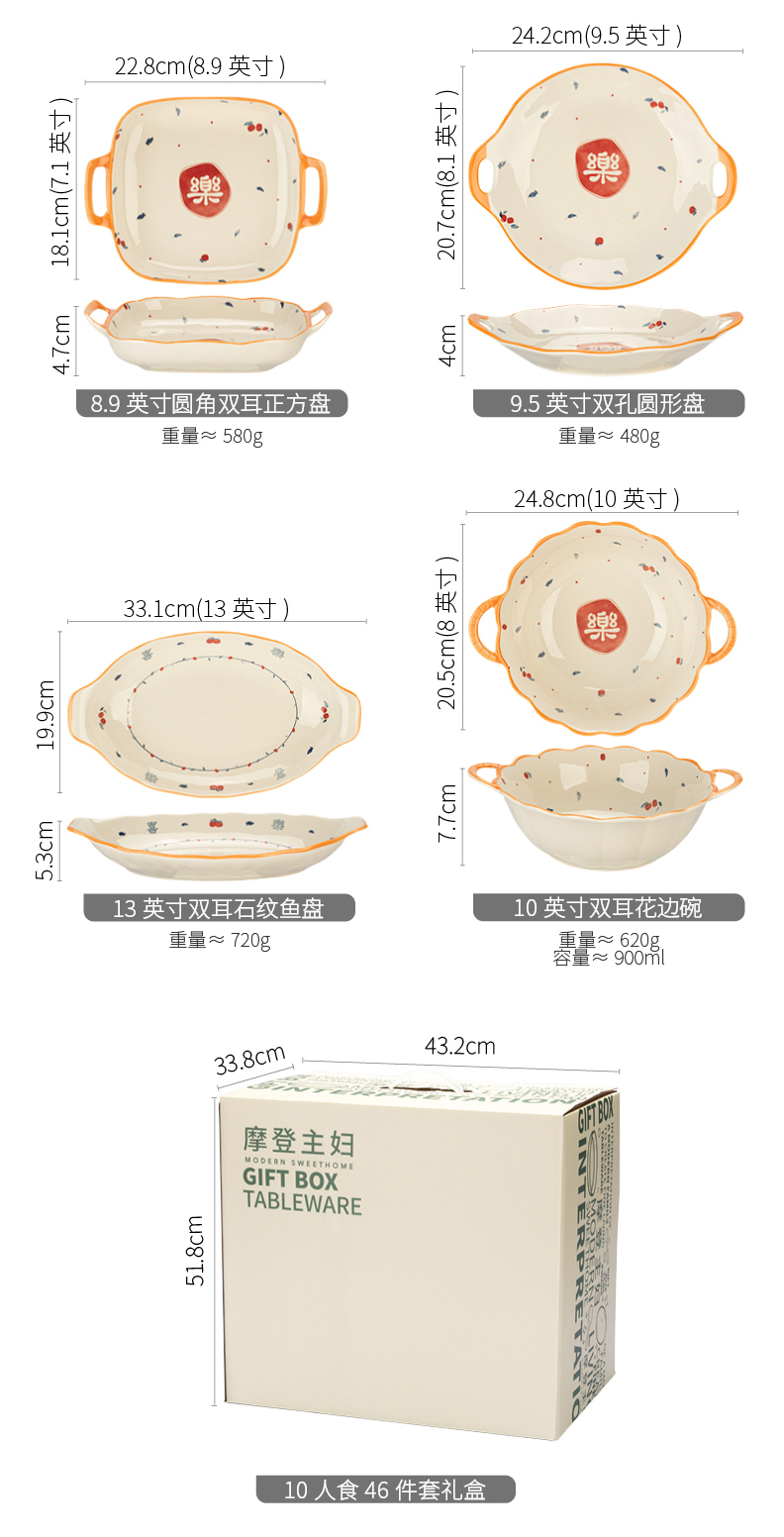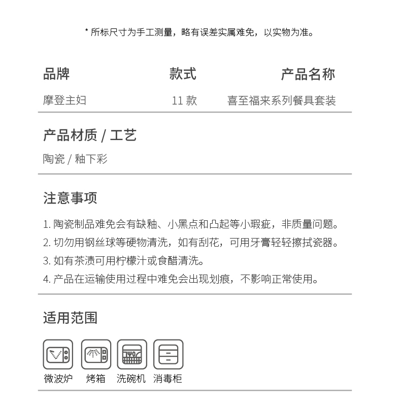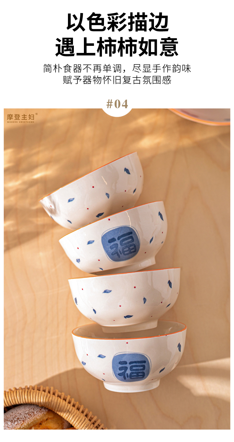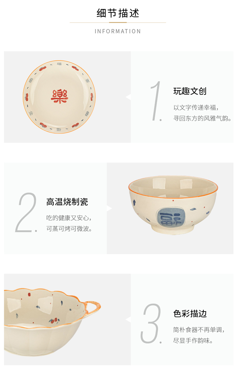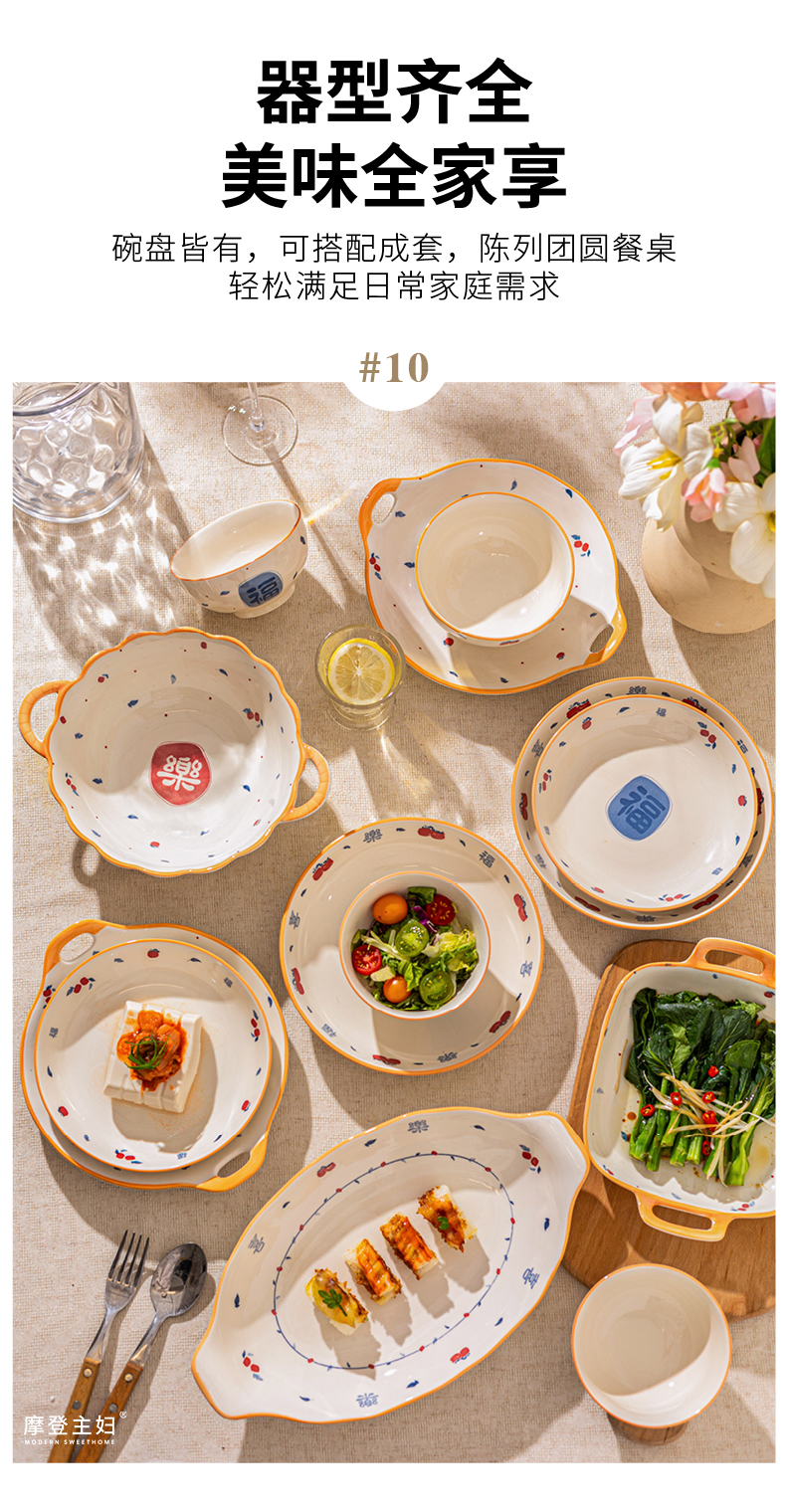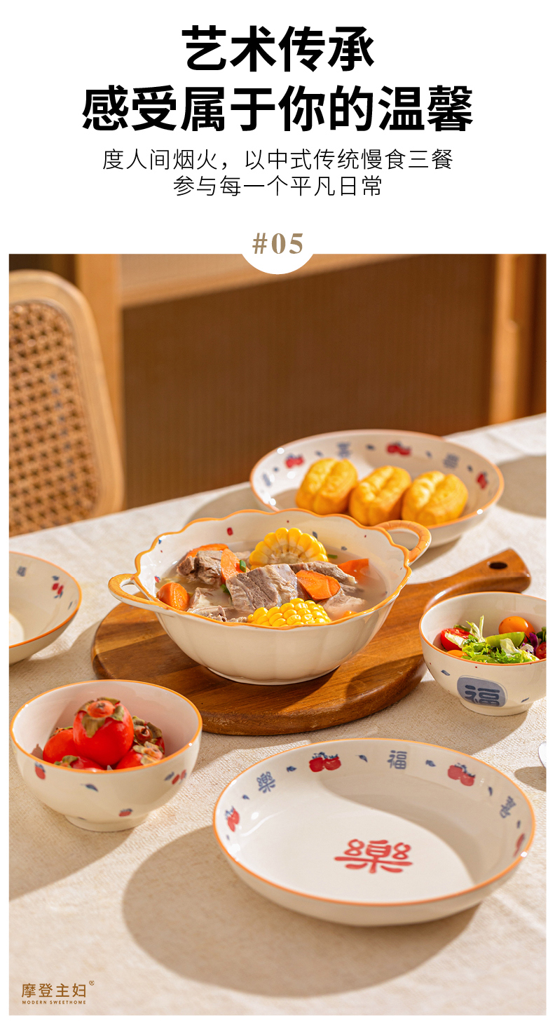 摩登主妇喜至福来釉下彩餐具高颜值新婚乔迁礼物碗碟家用碗盘套装