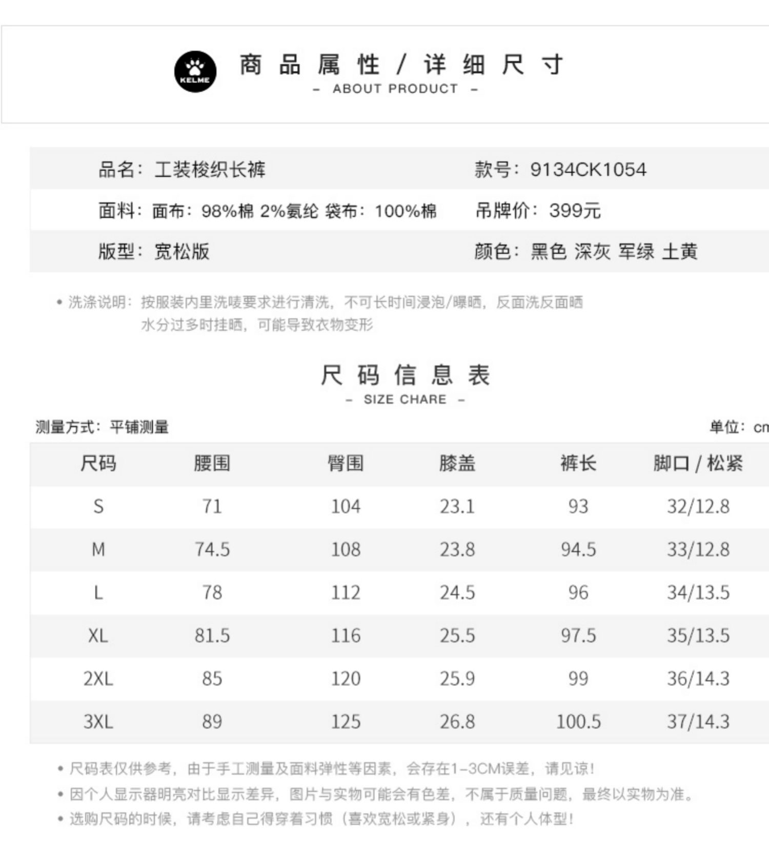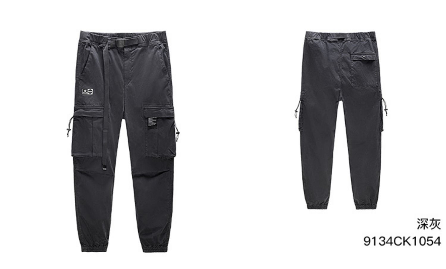 卡尔美梭织工装裤男2022早春秋款宽松束脚百搭黑色休闲裤子