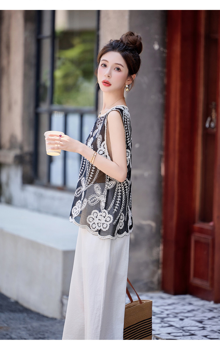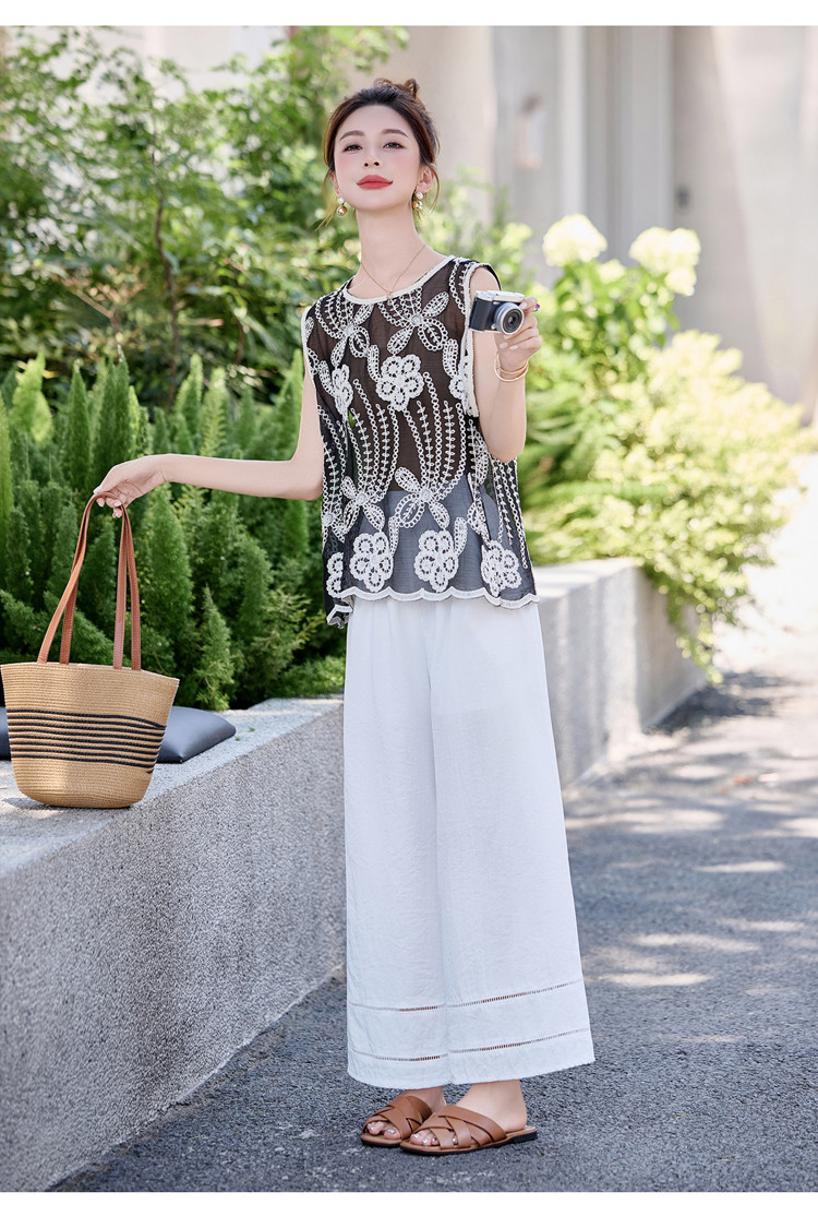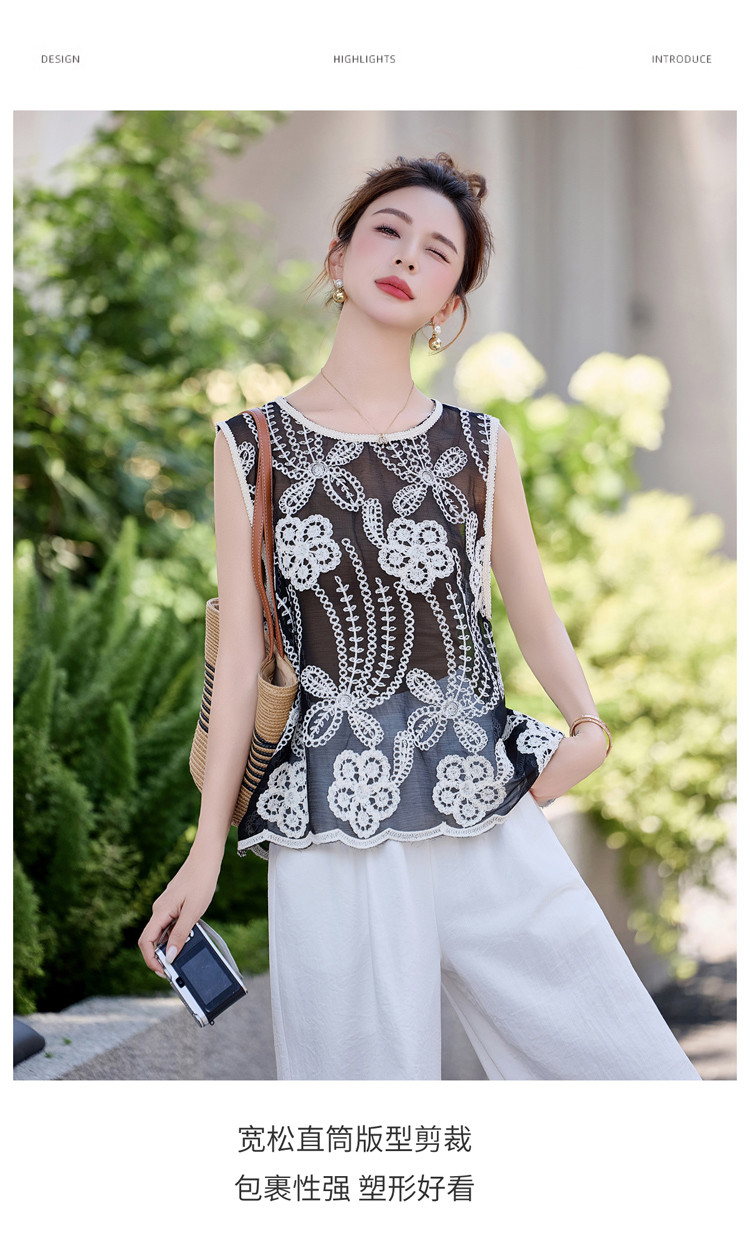 【预售3天】PY 时尚气质钩花宽松两件套(上衣透) &212517