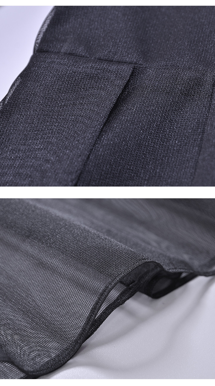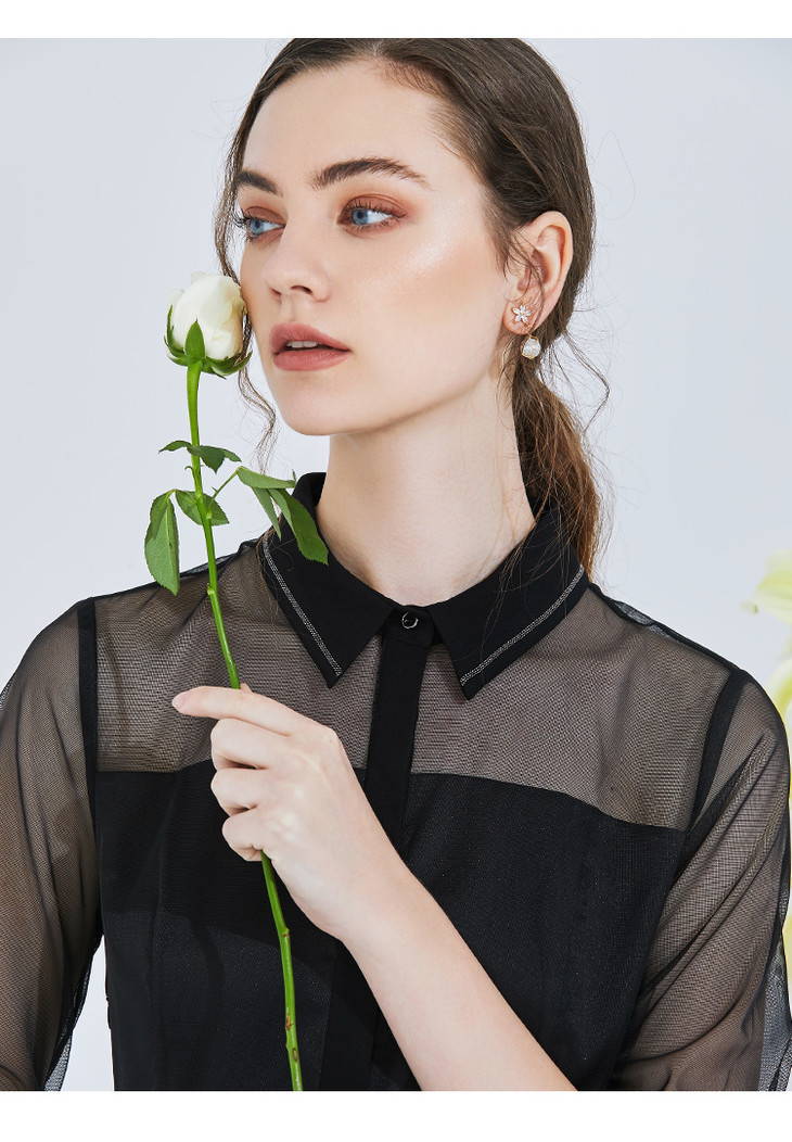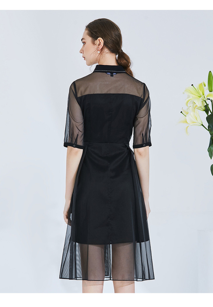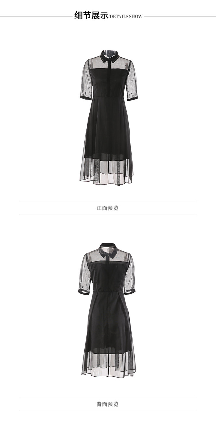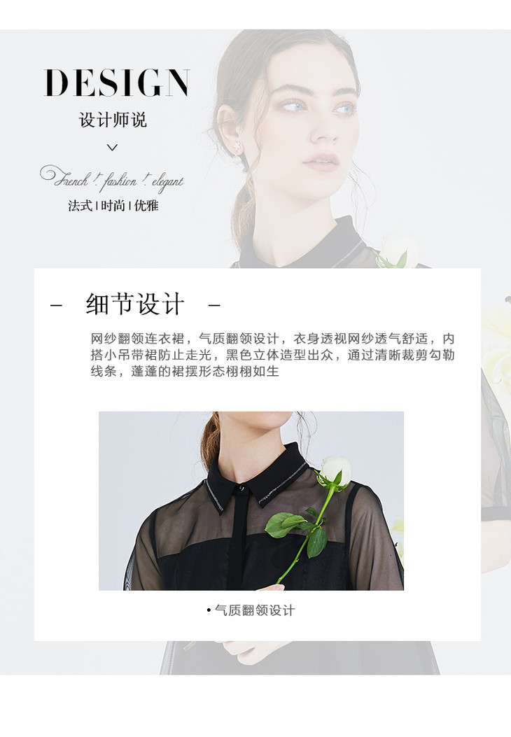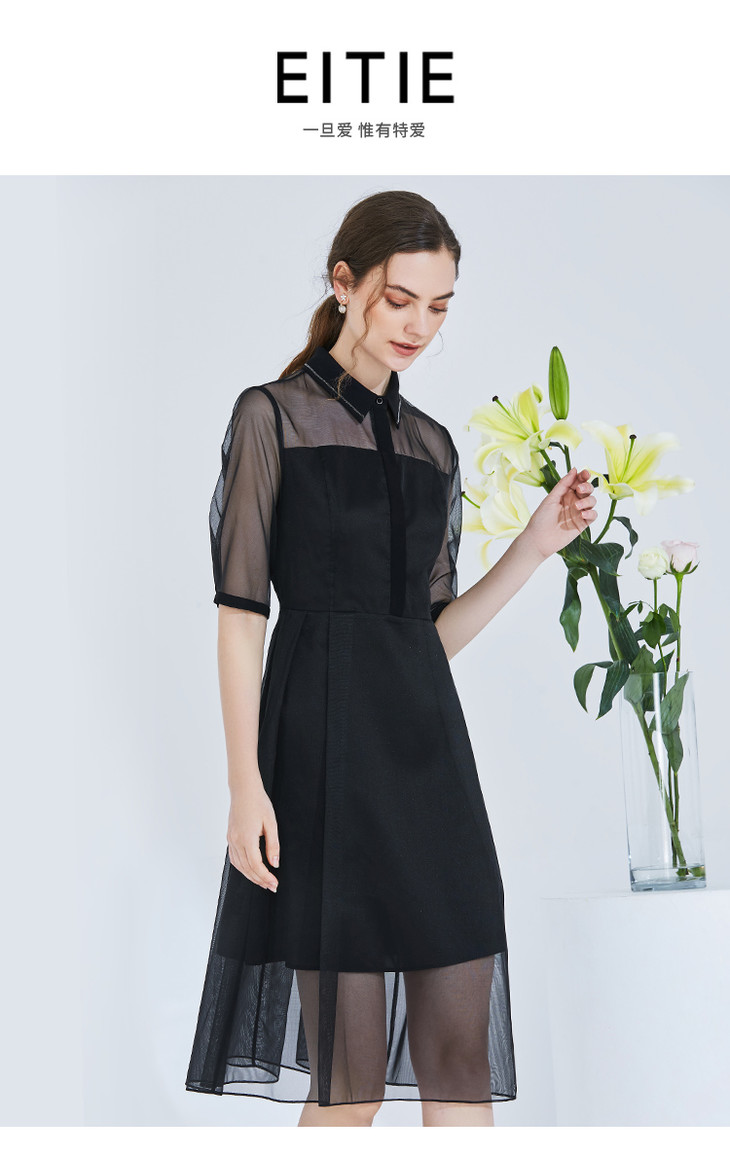 EITIE爱特爱夏季新网纱透视气质翻领很仙的礼服小黑连衣裙女5907640