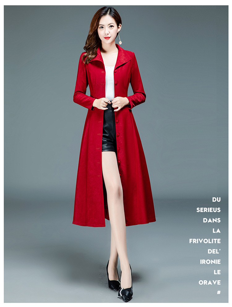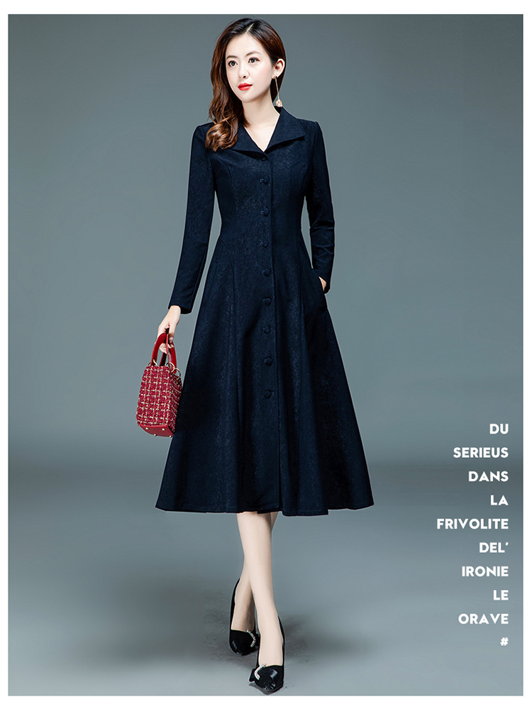 YSME-91336A-K新款流行修身收腰显瘦气质外套长款过膝大衣