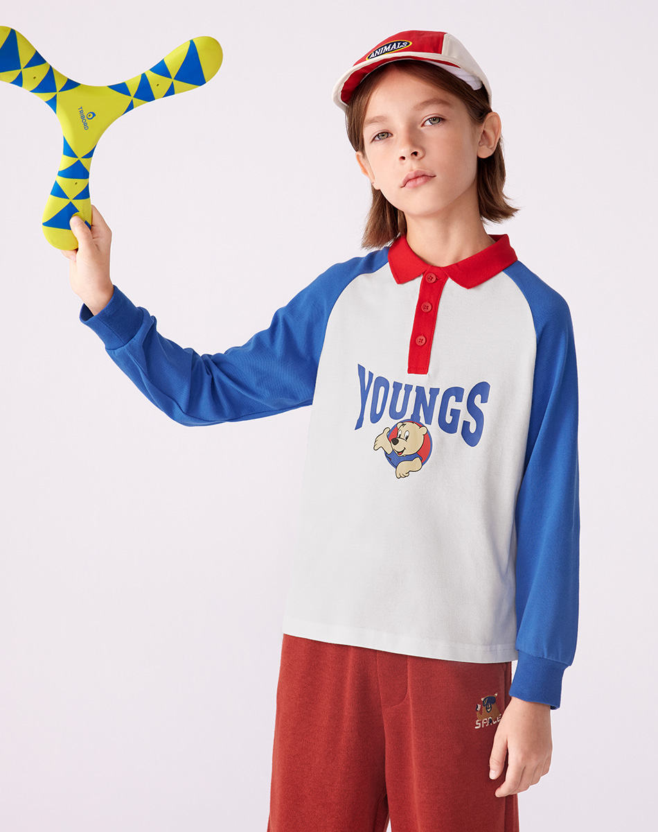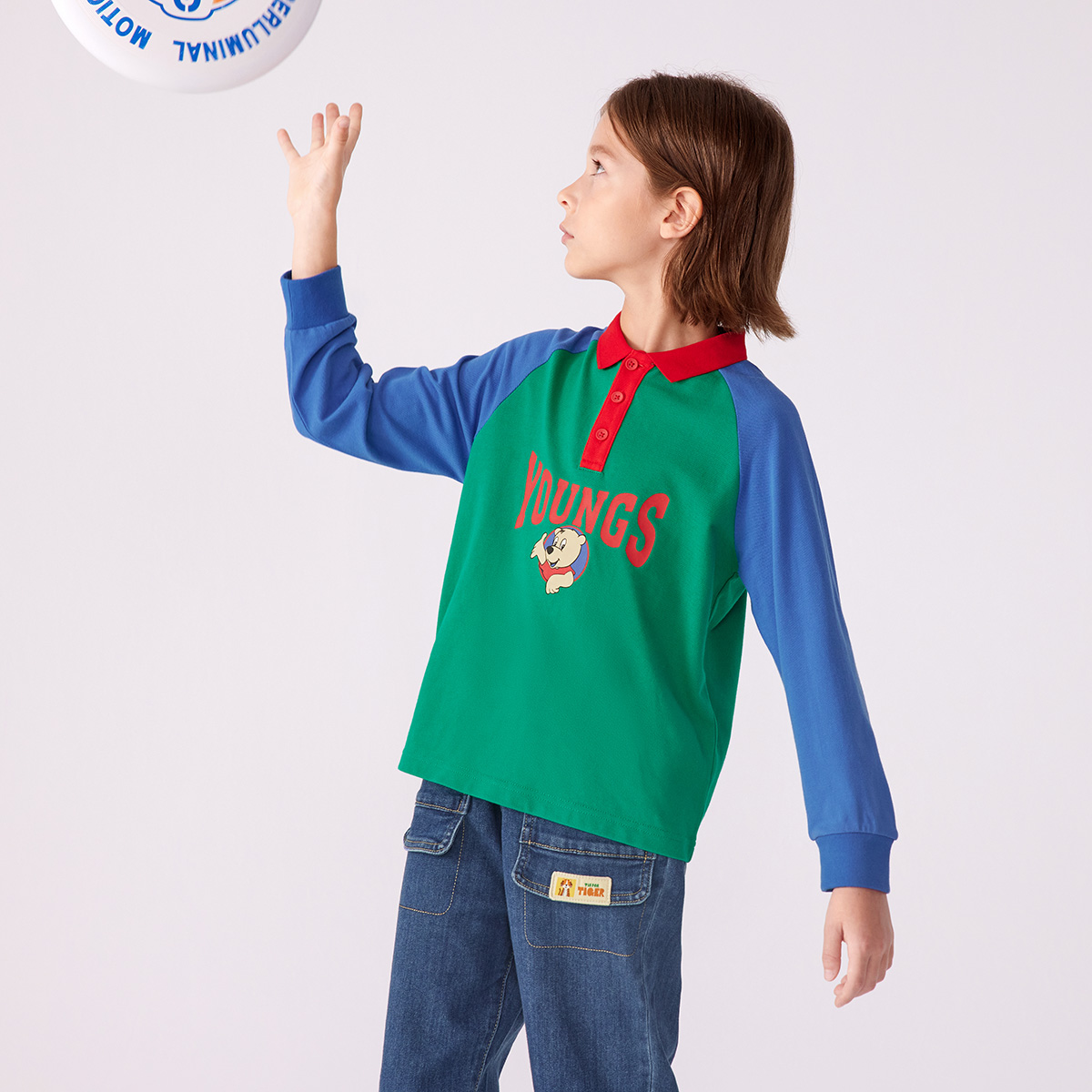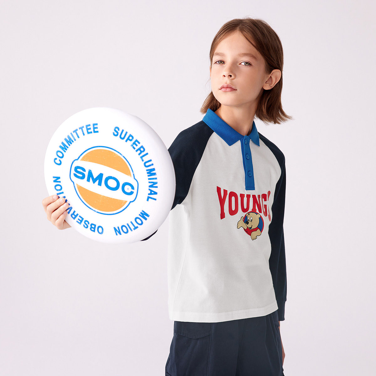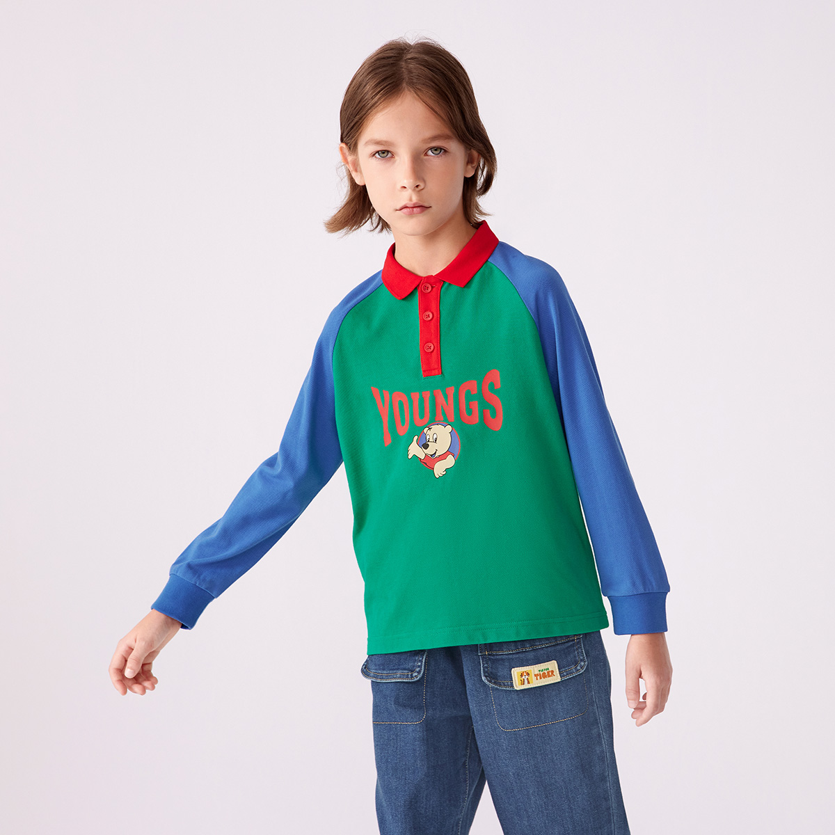 【秒2】【MQD】男童秋款卡通小熊POLO衫时尚长袖上衣翻领中大童92W0403