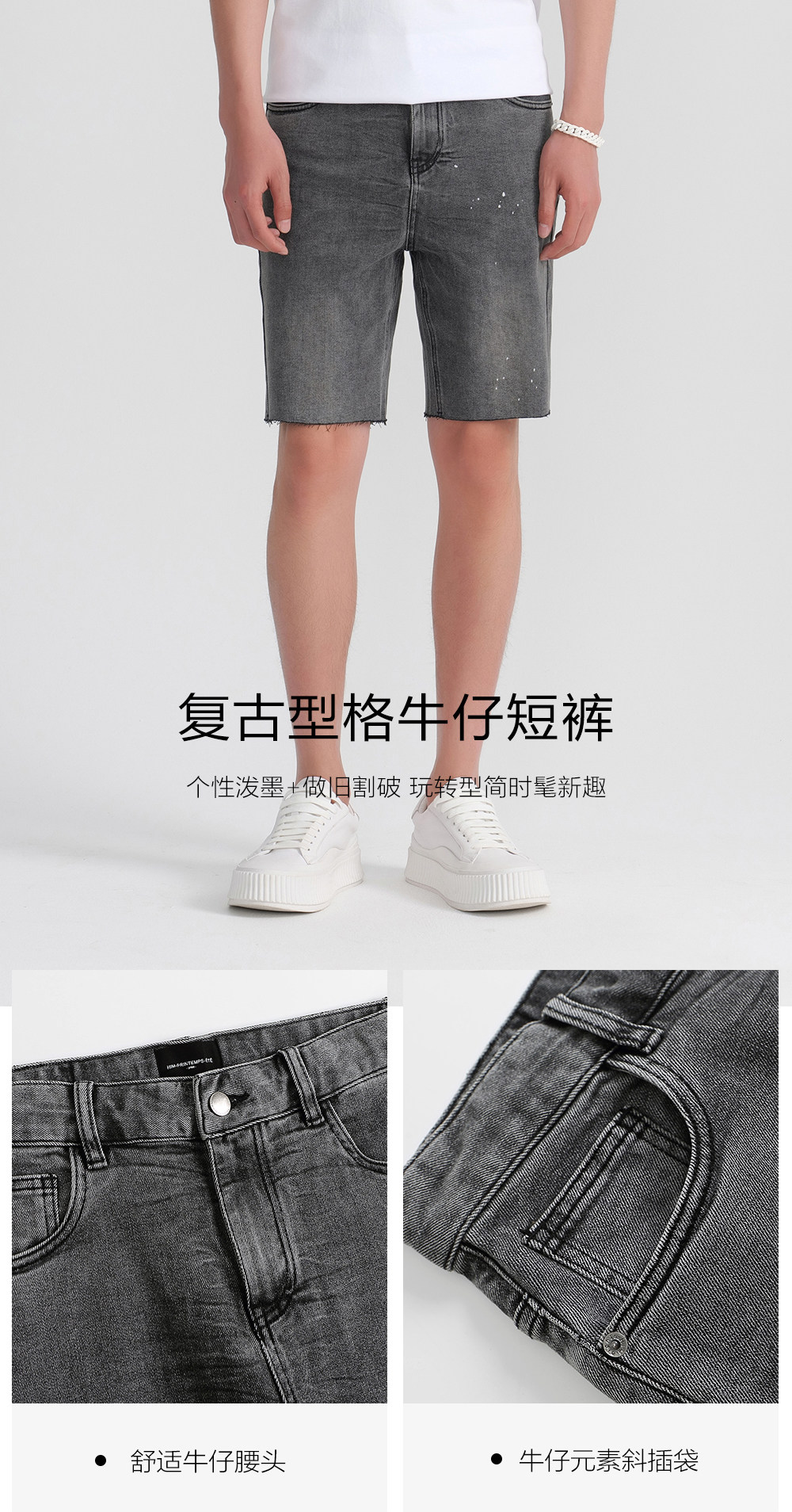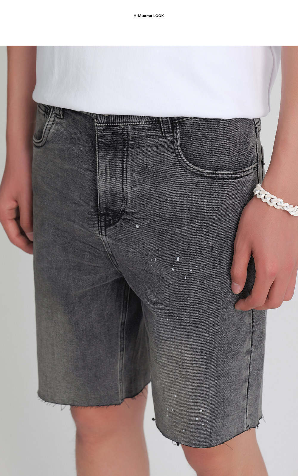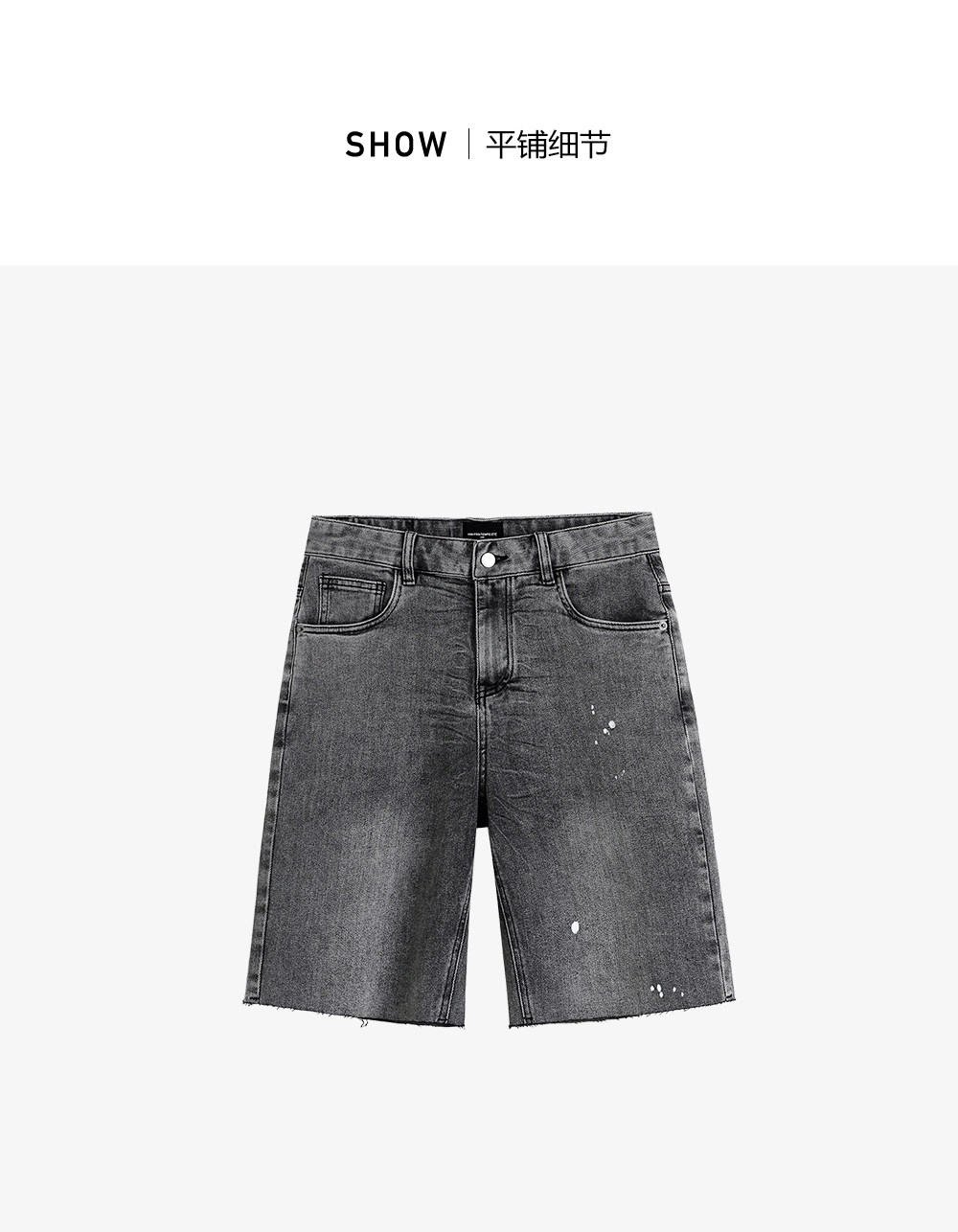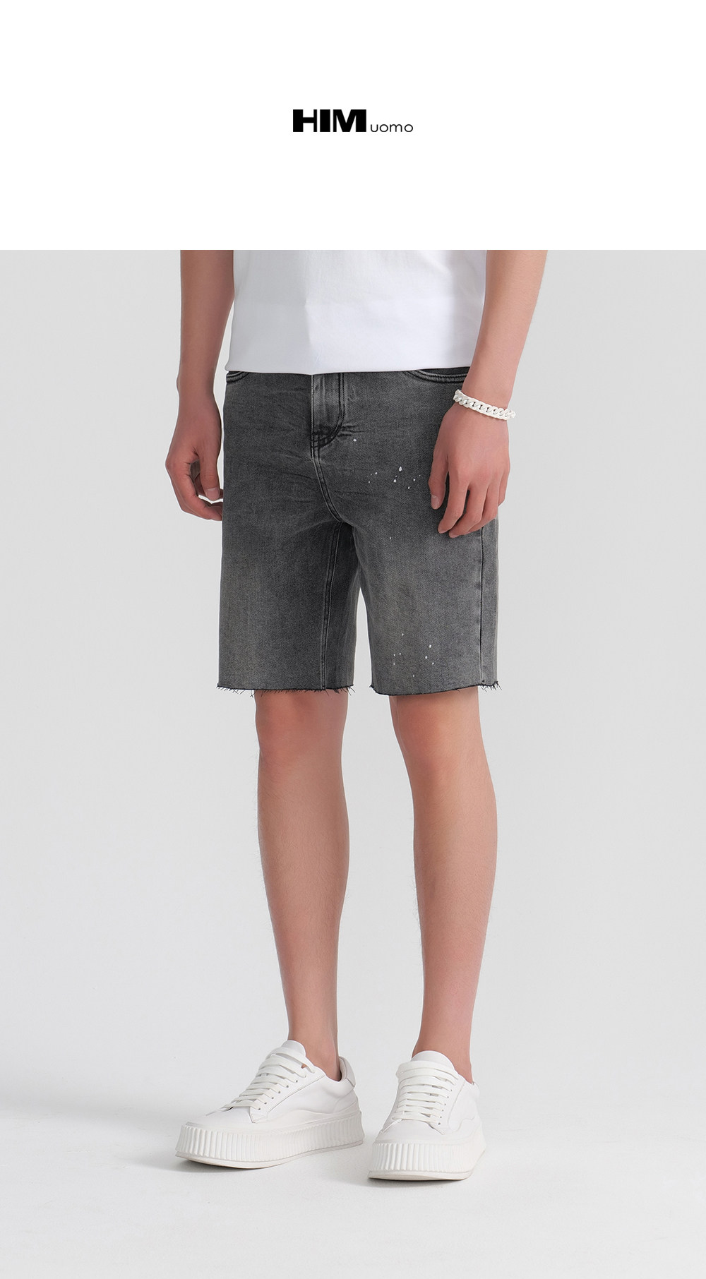 HIM漢崇 洗水灰微弹牛仔短裤男潮流泼墨简约休闲五分裤 2026夏季