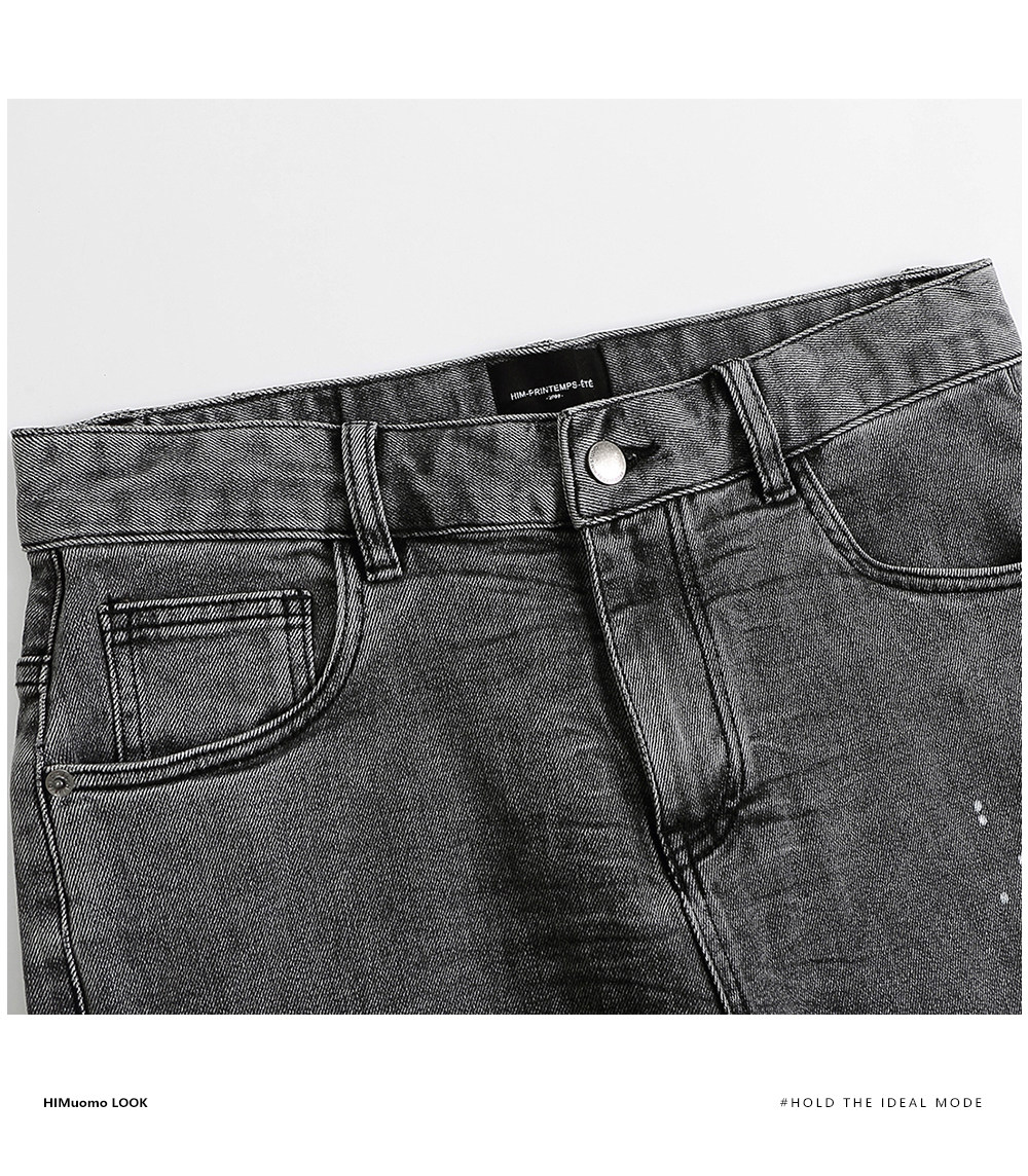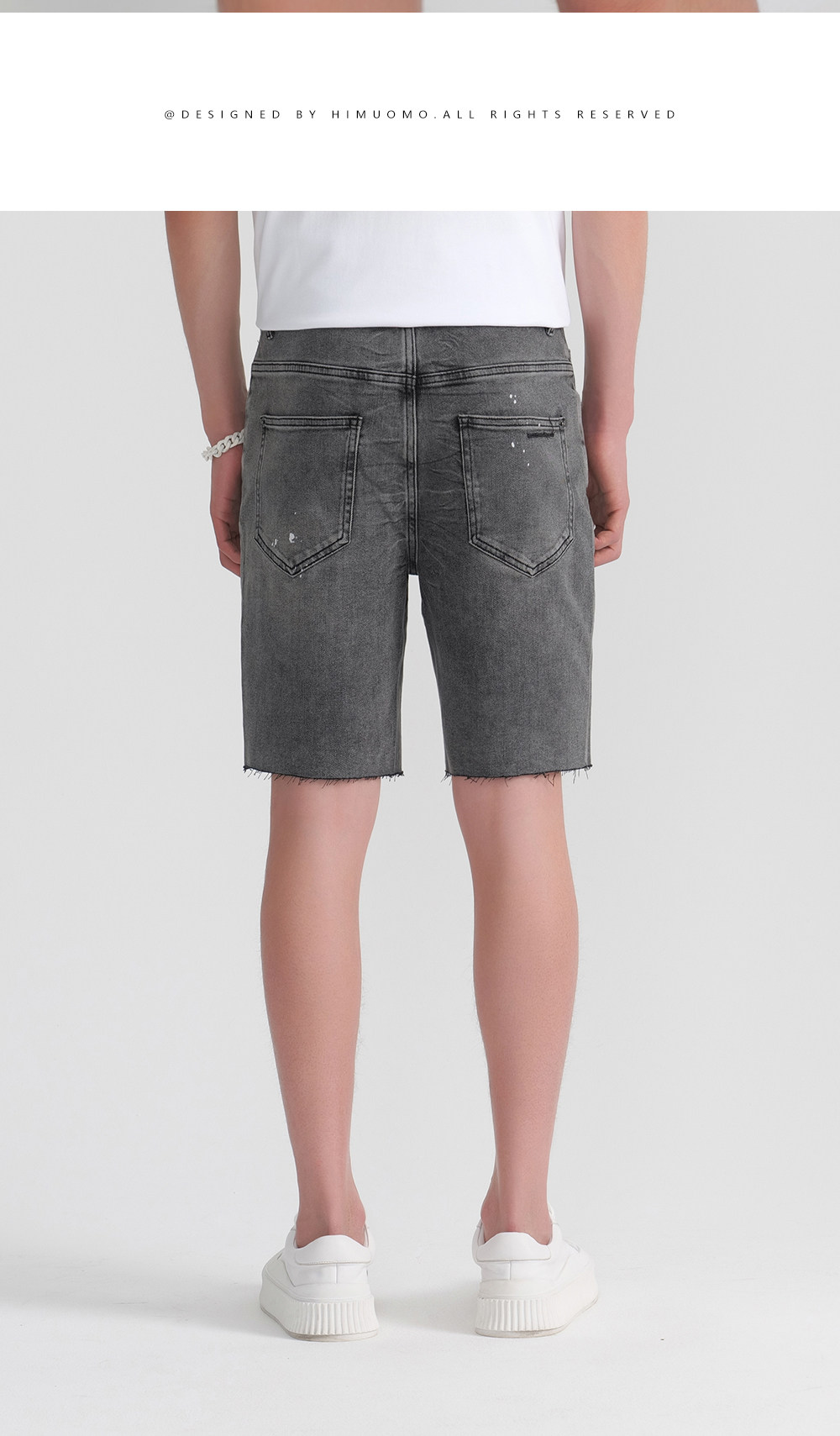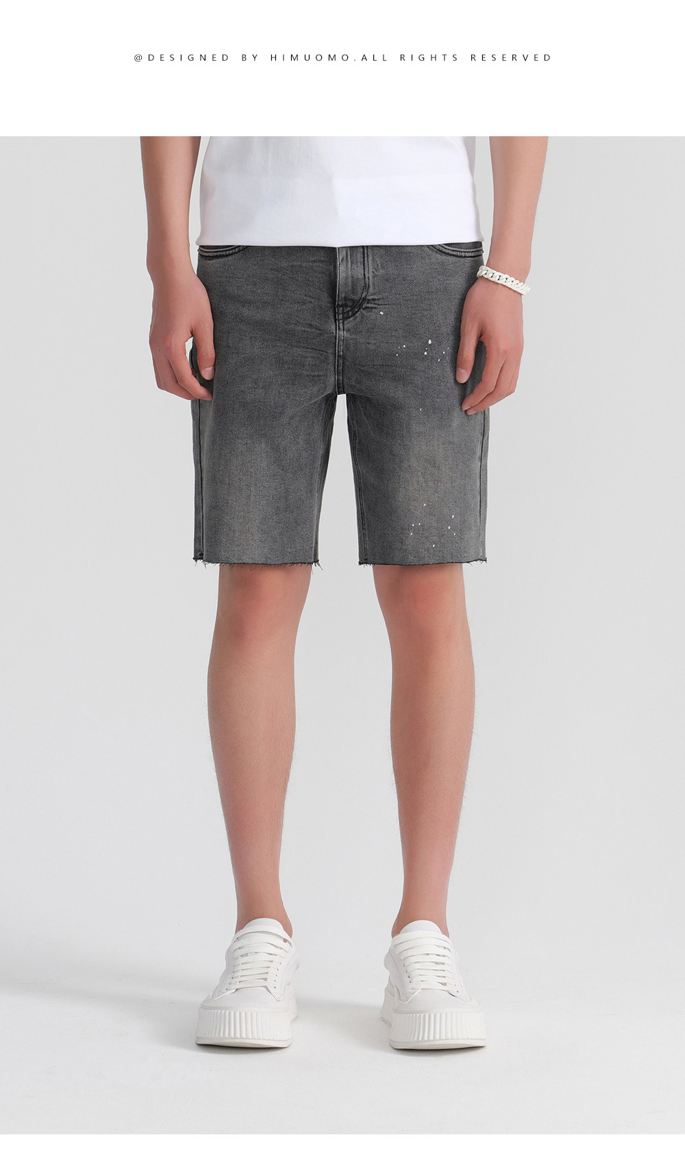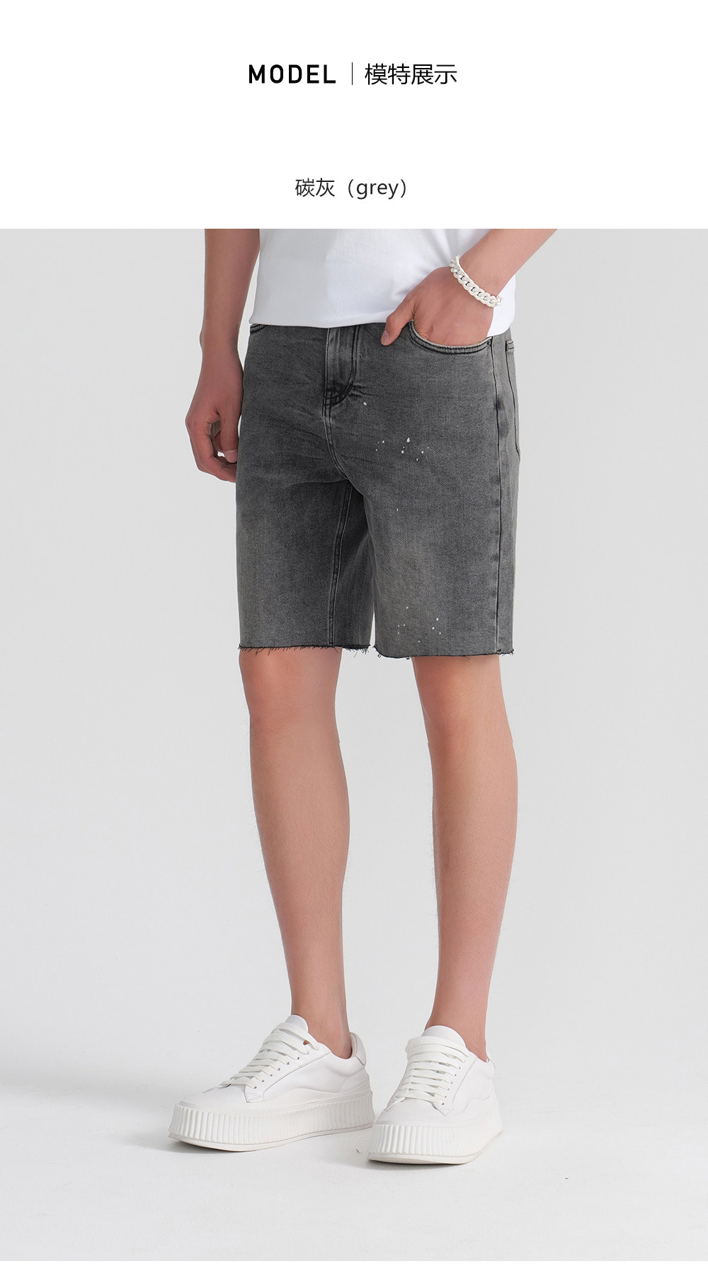 HIM漢崇 洗水灰微弹牛仔短裤男潮流泼墨简约休闲五分裤 2026夏季