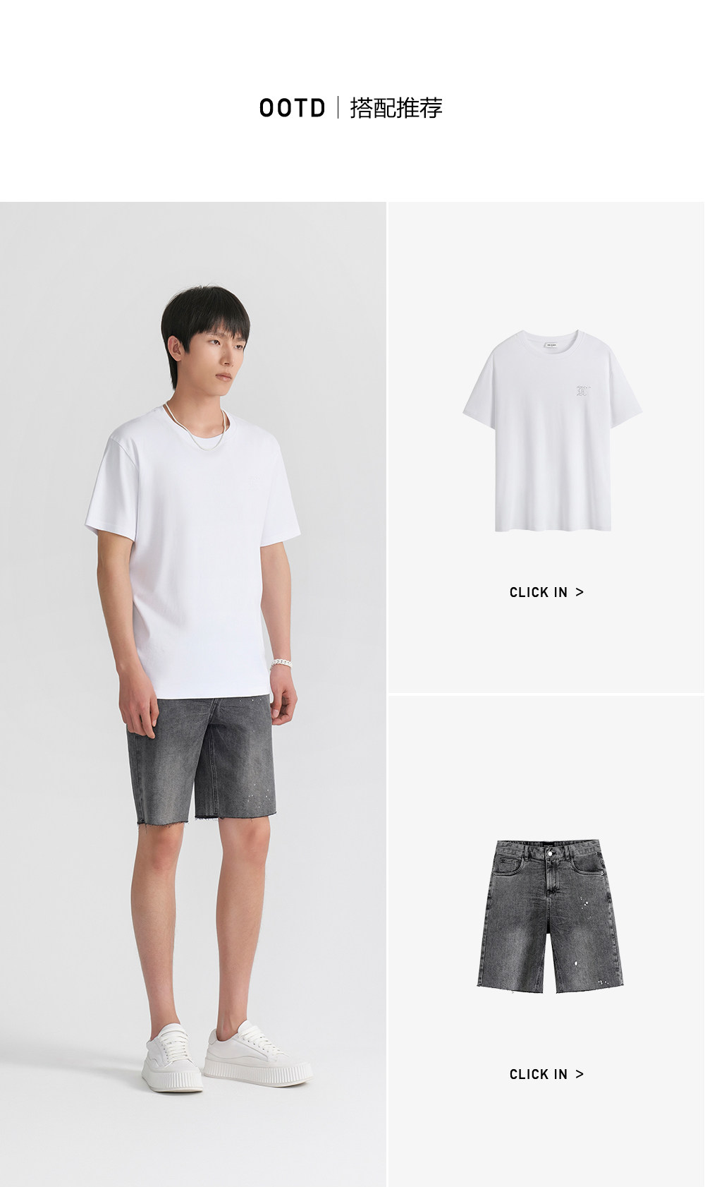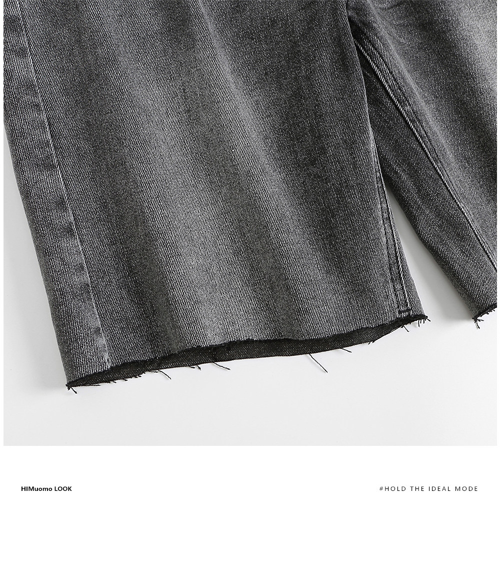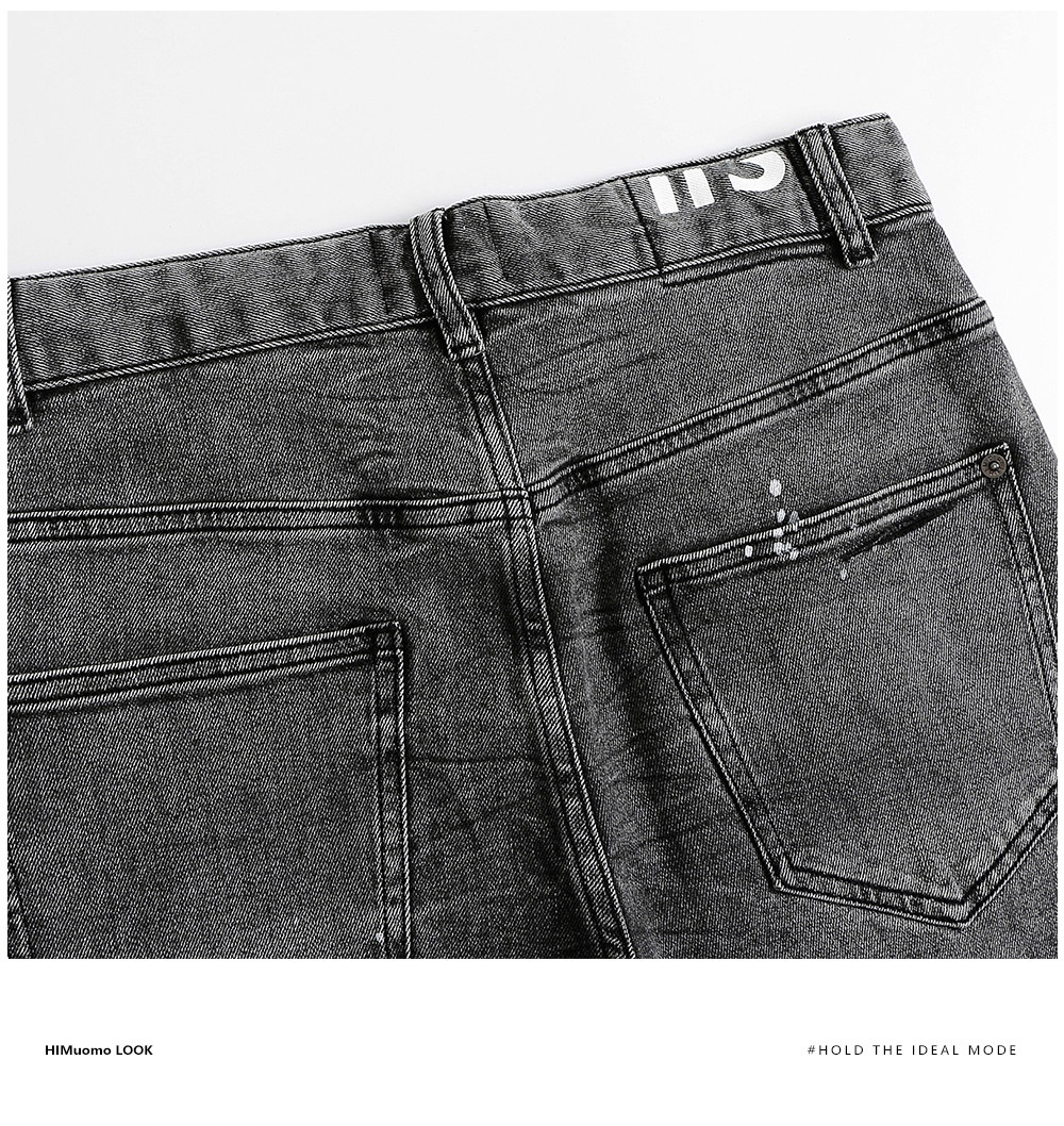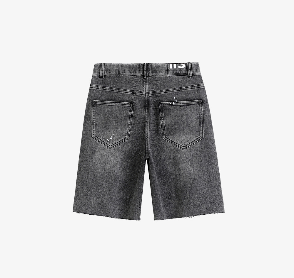 HIM漢崇 洗水灰微弹牛仔短裤男潮流泼墨简约休闲五分裤 2026夏季